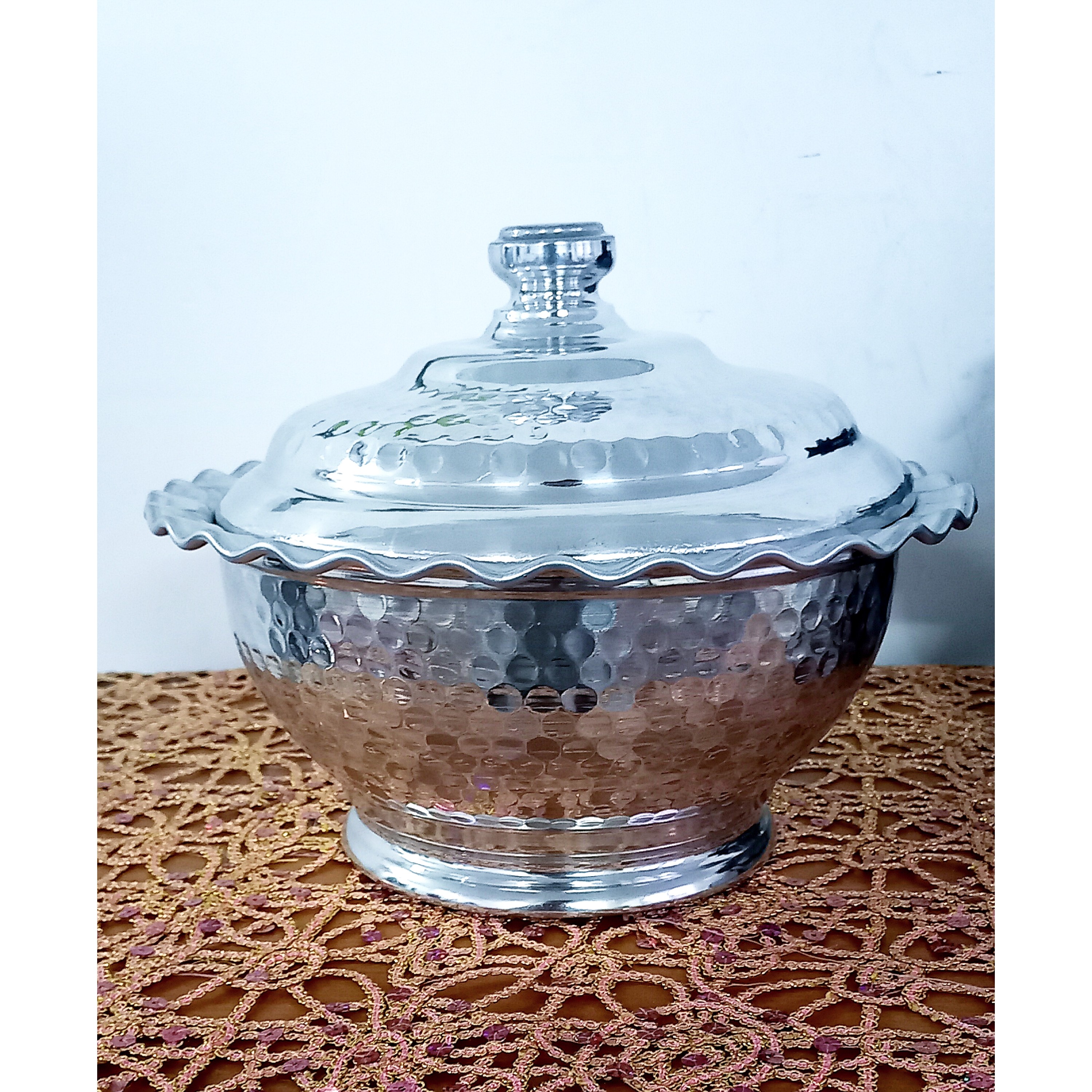 یک محصول بسیار زیبا و بسیار کاربردی این محصول زیبا دقیقا شبیه مس می باشد و با هزینه کمتری یک دکوری زیبا دارید این محصول زیبا بعنوان شکلات خوری و آجیل خوری و ظرف برای دسر و حتی سایز بزرگش برای سوپ و آش هم استفاده میشه زیبایی منحصر به فرد که طرح چکشی داره و لبه های آن که کنگره ای می باشد و کیفیت بالا و قیمت مناسب آن را یک محصول فوق العاده کرده است