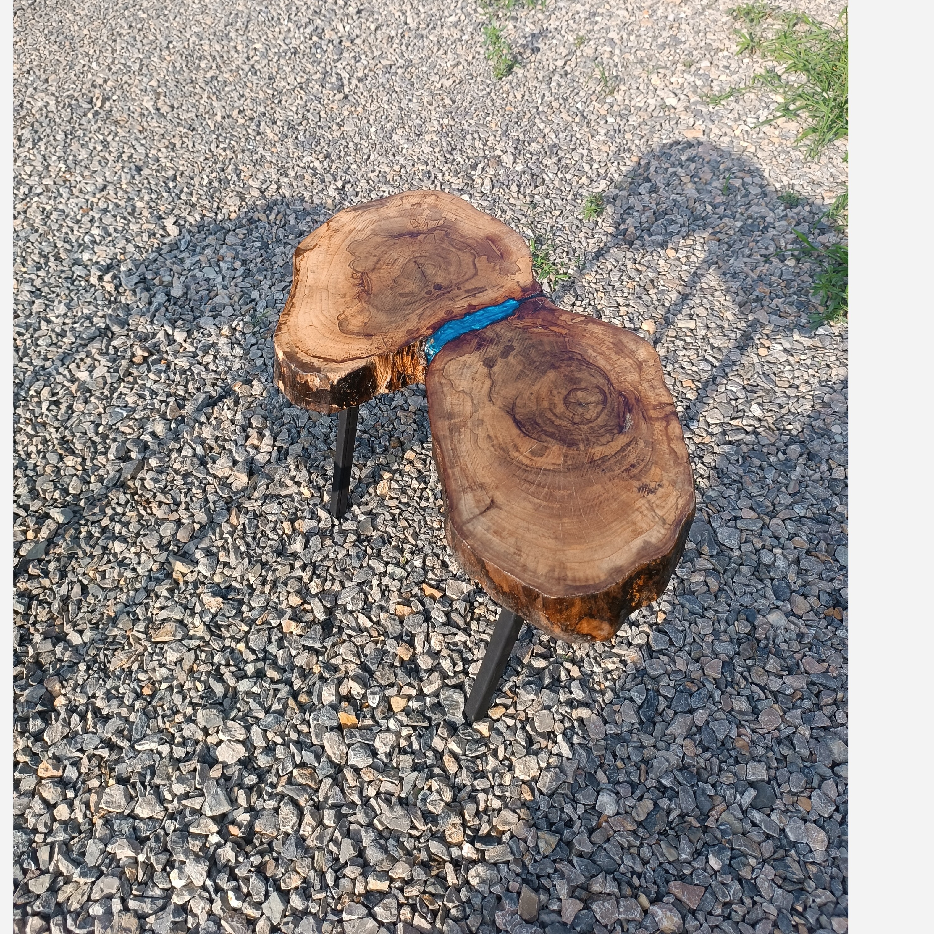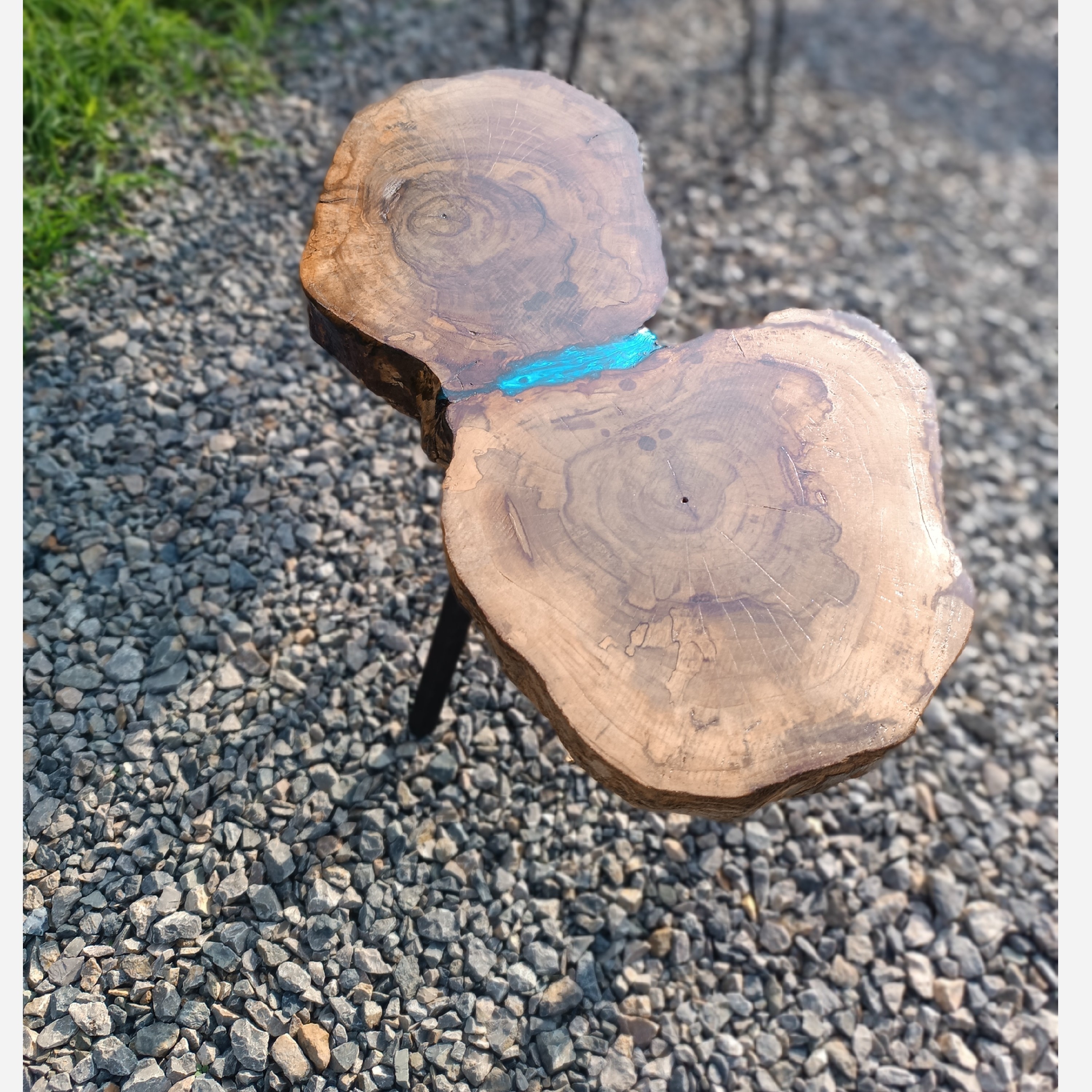 میز عسلی چوبی دفرمه گردو با رزین اپوکسی مبلمونسرا مدل 223523
