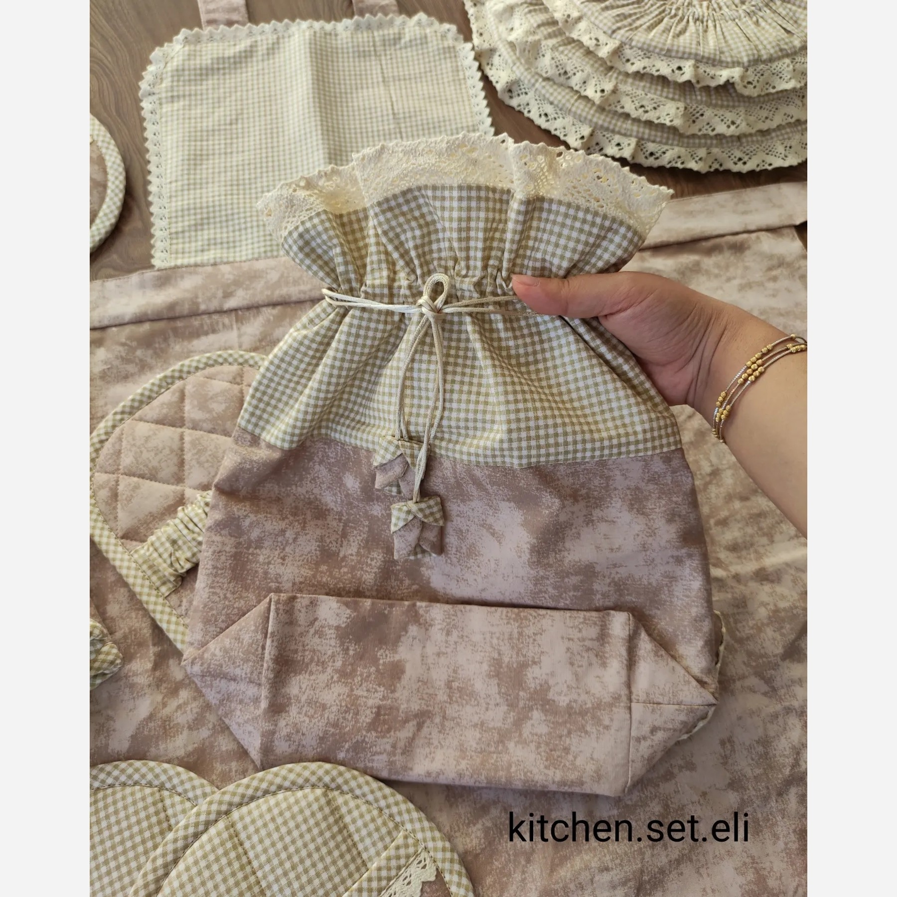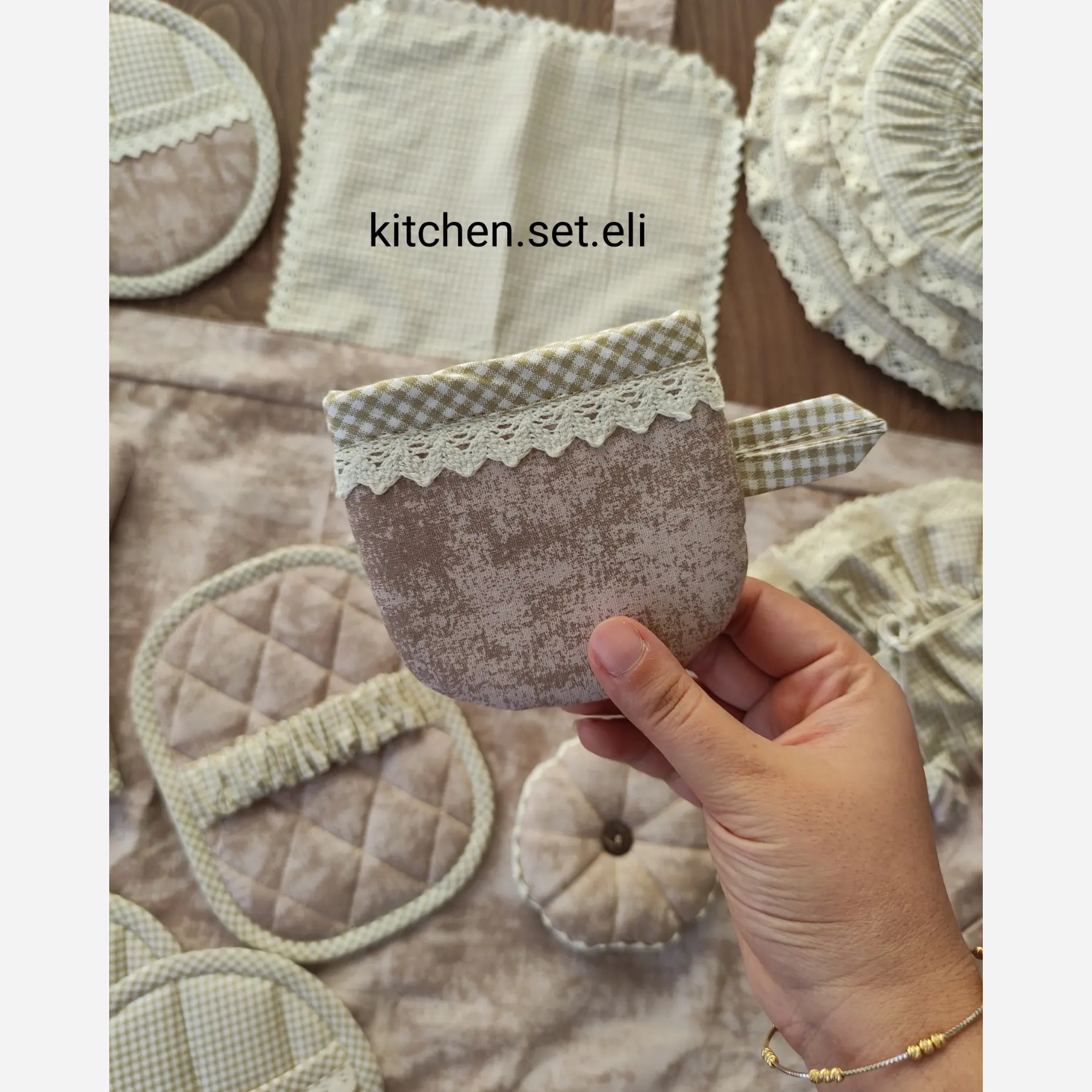 سرویس پارچه ای آشپزخانه جهیزیه کرم نسکافه ای 17تکه مبلمونسرا مدل 298137