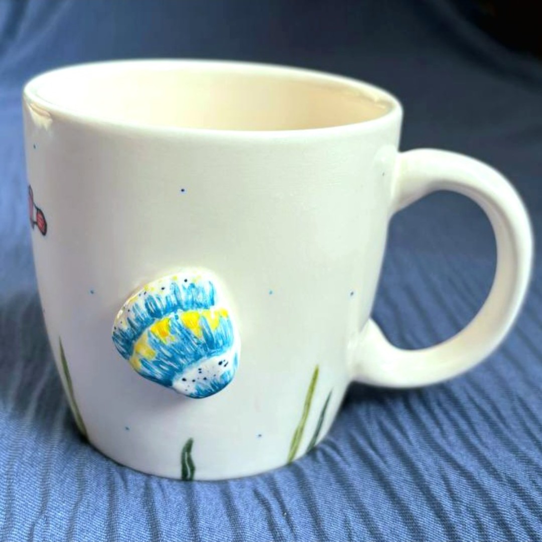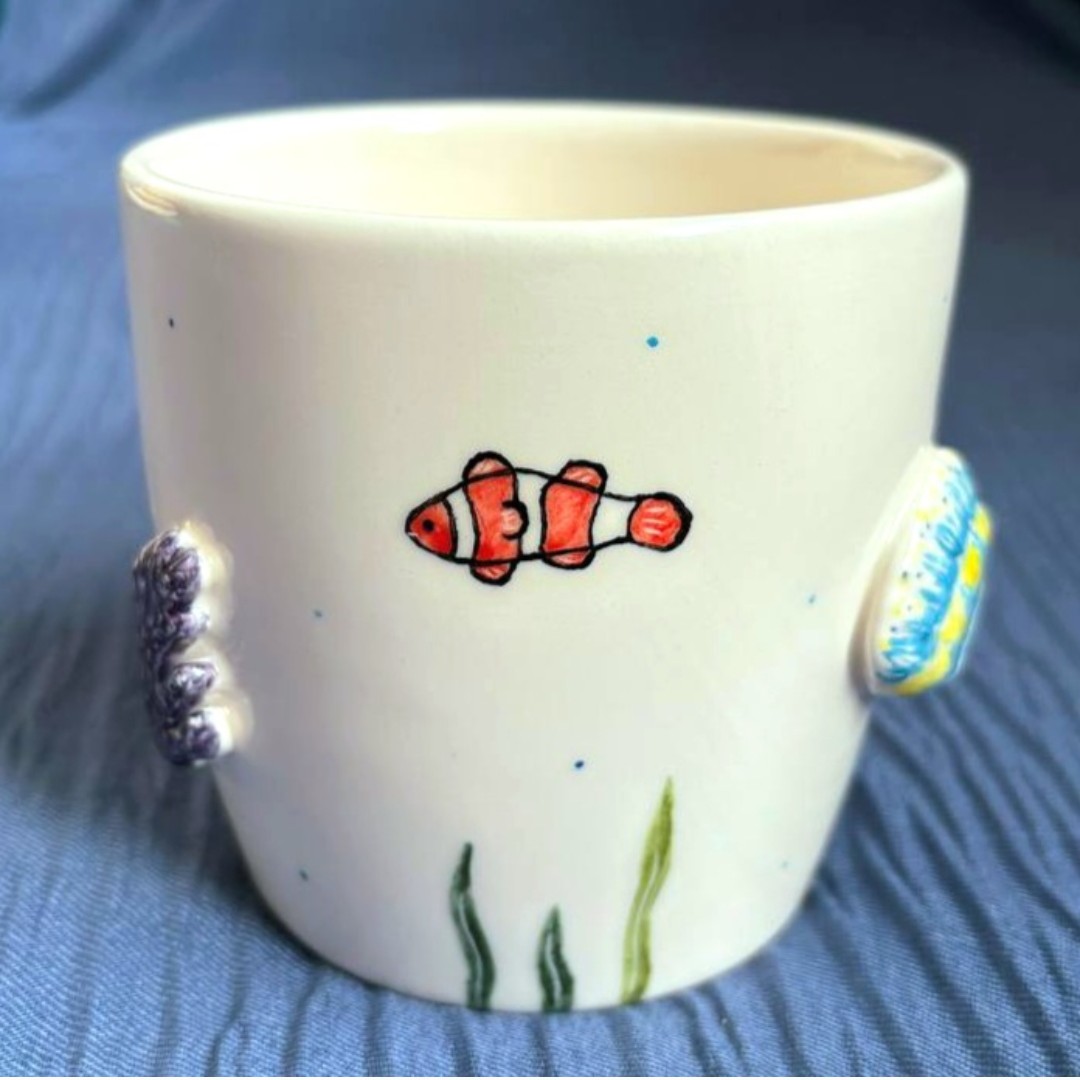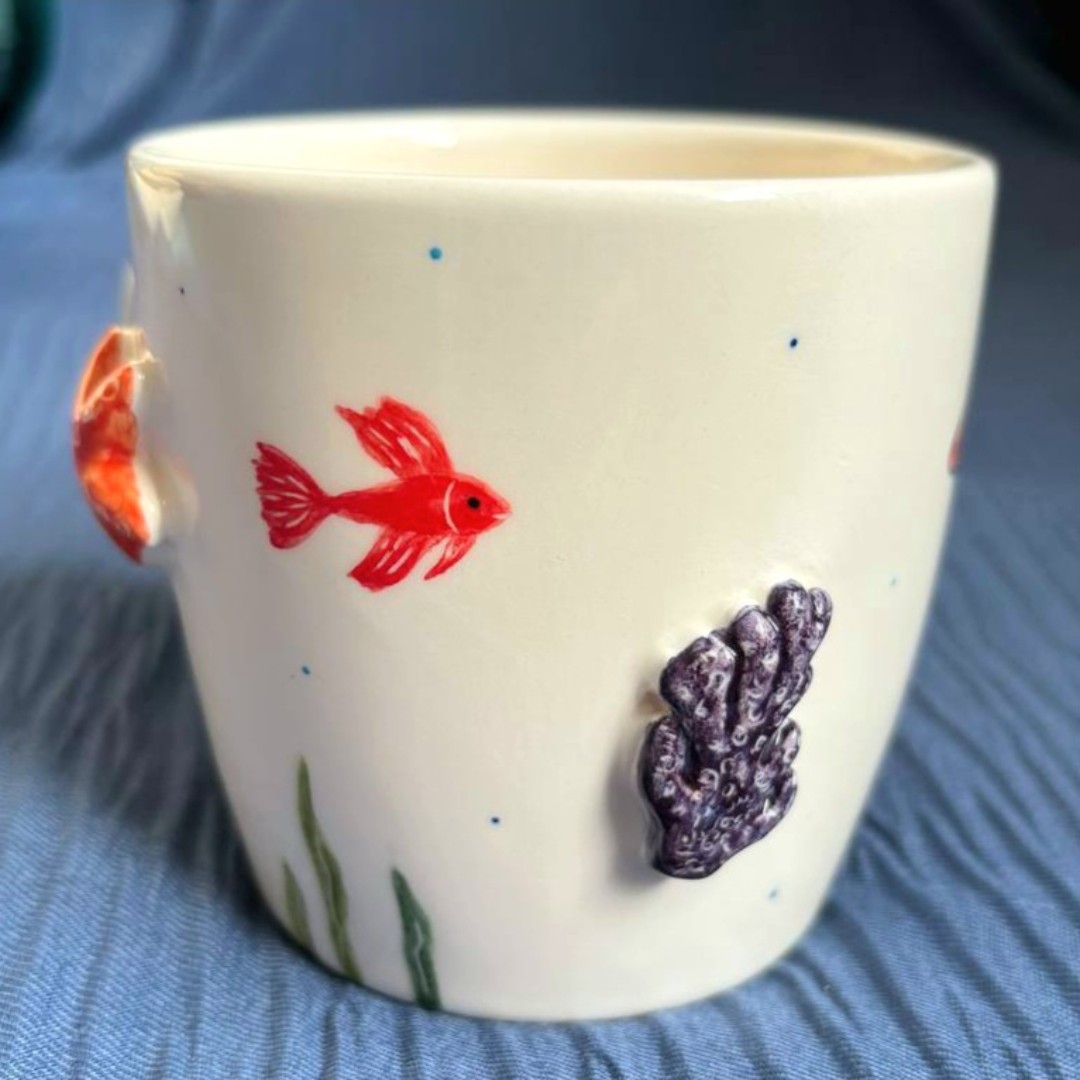ماگ سرامیکی دستساز طرح دریایی روی ماگ اشکال برجسته داره قطر دهانه 8سانت ارتفاع 10سانت