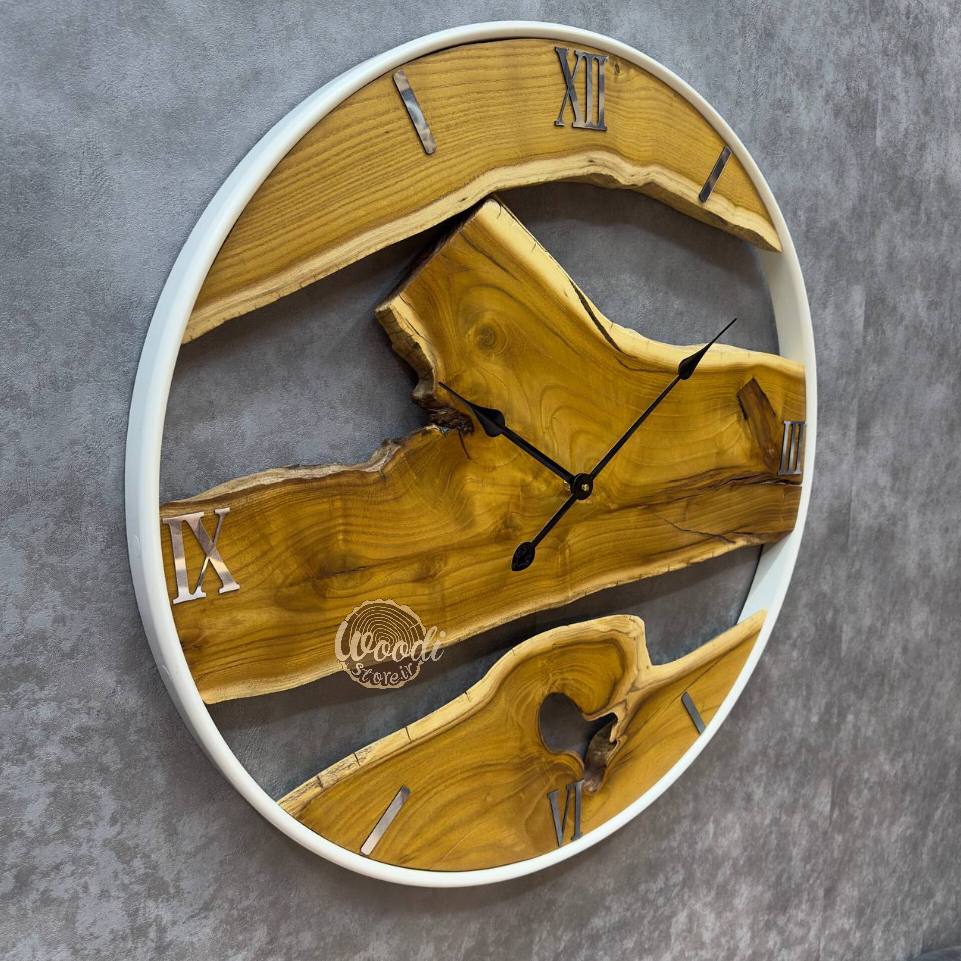 ساعت چوبی روستیک فریم سفید چوب سنجد کد C7516 قطر 75 مبلمونسرا مدل 239805