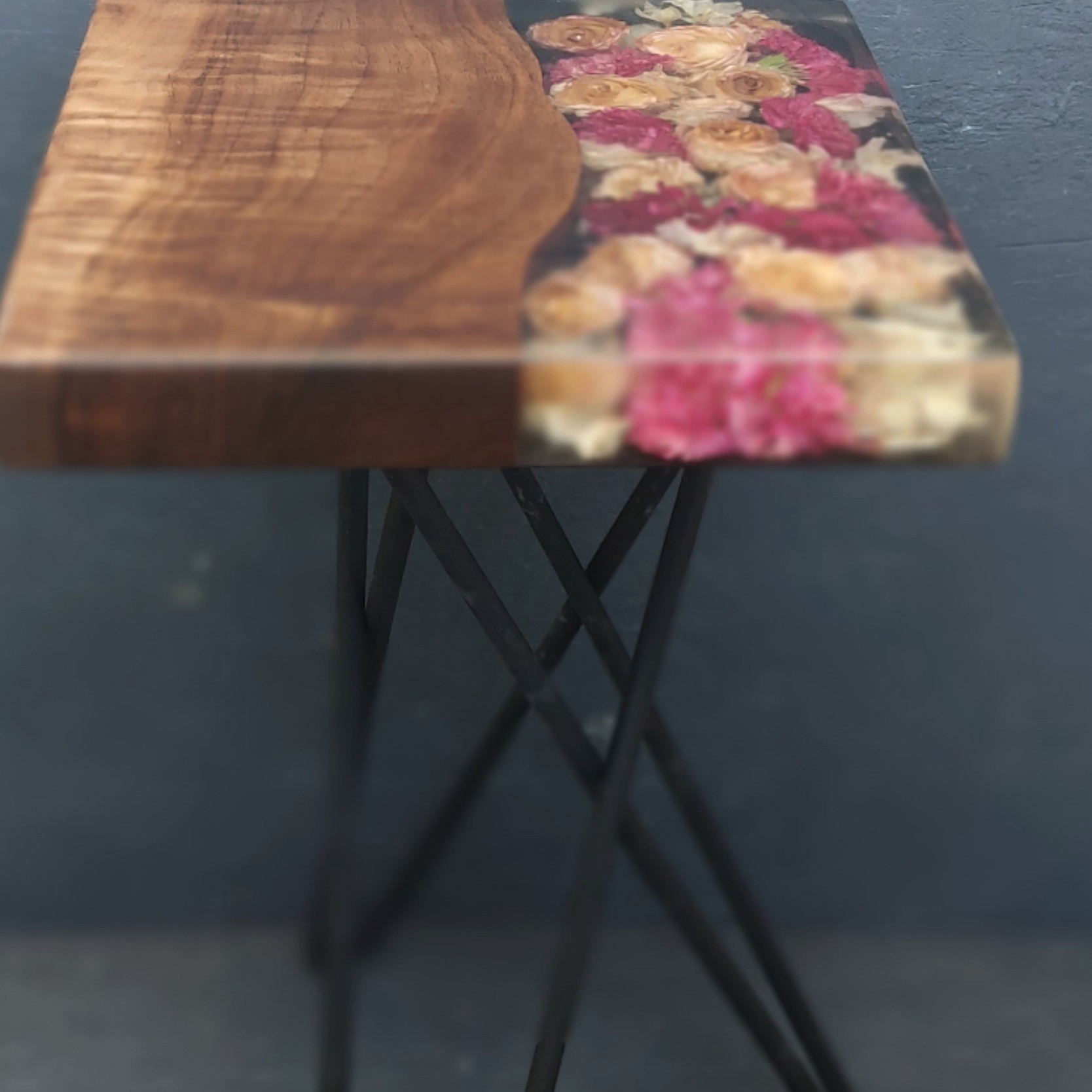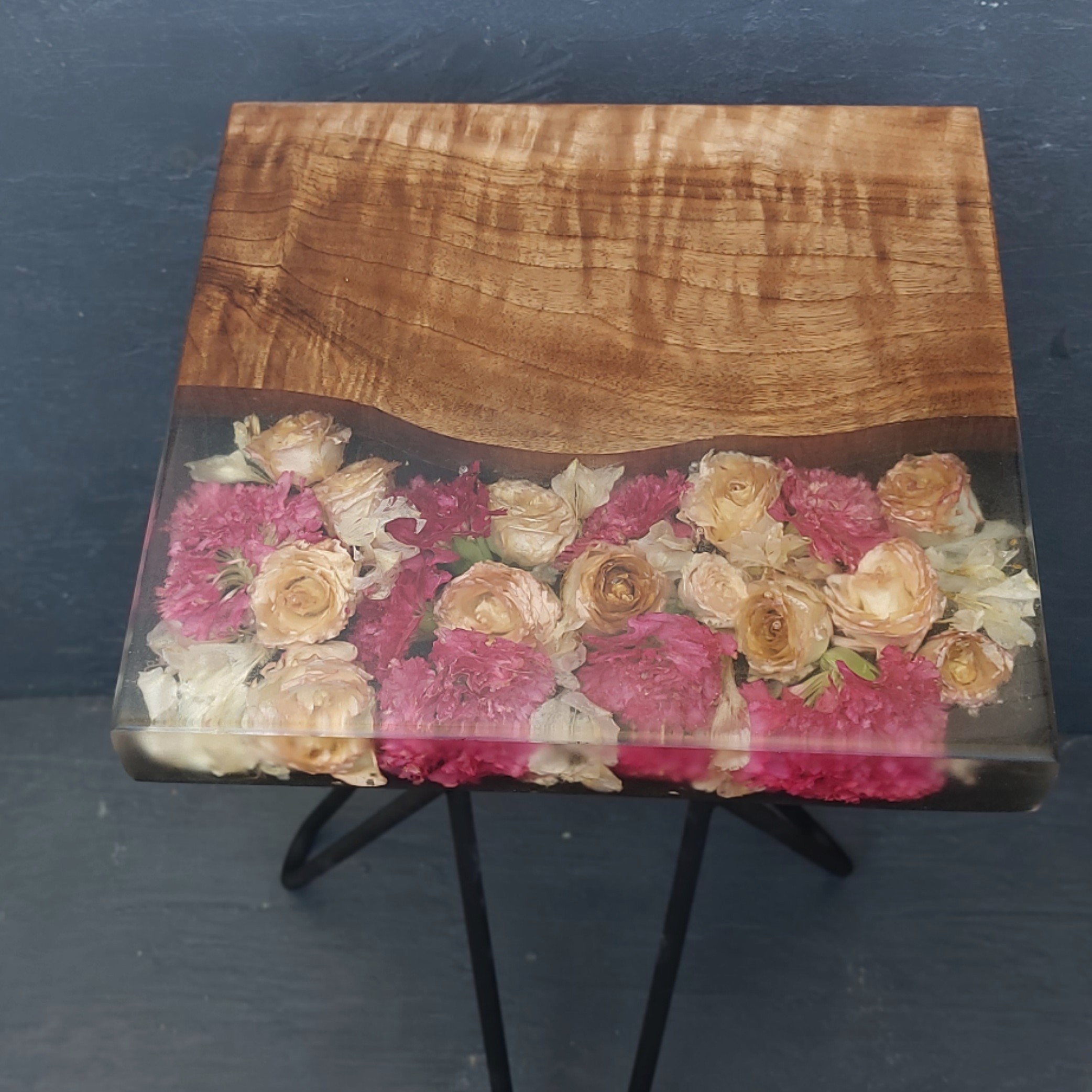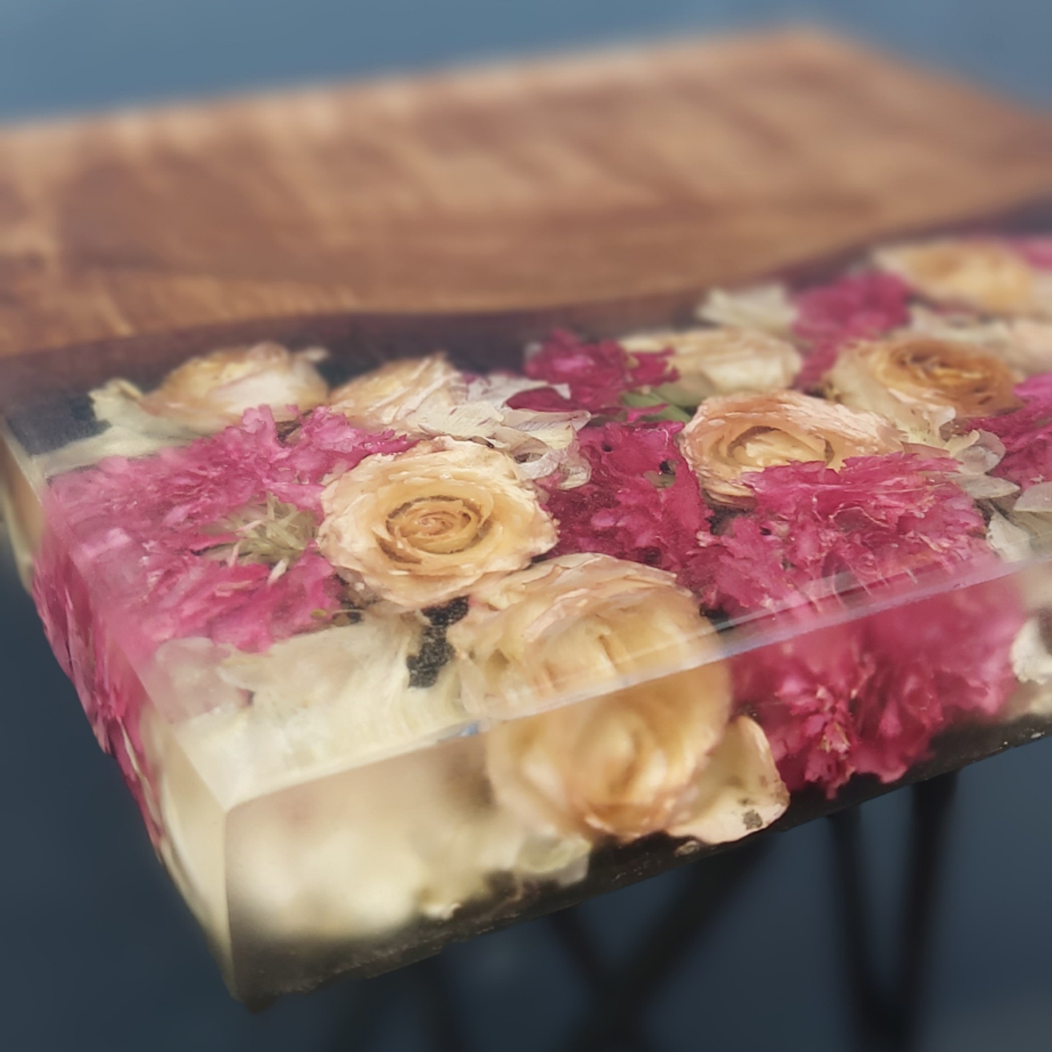 میز عسلی ترکیب چوب و رزین و گل طبیعی ارتفاع 45 مبلمونسرا مدل 222267