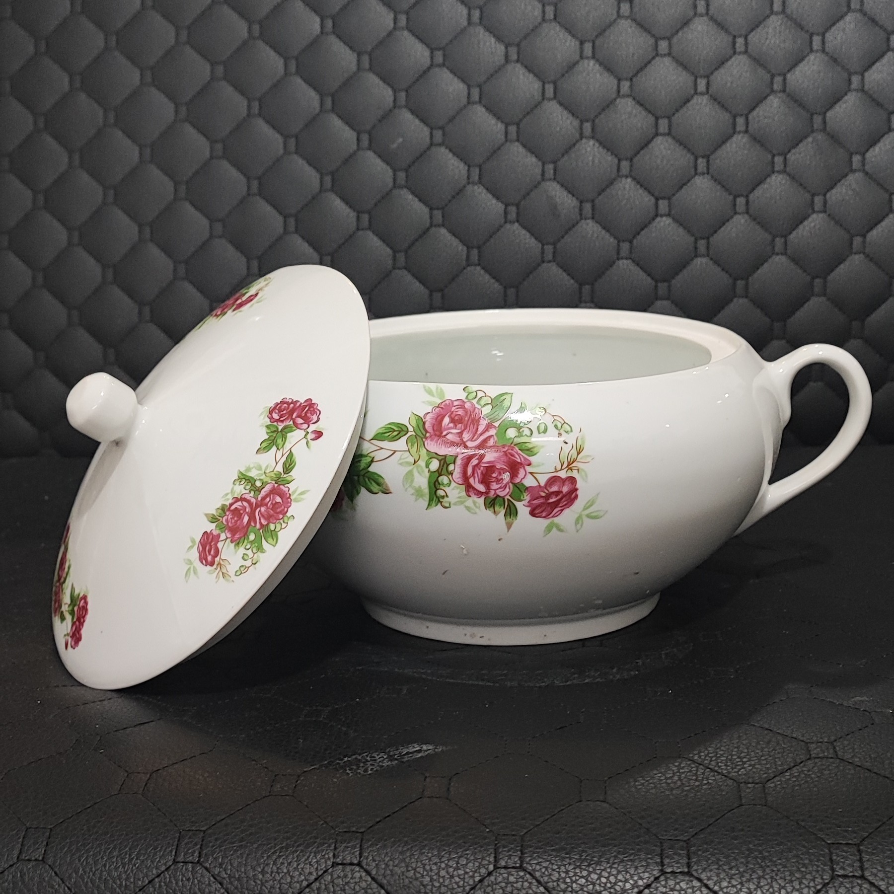 این محصول یک سوپ خوری بسیار زیبا و نوستالژی می باشد که در دو طرف آن و درب آن گلسرخ کار شده است