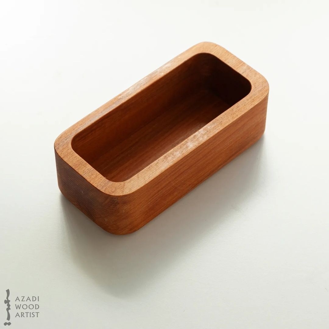 ظرف چوبی مربع، به جهت سرو و پذیرایی خشکبار و تنقلات، بسیار ساده و شیک