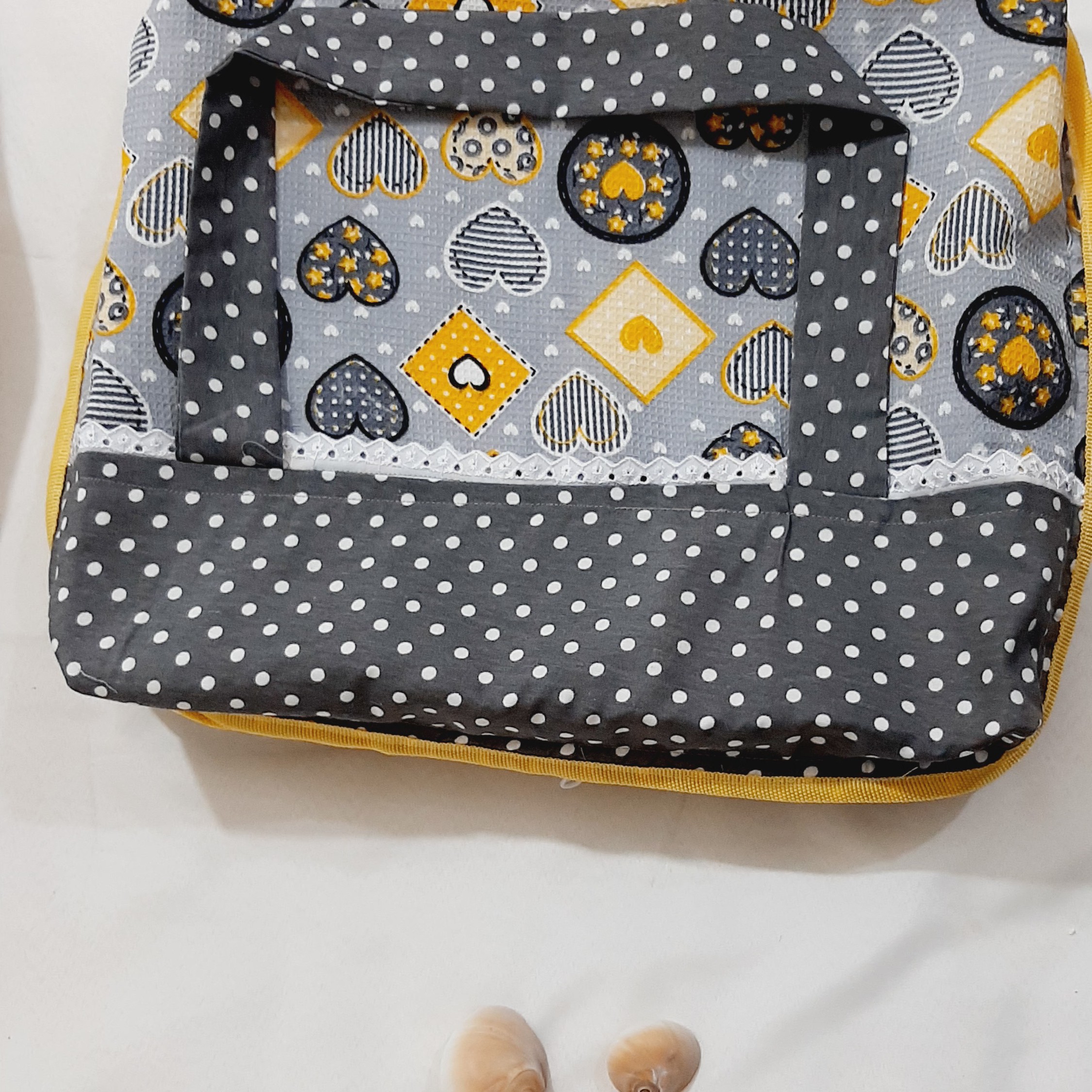پارچه زنبوری و تترون نخ درجه یک 4 لا پارچه اصلی و لایه نمدی و مشما و پارچه آستری متقال زیپ دار و نوار اریب کیف حجم دار است و قابلسفارش در هر سایزی و رنگ دلخواه شما