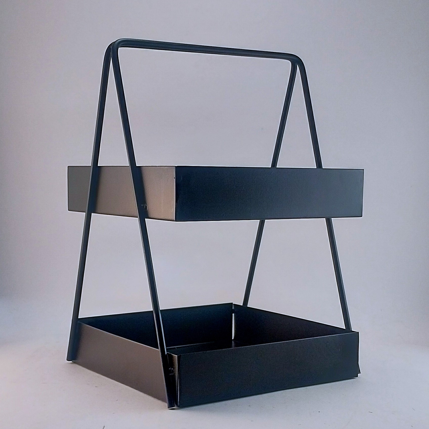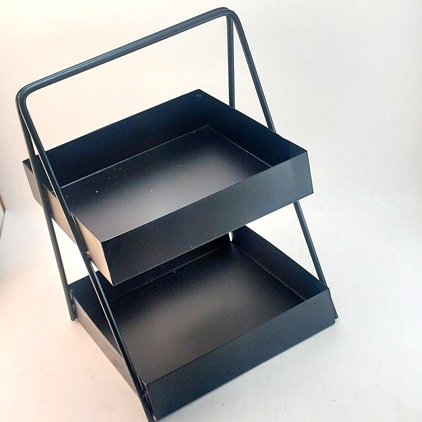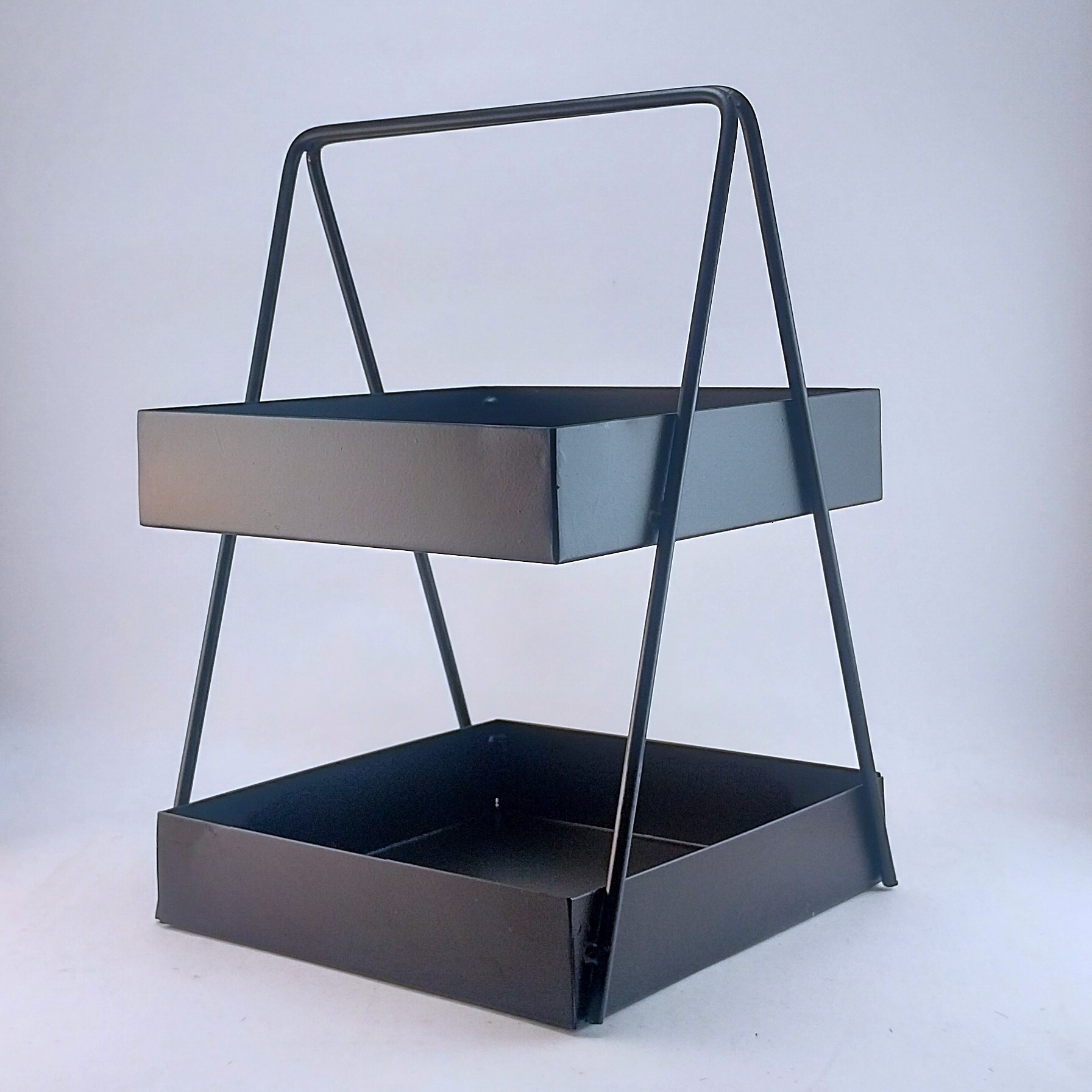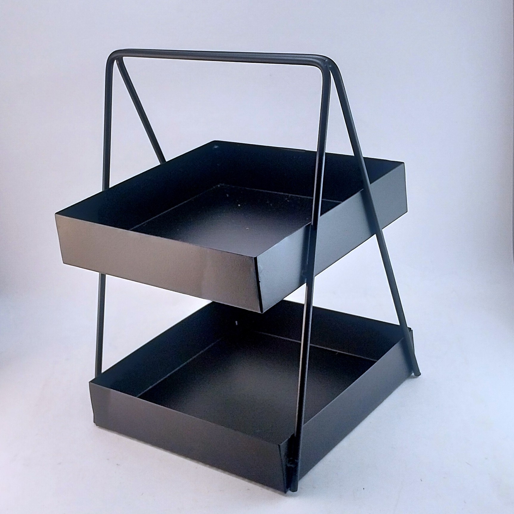استند سرو پذیرایی رو میزی استند دو طبقه مربع رنگ مشکی بسیار شیک و زیبا مخصوص سخت پسندان با جعبه _تولید شده از فلز مقاوم _مقاوم در برابر زنگ زدگی