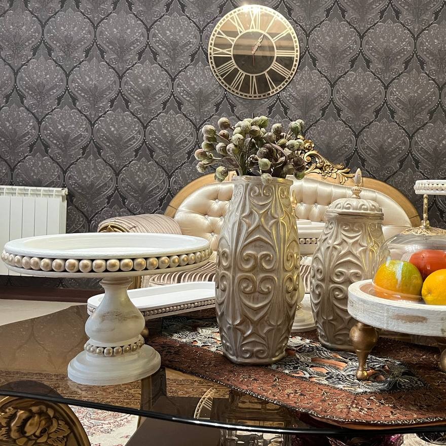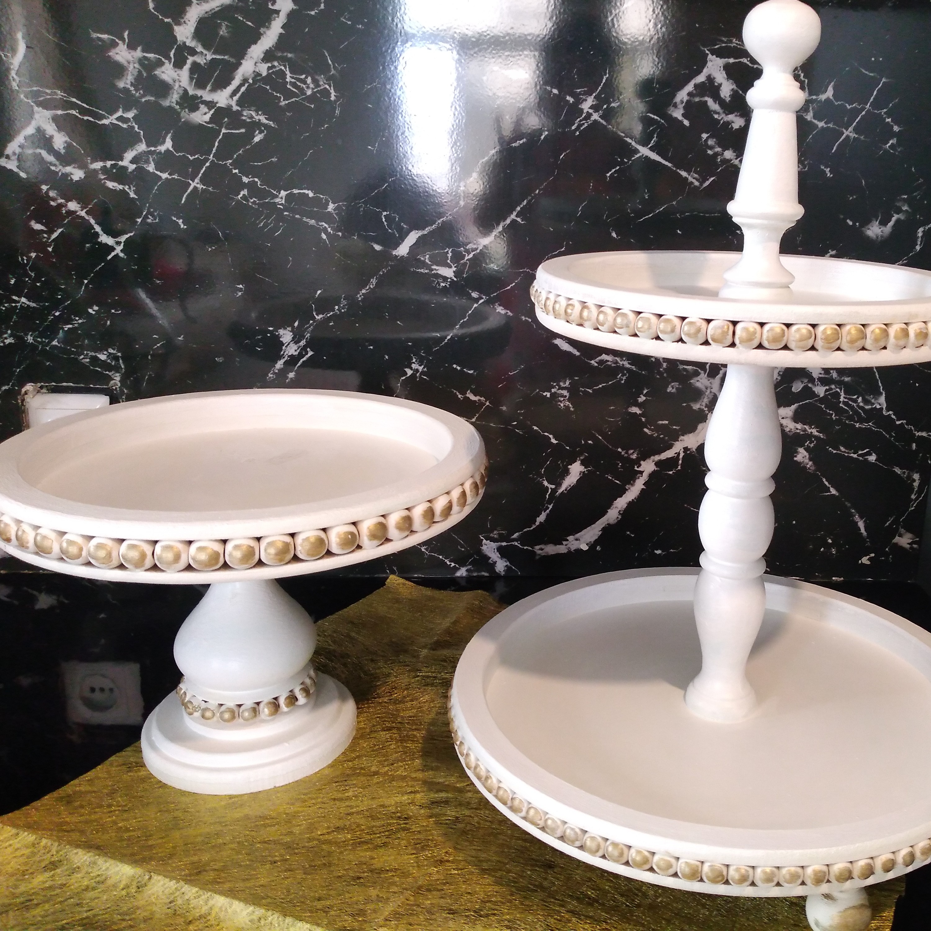 کیک خوری چوبی پایه دار پتینه شده قطر صفحه سی و دو سانت و ارتفاع بیست و سه سانت قابل اجرا در رنگ و پتینه دلخواه و همینطور ست کامل قابل سفارش است که در صورت سفارش ست حتی در حد یک تکه بیشتر تخفیف لحاظ میشود