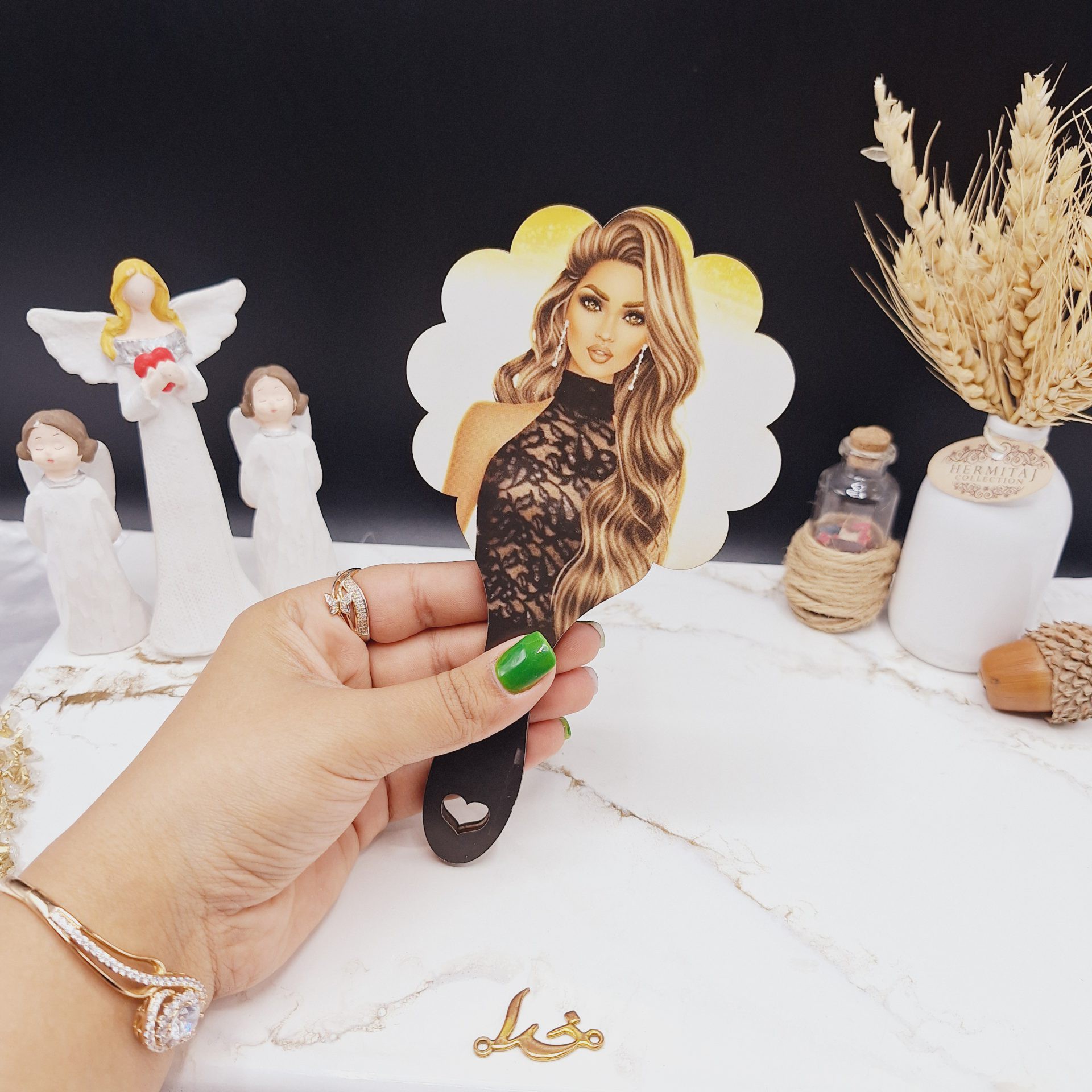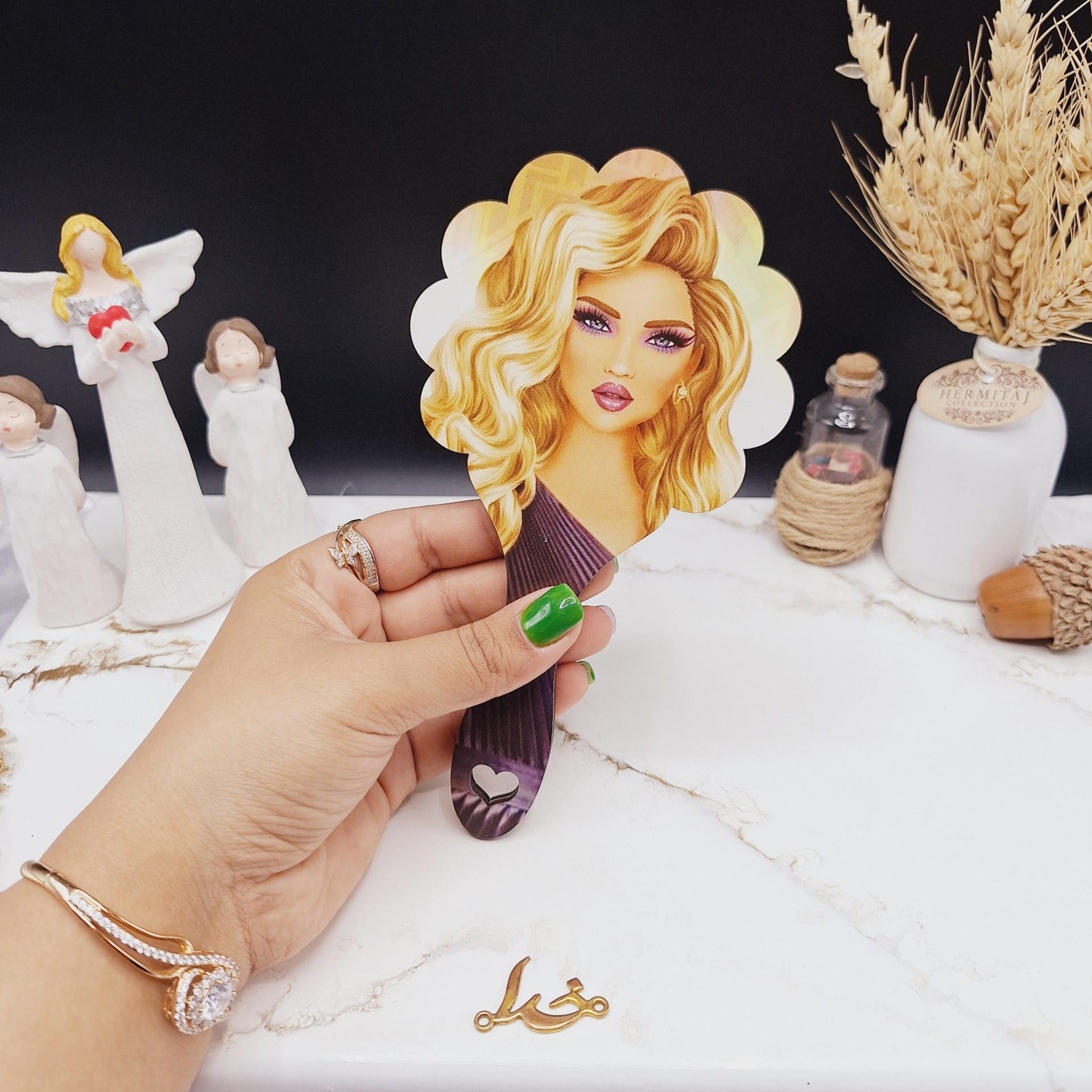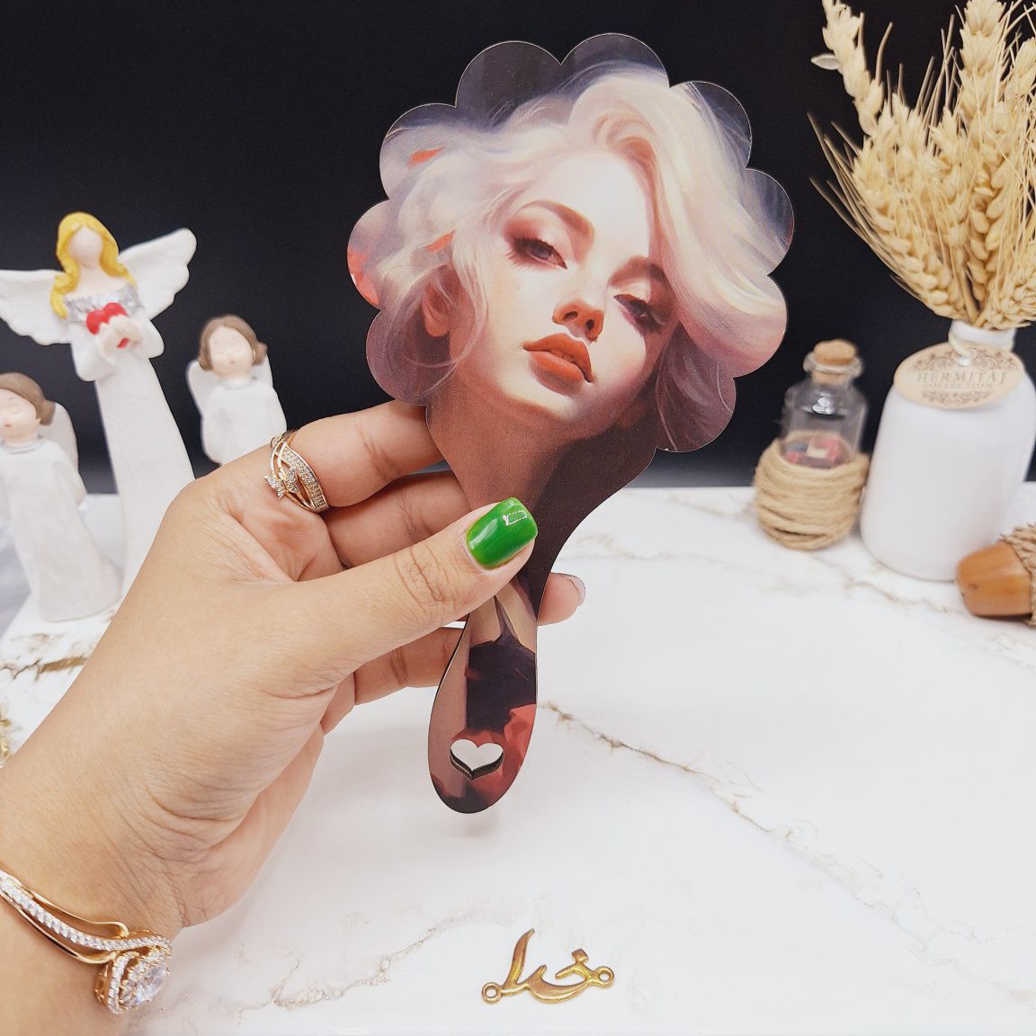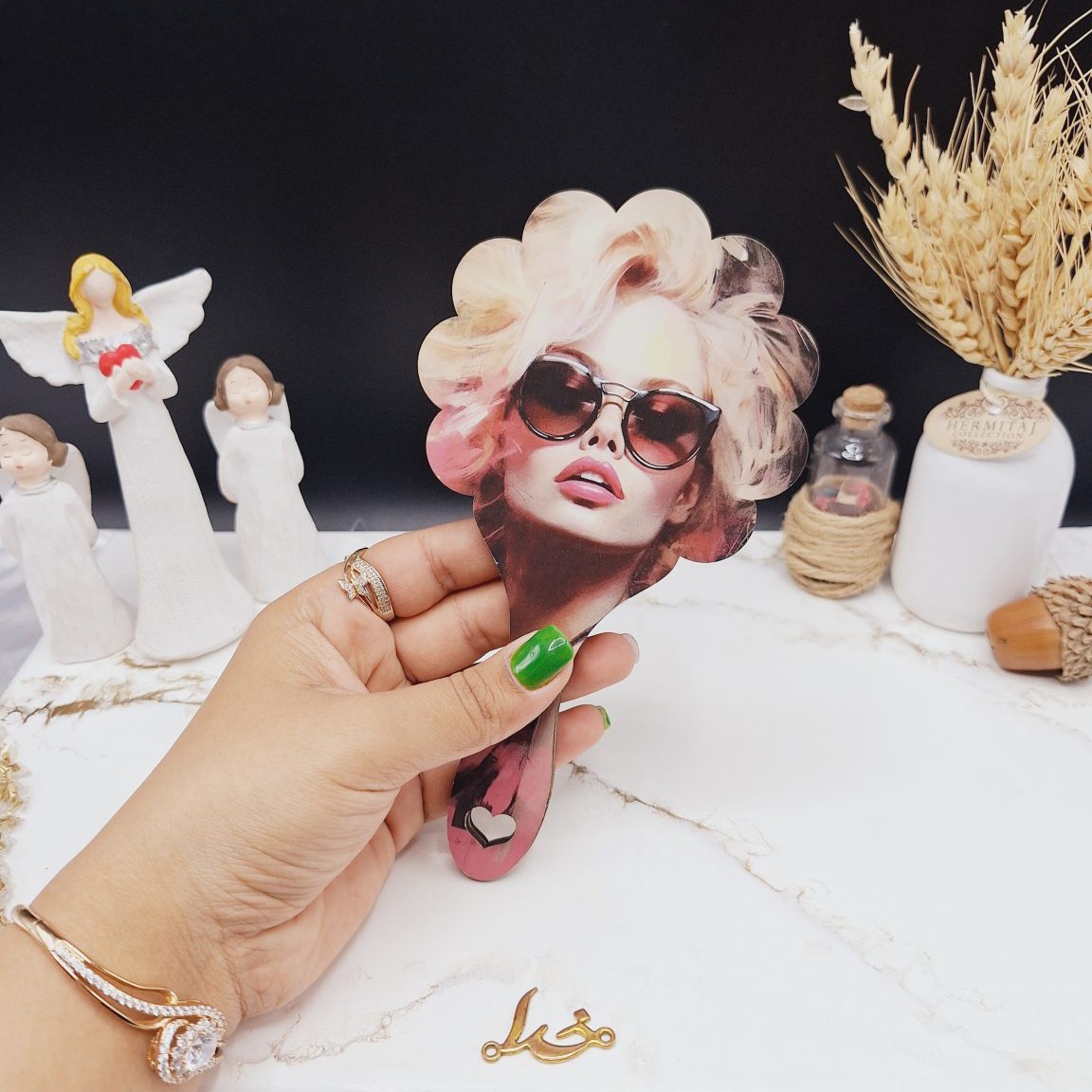 آینه چوبی دسته دار گل مدل دخترانه مبلمونسرا مدل 262335