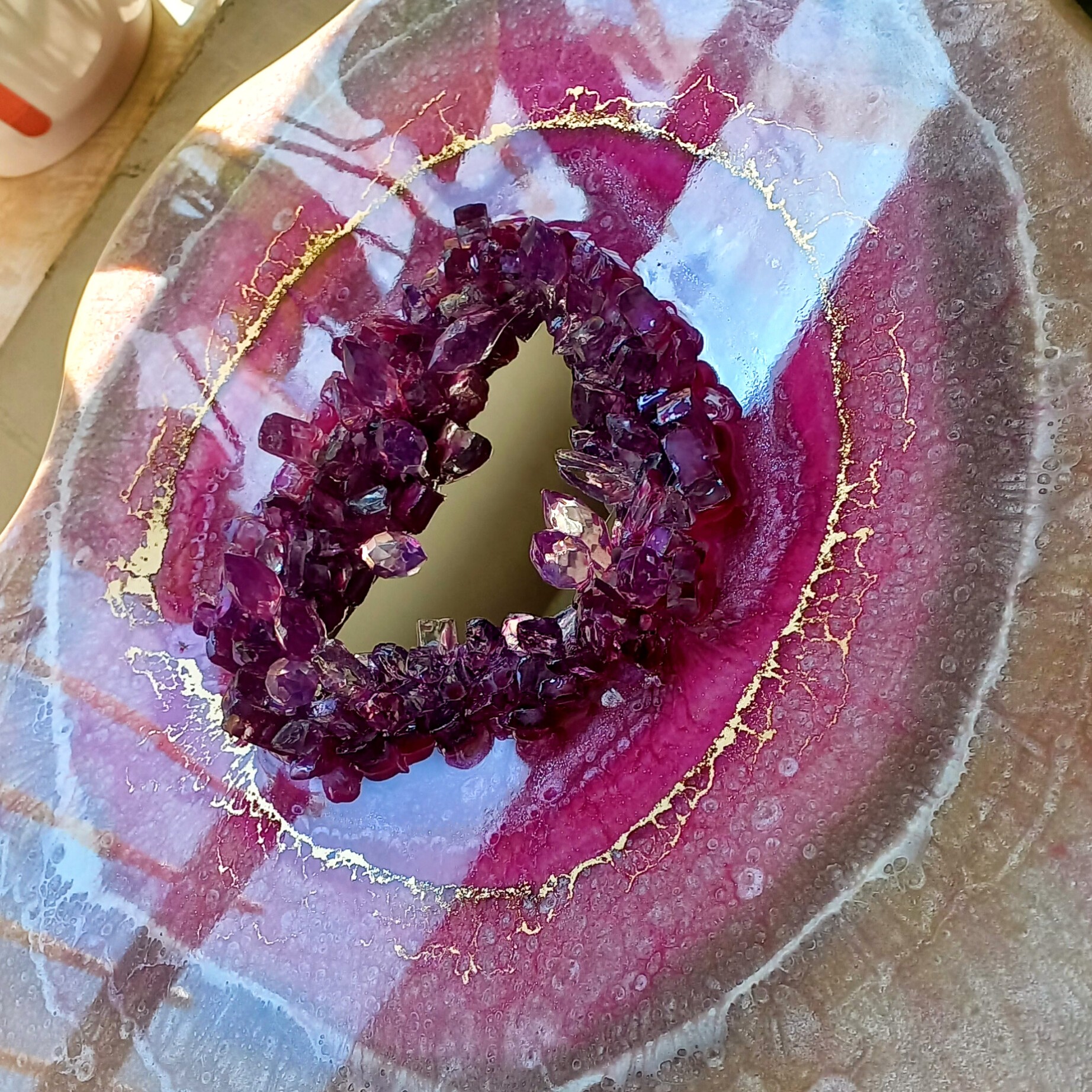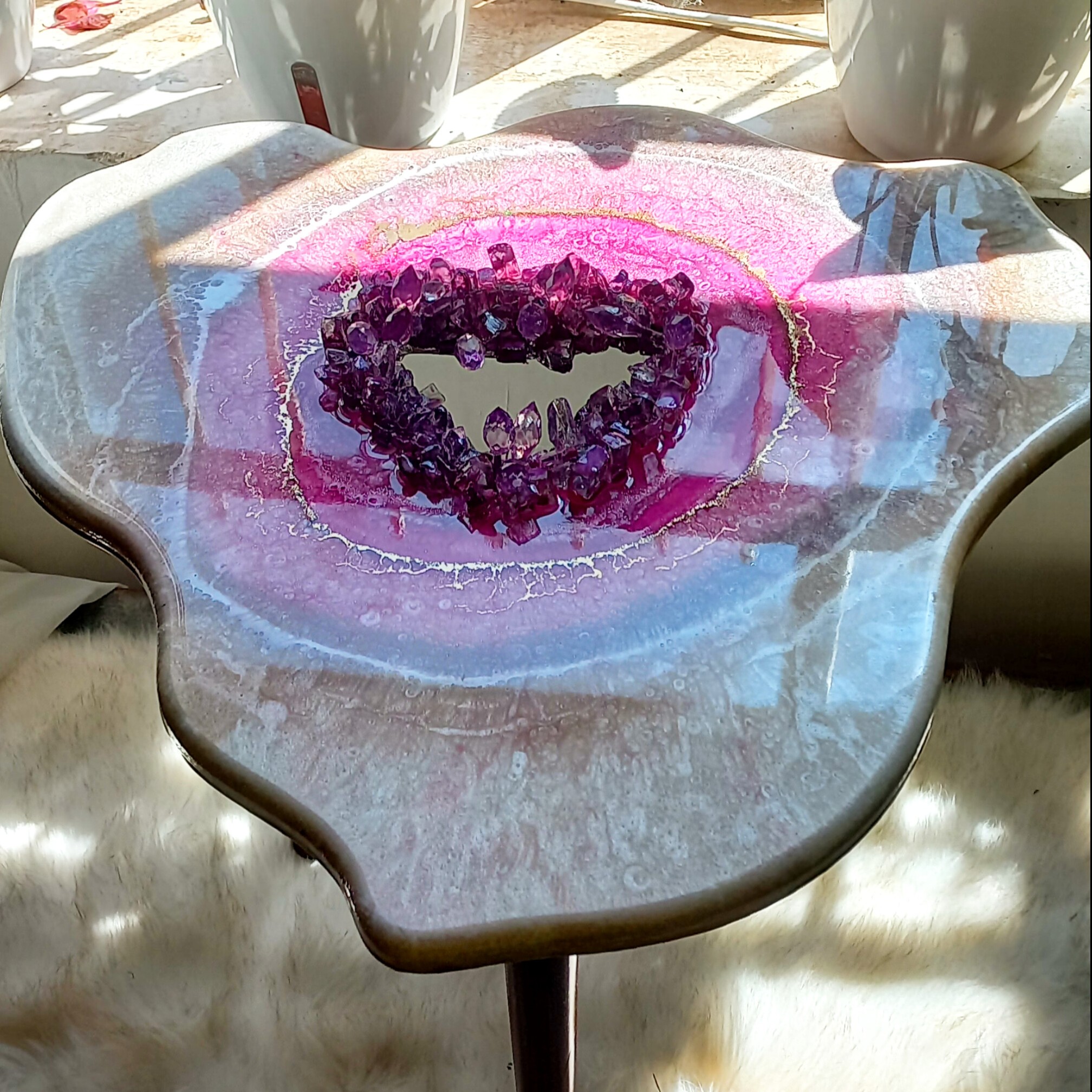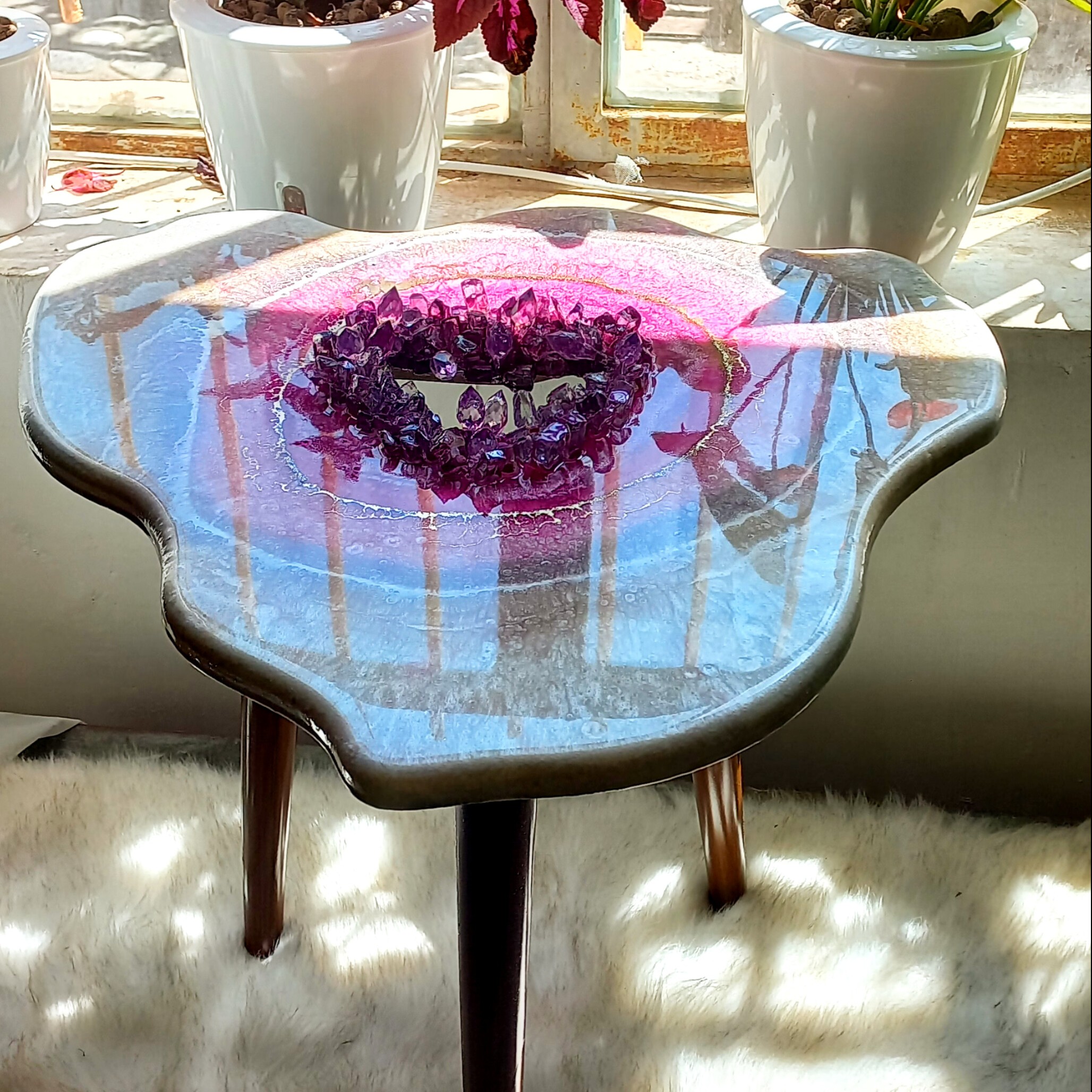 جنس چوب و رزین و کریستال قطر صفحه 50 سانت ارتفاع پایه 43 سانتی متر قطر صفحه 90*50 سانتی متر ارتفاع پایه 43 سانتی متر طرح دفرمه و ژئود مرکز کار کریستال قیمت قطر 50 سانتی 1200 قیمت 90*50 سانتی 2200