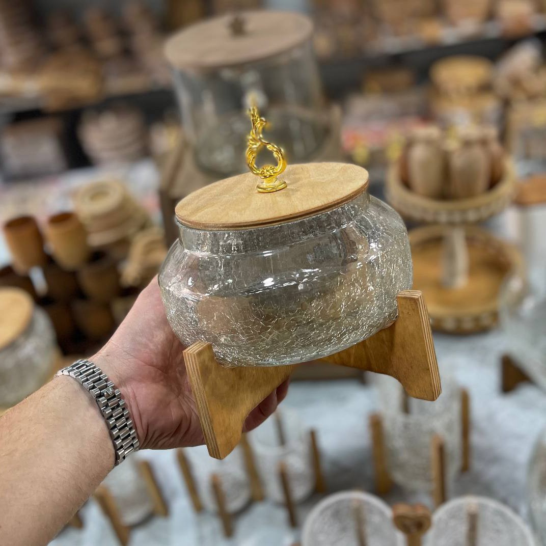 شکلات خوری پایه دار بزرگ شکلات خوری شیشه ای پایه چوبی شکلات خوری آبگز مبلمونسرا مدل 295072