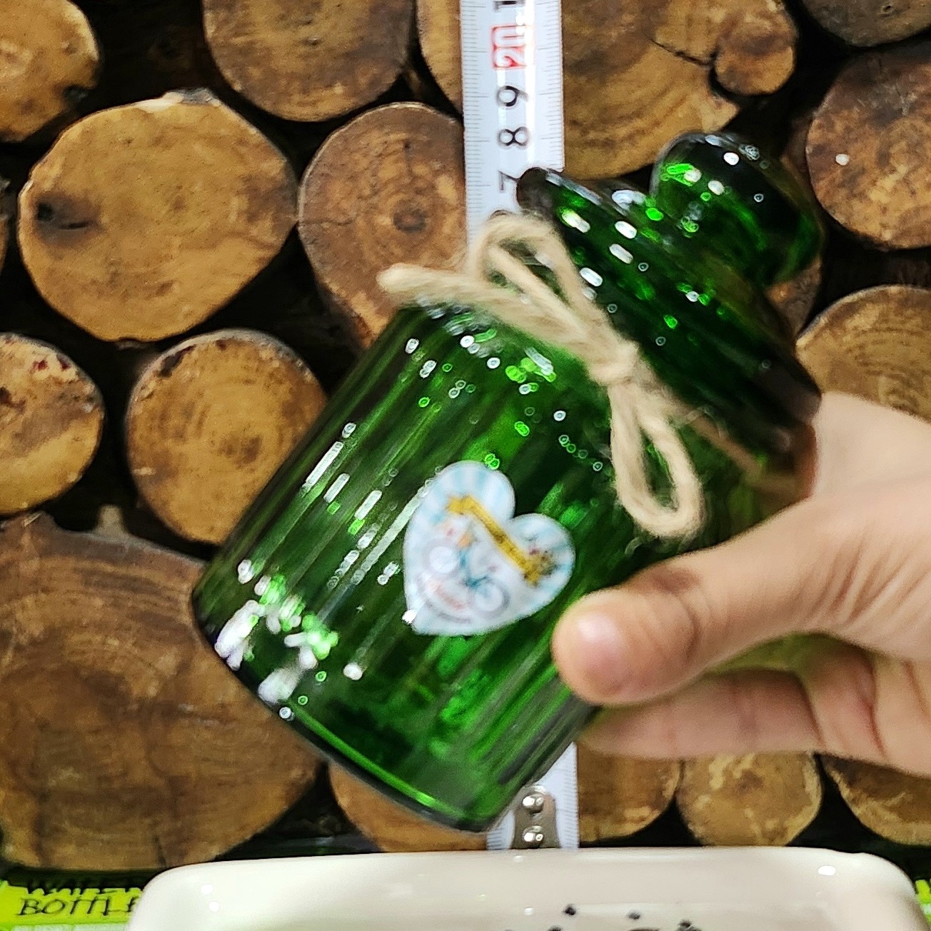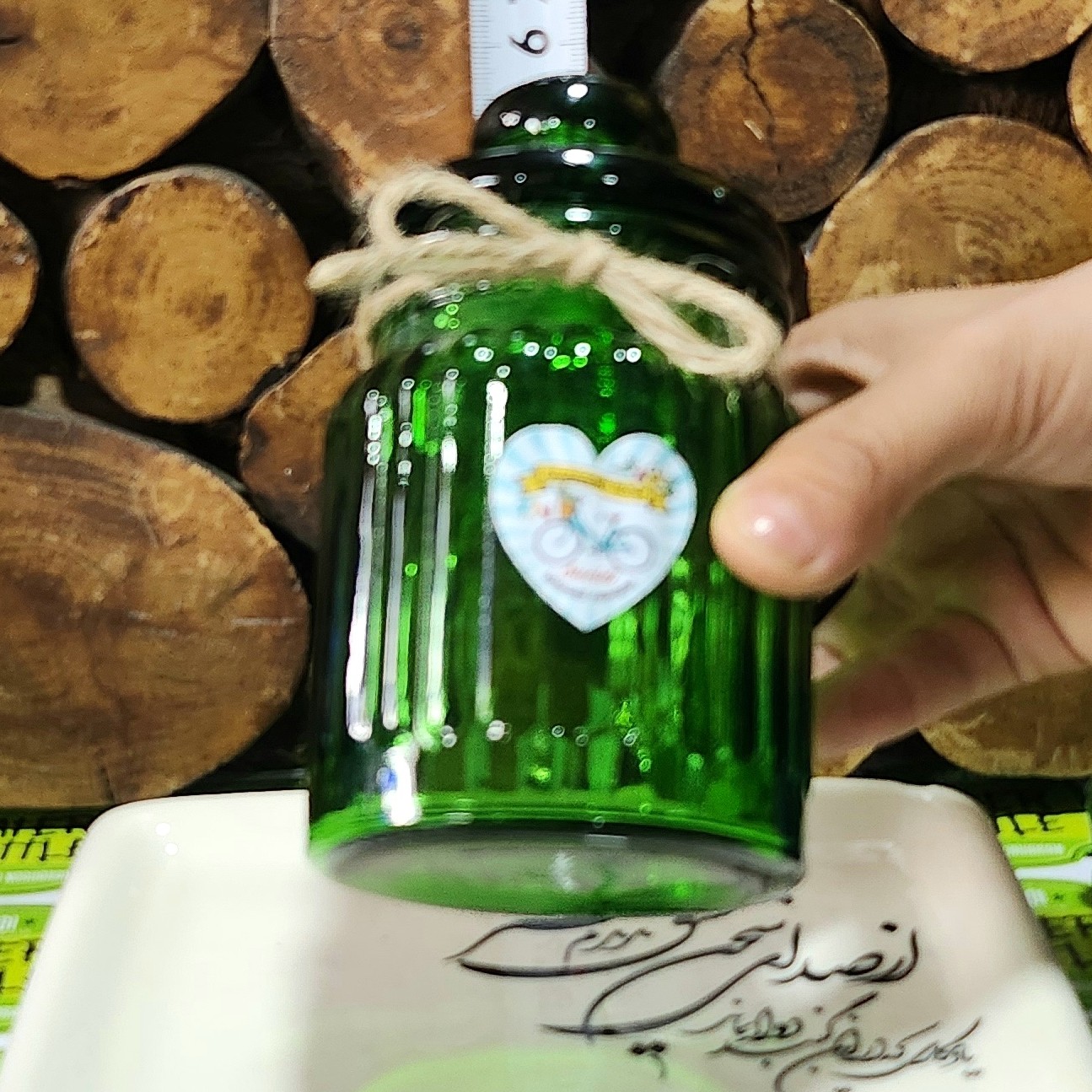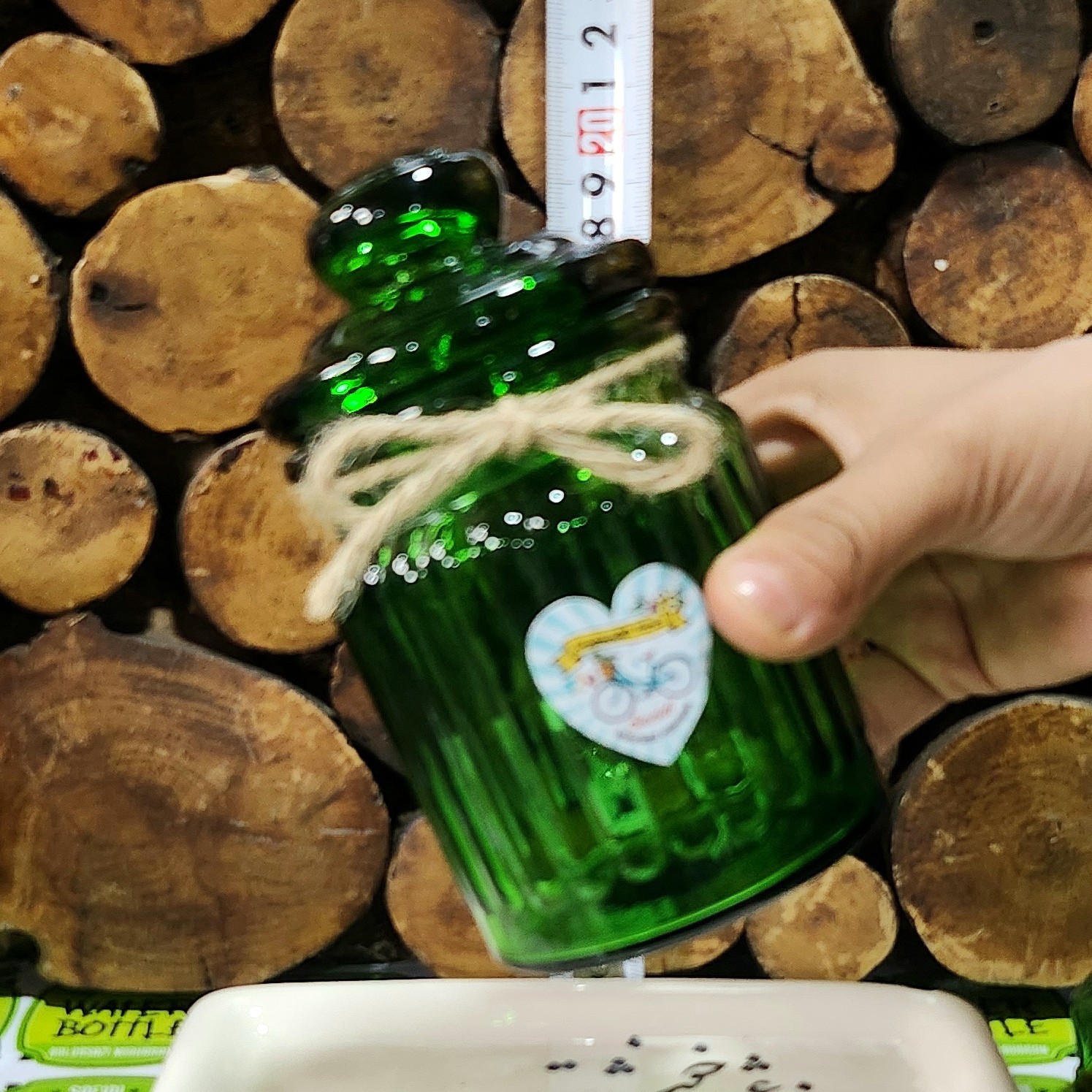 جا ادویه الماسی با حجم 350 سی سی و درب شیشه ای با واشر سیلیکونی آب بند ساخته شده از بلوز سبز عیار صادراتی مبلمونسرا مدل 293079