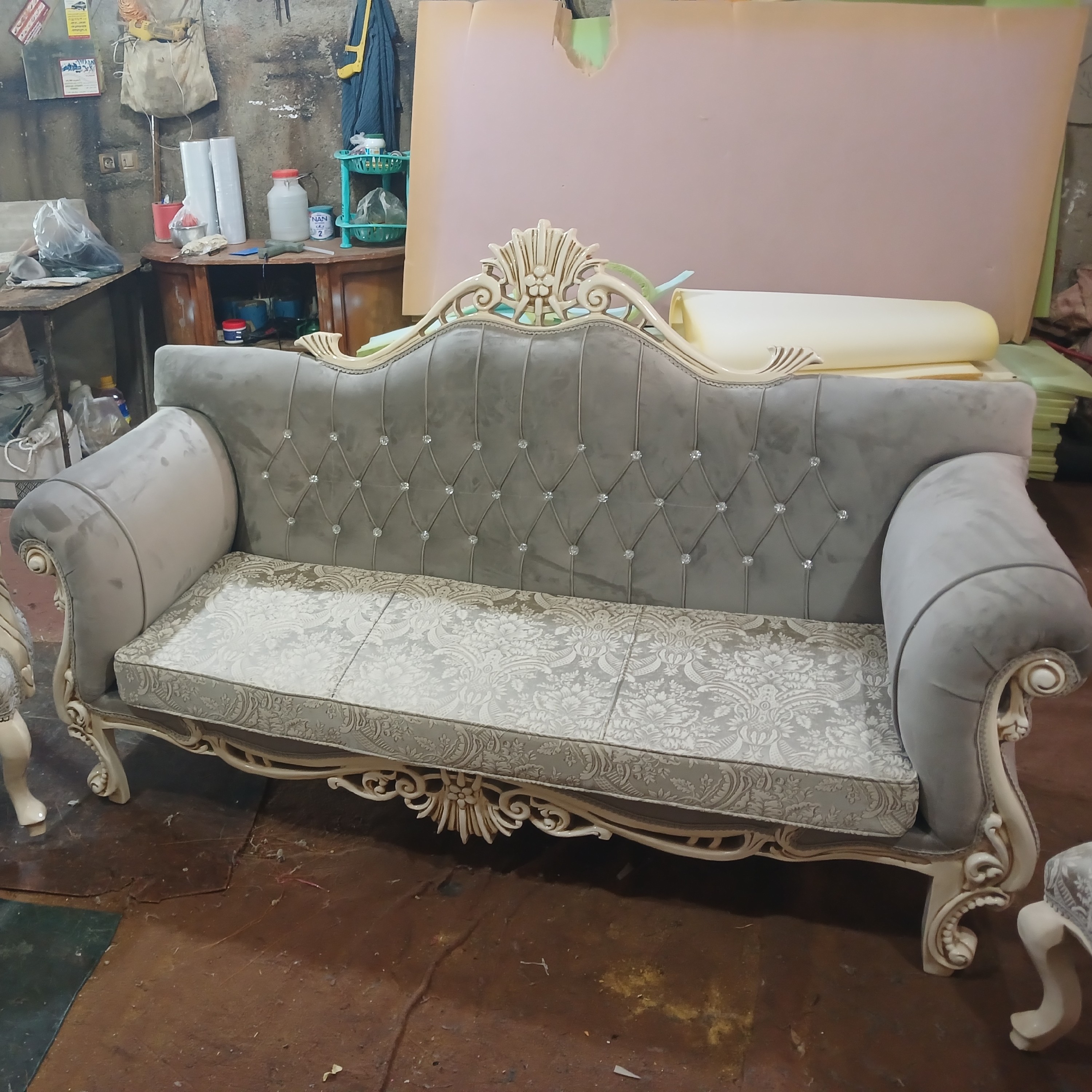 مبل کلاسیک خورشیدی 7 نفره 3+4عدد تک نفره امکان تغییر در ست مبلمان میباشد انتخاب رنگ چوب و پارچه به سلیقه مشتریان عزیز کلاف چوب گردو فوم سرد شرکتی در صورت خواستن جلو مبلی و عسلی مبلغ 5 ملیون به قیمت کار اضافه میشود