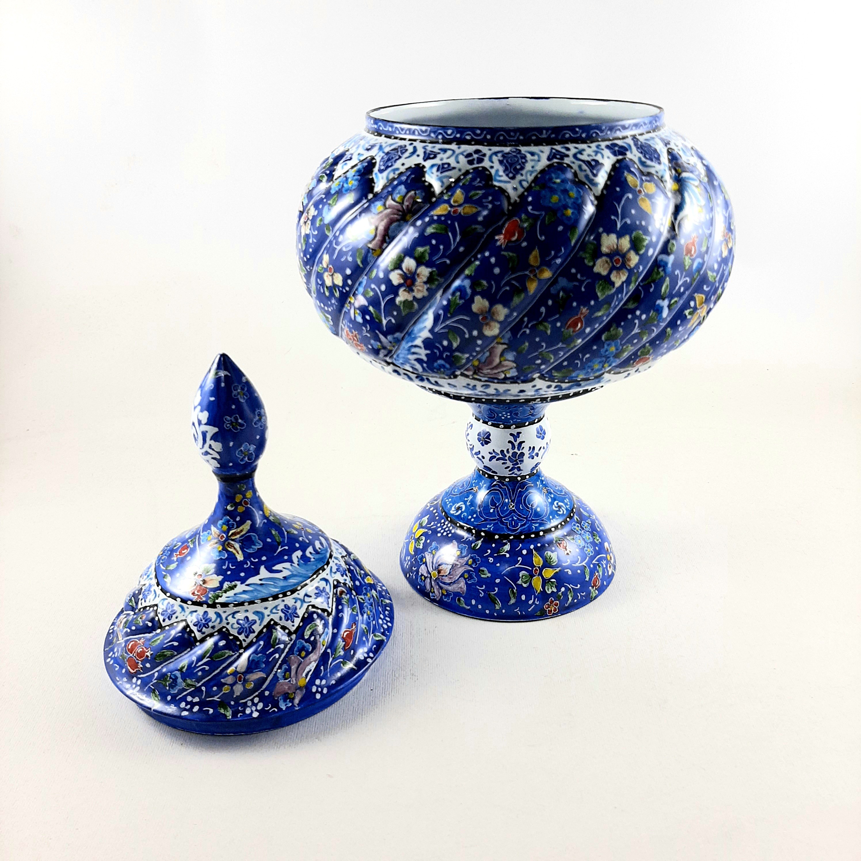 میناکاری هنری اصیل با مراحل و ریزه کاریهای زیادی است که آن را به یک هنر جهانی و زیبا تبدیل ساخته است. چندین مرحله رنگ و کوره برای ایجاد چنین هنری فاخر، صبر و شکیبایی هنرمند ایرانی. شکلات خوری 30 سانتی که جنس آن از مس لعاب شده می باشد نمایانگر هنر اصیل ایرانی و درست شده توسط هنرمند ایرانی می باشد و از رنگهایی شاد مانند : لاجورد، فیرورهای، در آن نگارگری شده است . که هر کدام این رنگها حس جدیدی را در انسان به وجود می آورد. 🔴مناسب برای هدیه تبلیغاتی برای ارگان ها مزیتهای شکلات خوری میناکاری : یک دکوری زیبا و اصیل در خانه دارید. شما جز یکی از خانوادههای اصیل و هنردوست شناخته میشوید.