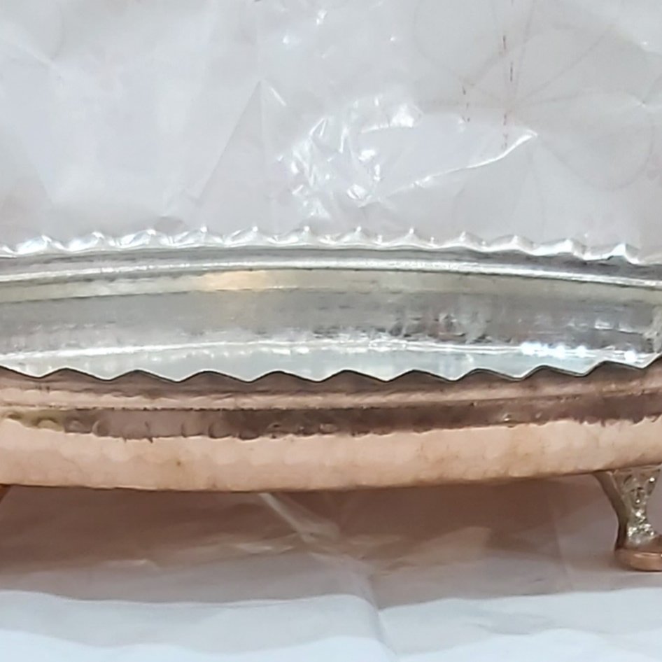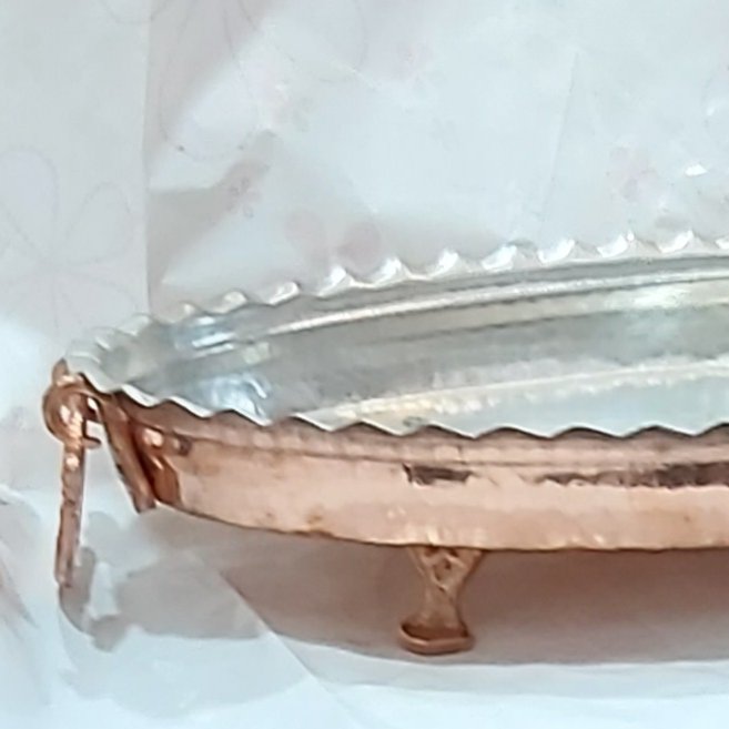 مرغ خوری مس اصل زنجان برای سرو ماهی مرغ کوبیده. پایه دار دسته دار شیک ظریف