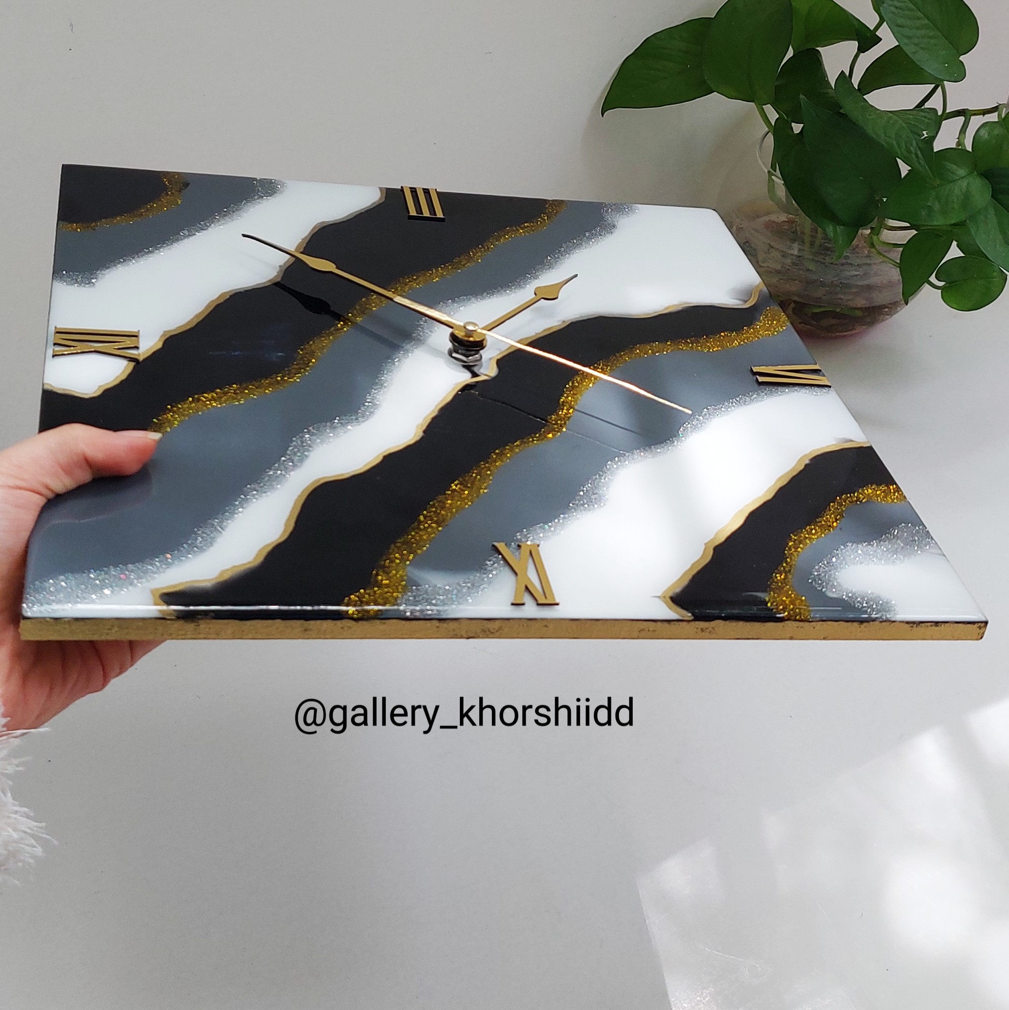 ساعت دیواری لوکس مناسب برای منزل و اداره وهدیه کارشده با دولایه رزین موتورآرامگرد تایوانی عالیی وقابل تعويض همراه بامحافظ پشت موتور ارسال رایگان بسیارمحکم ومقاوم اعدادوعقربه مولتی استایل خارجی