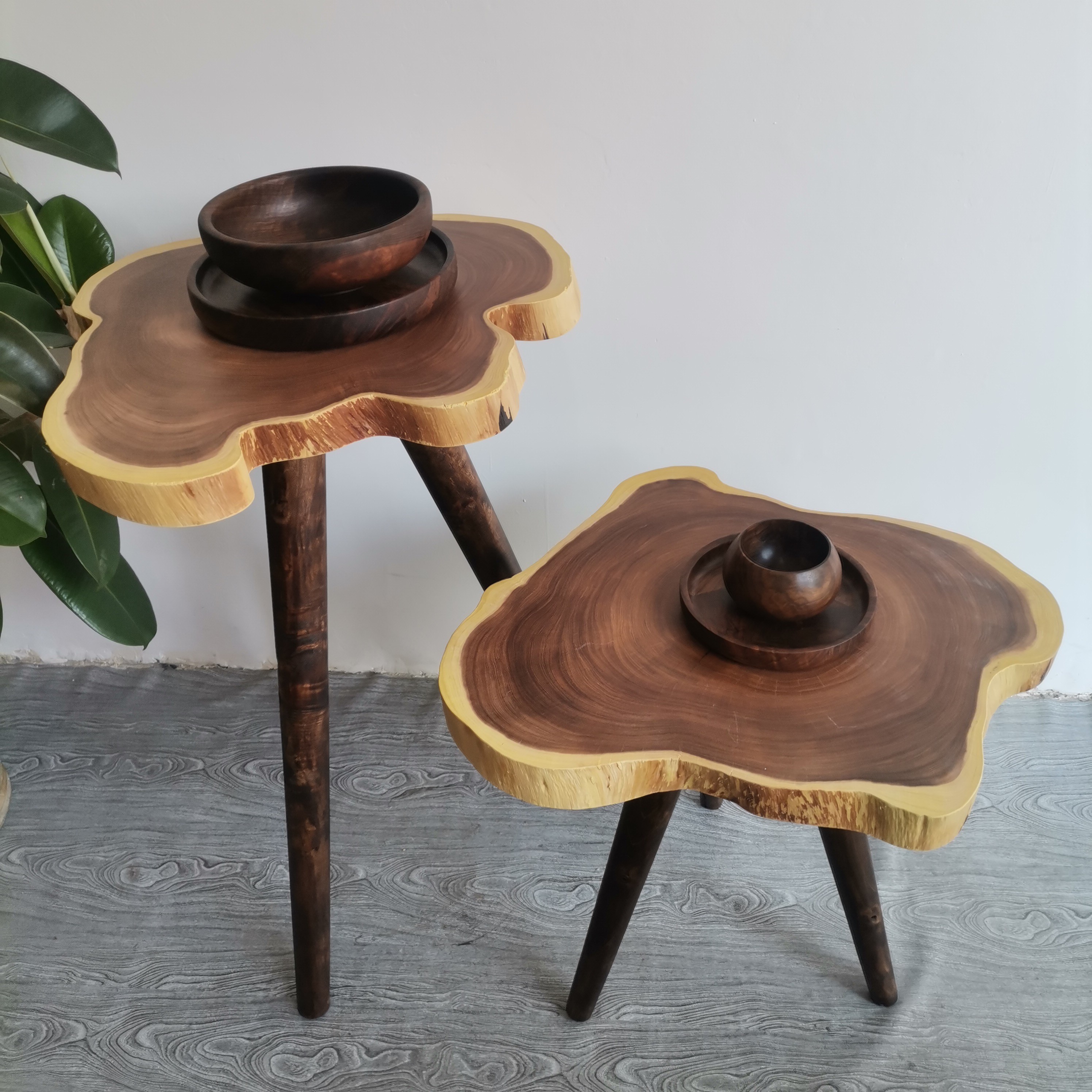 میز عسلی چوبی دفرمه سه پایه مدل کهور پایه پیچی برای ارسال امن و راحت مبلمونسرا مدل 222603