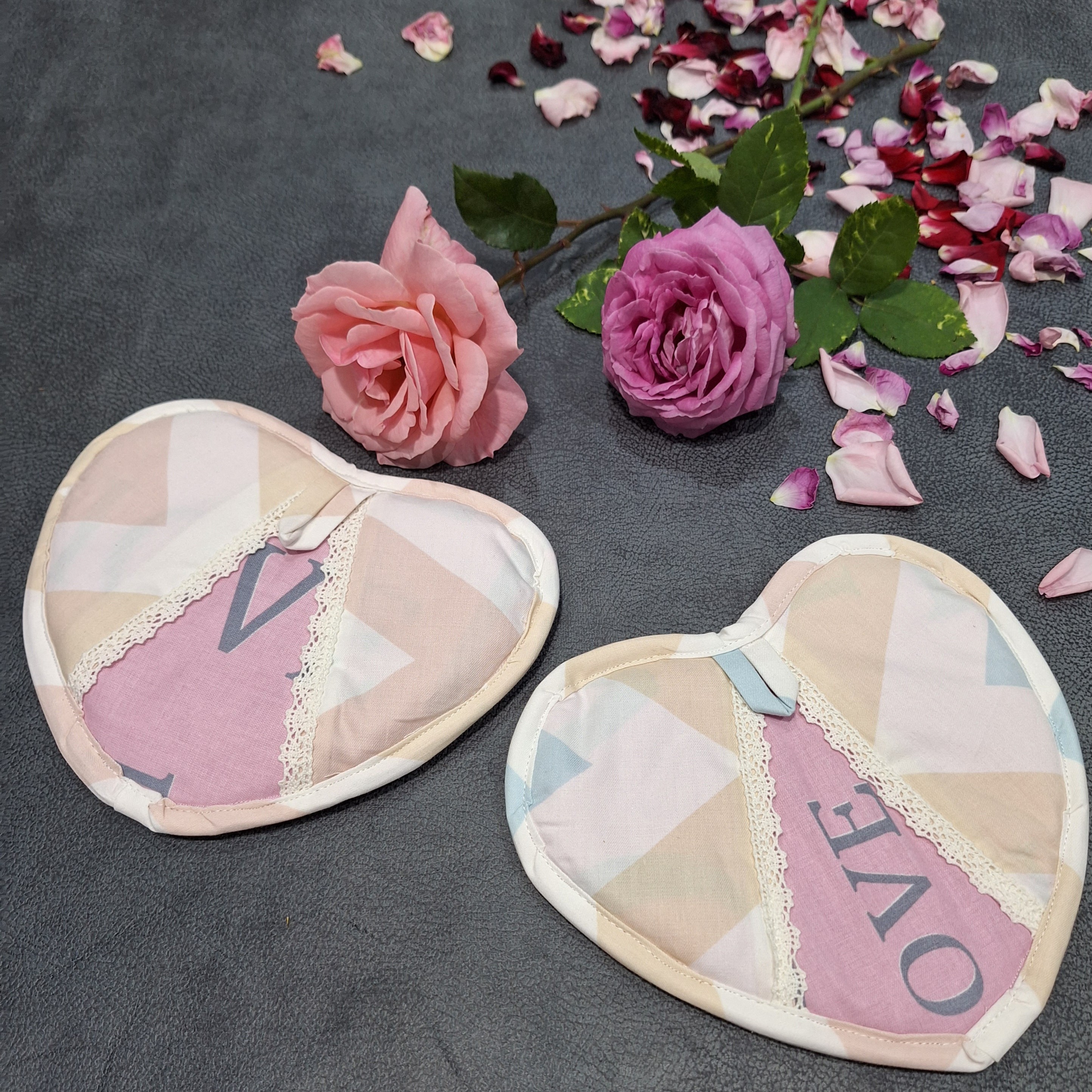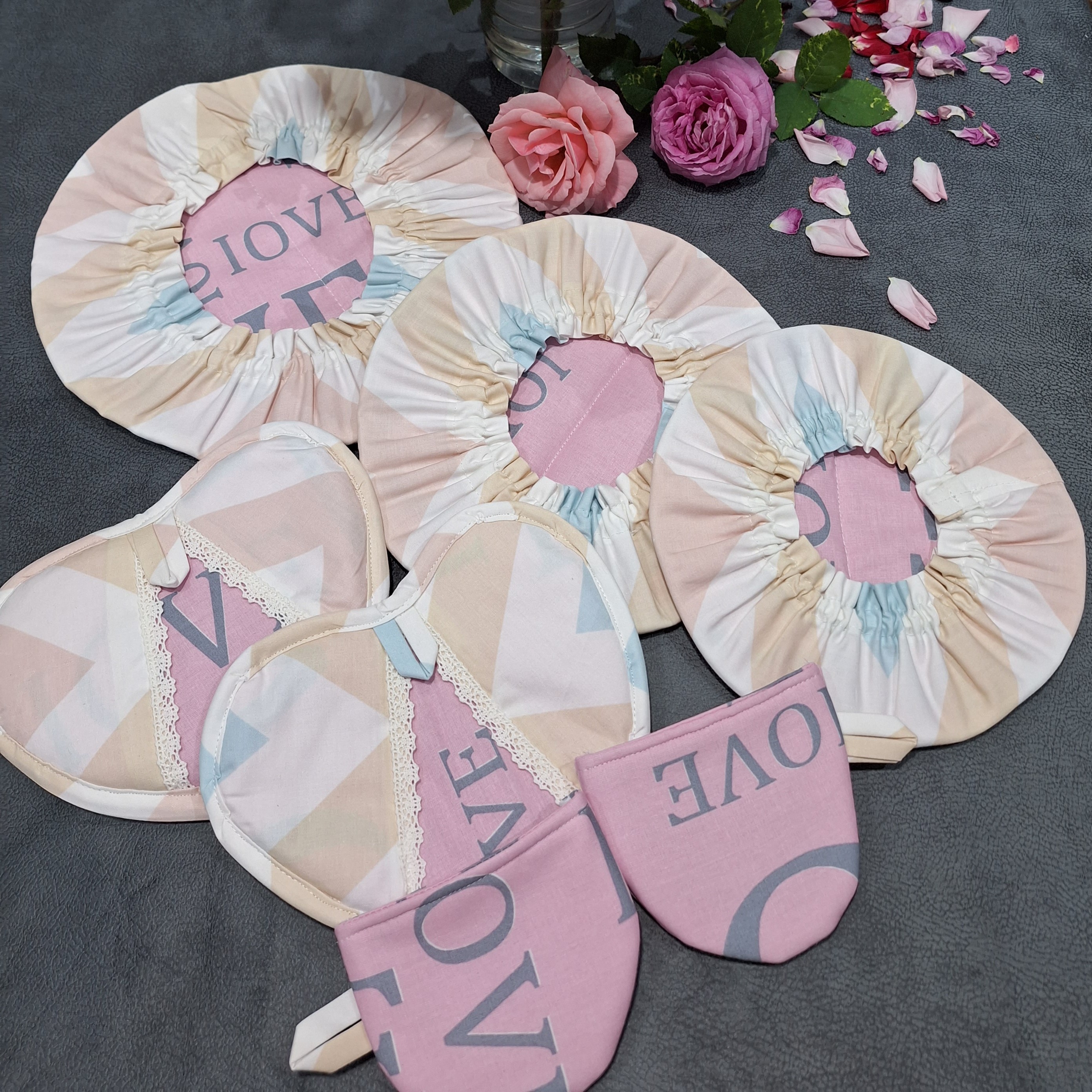 سه تیکه دمکن از کوچیک به بزرگ دو عدد دستگیره آشپزخانه مدل قلب دو عدد دستگیره آشپزخانه مدل چدنی با جنس عالی دوخت تمیز