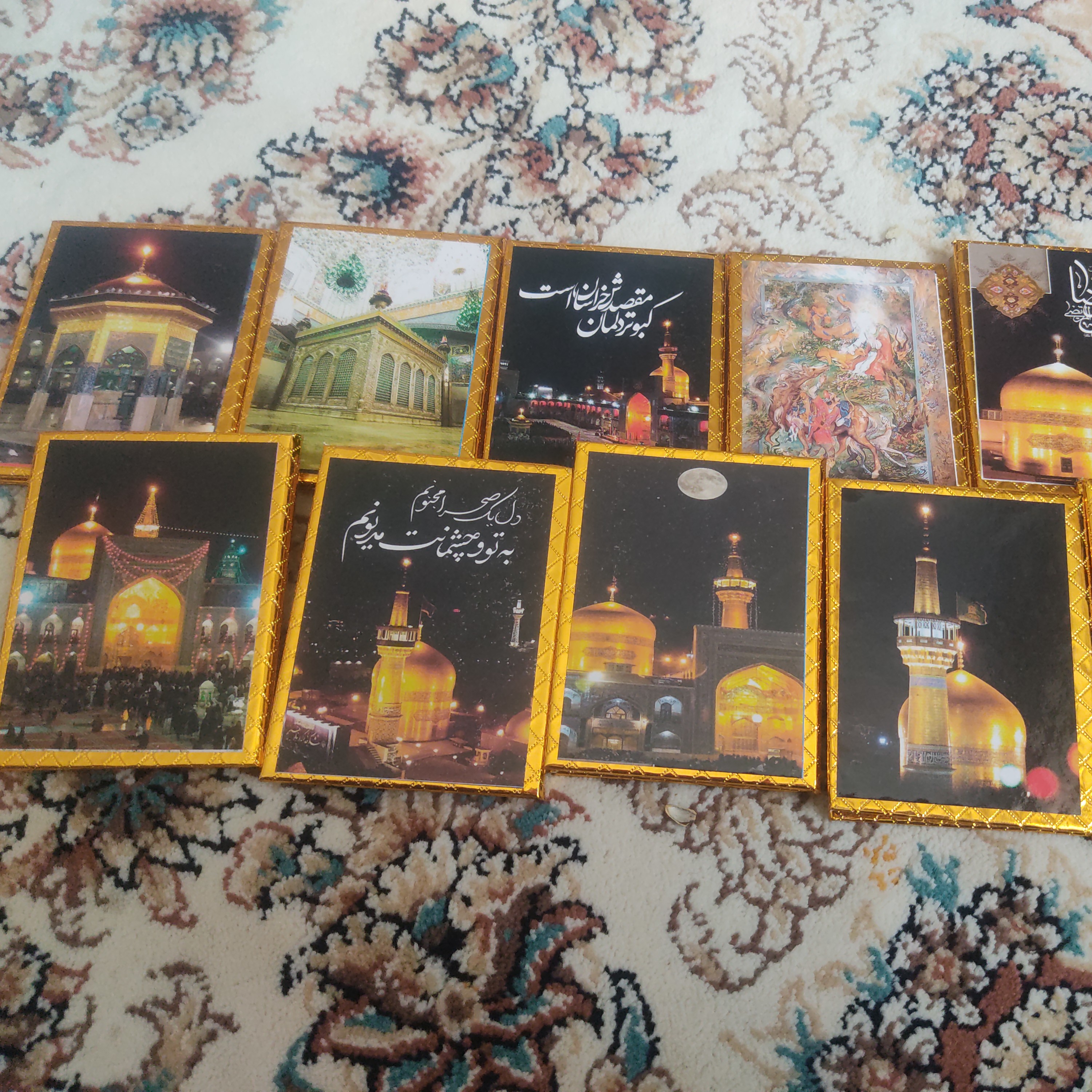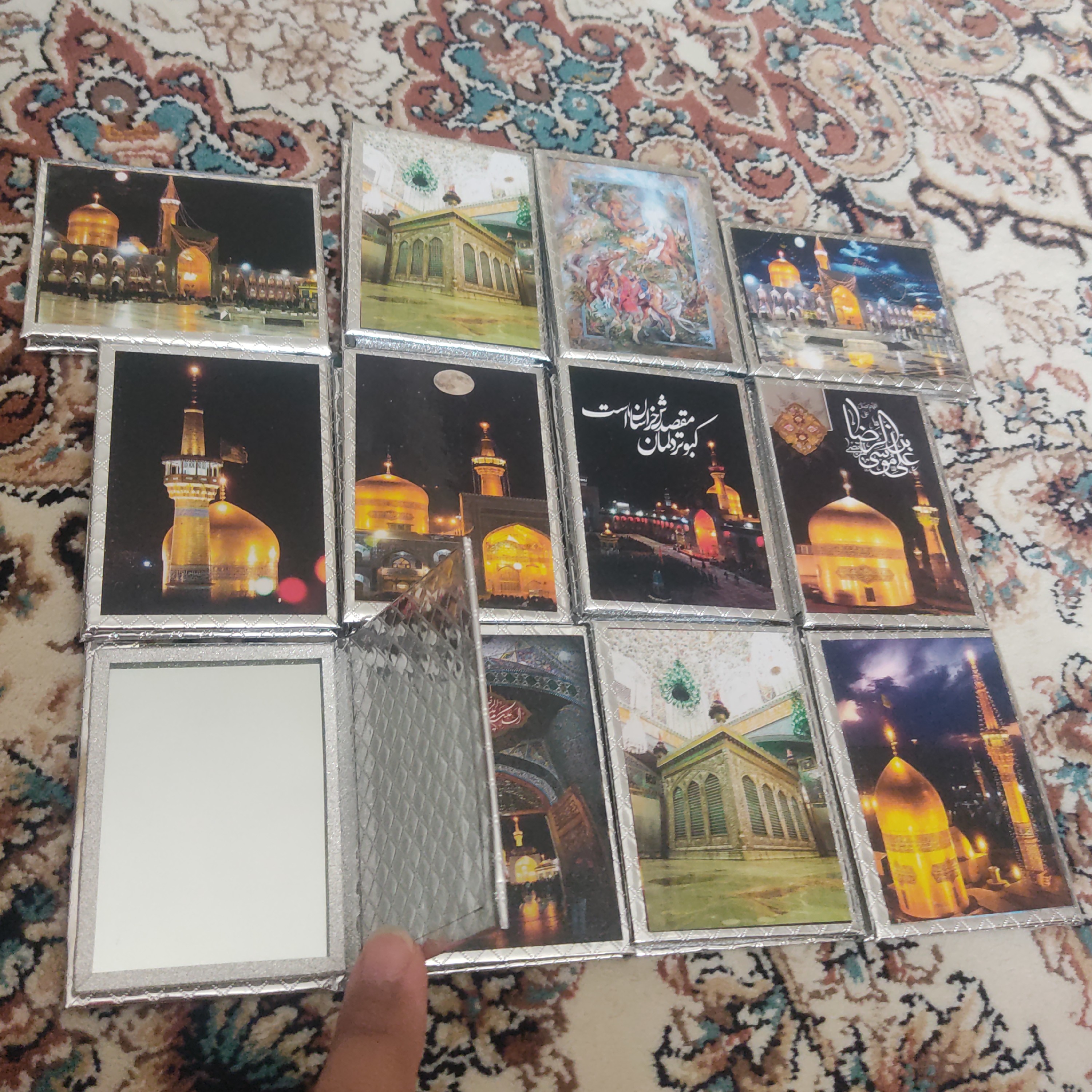 اینه های کتابی در جلد های طلایی و نقره ای با طرح حرم امام رضا علیه السلام ،ارسال طرح بصورت رندوم می باشد اما رنگ طلایی یا نقره ای به درخواست شما