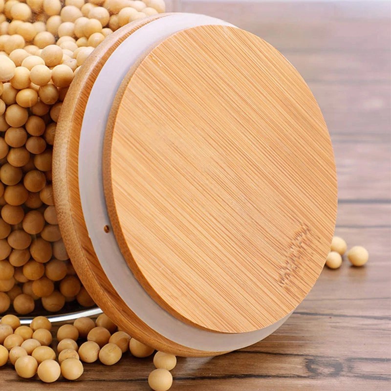 بانکه شیشه ای استوانه در چوبی سایز 4 - کندی شیشه ای حبوبات و تنقلات مبلمونسرا مدل 278321
