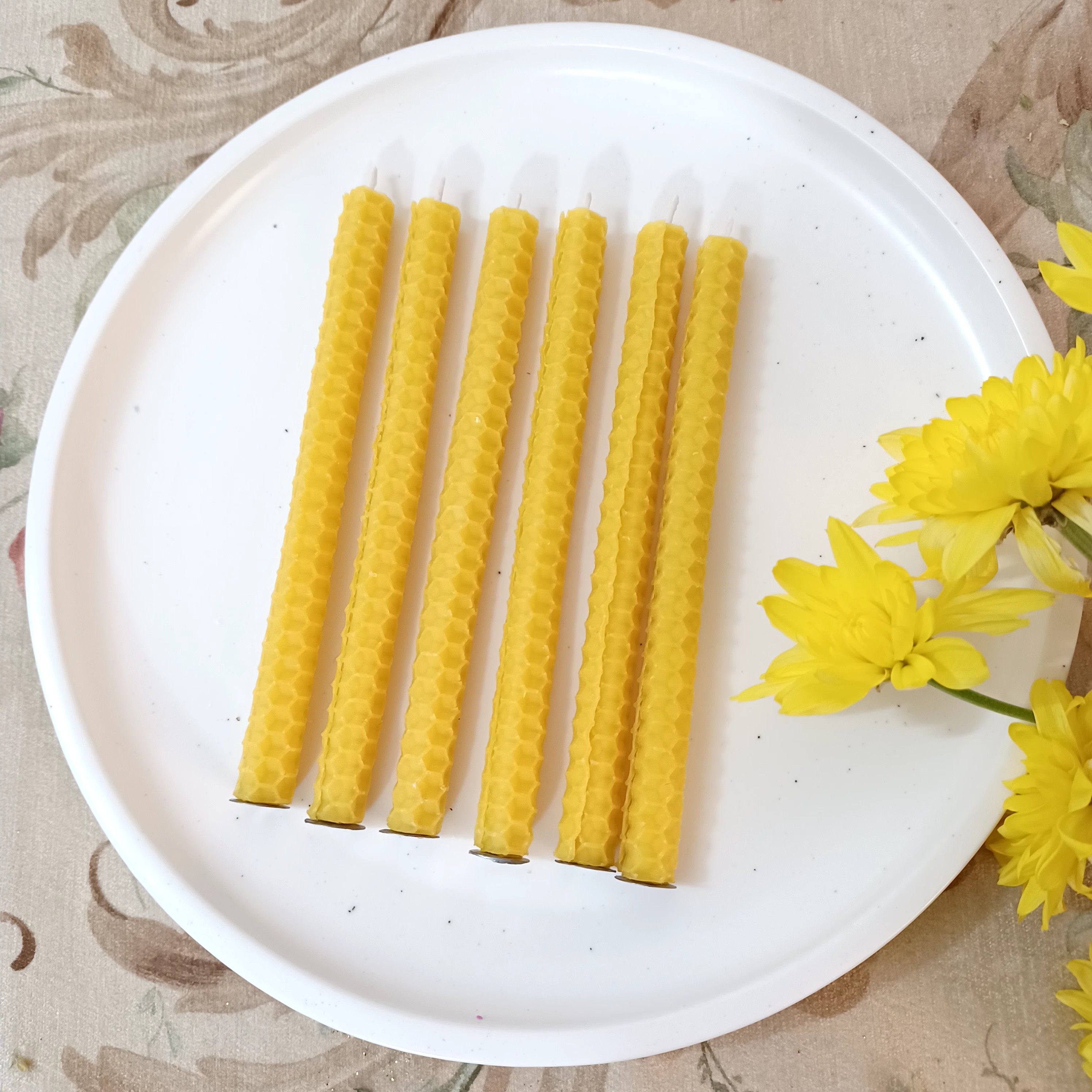 🕯6 عدد شمع موم عسل باریک 🎂🍰مناسب مدیتیشن و کیک تولد ارتفاع 14 قطر 1سانت 🕯زمان سوخت هر شمع 40 تا 50 دقیقه هست ✅اگه شمع رو برای کیک میخواین حتما بگین تا با سیخ چوبی آماده بشه براتون🎂🍰 🥰