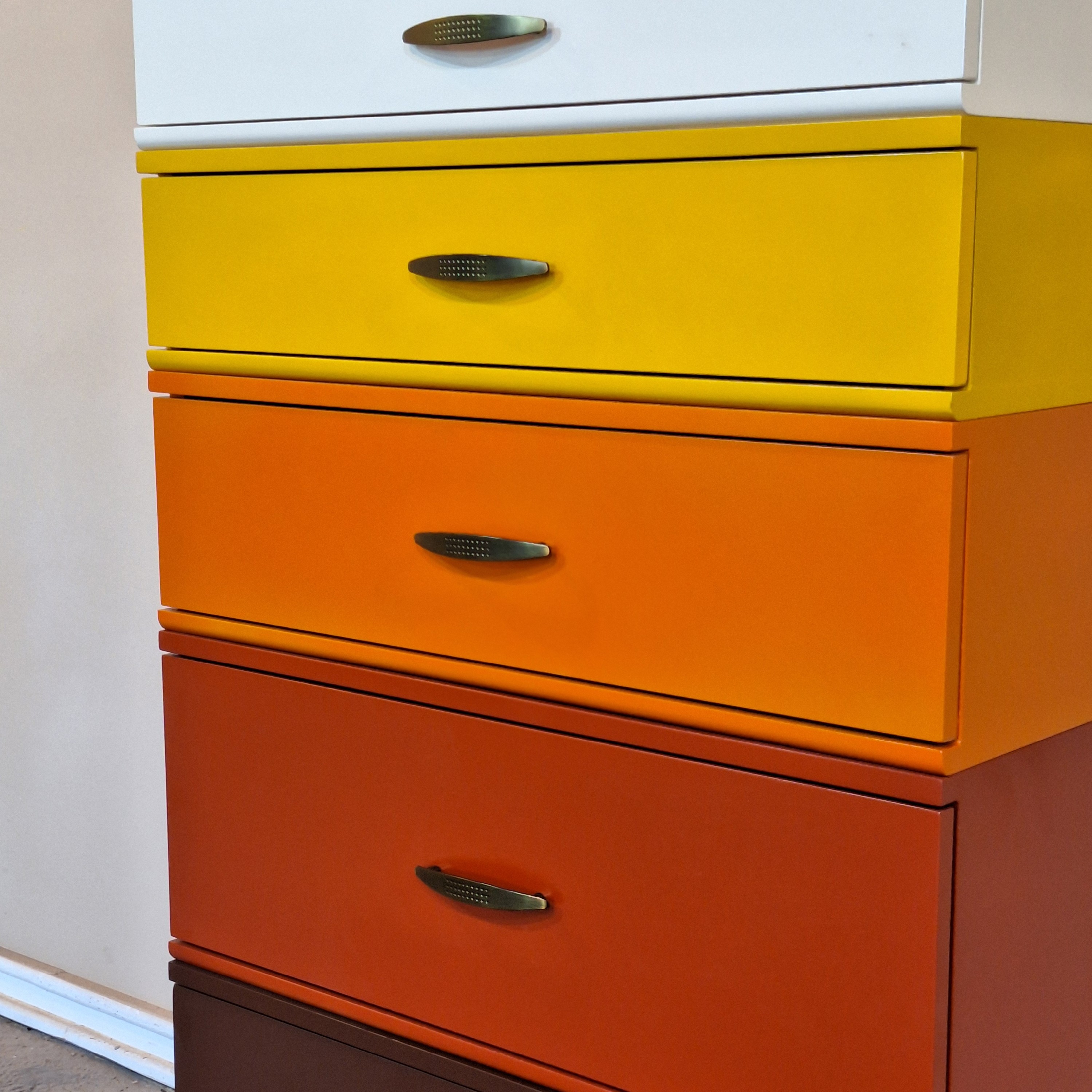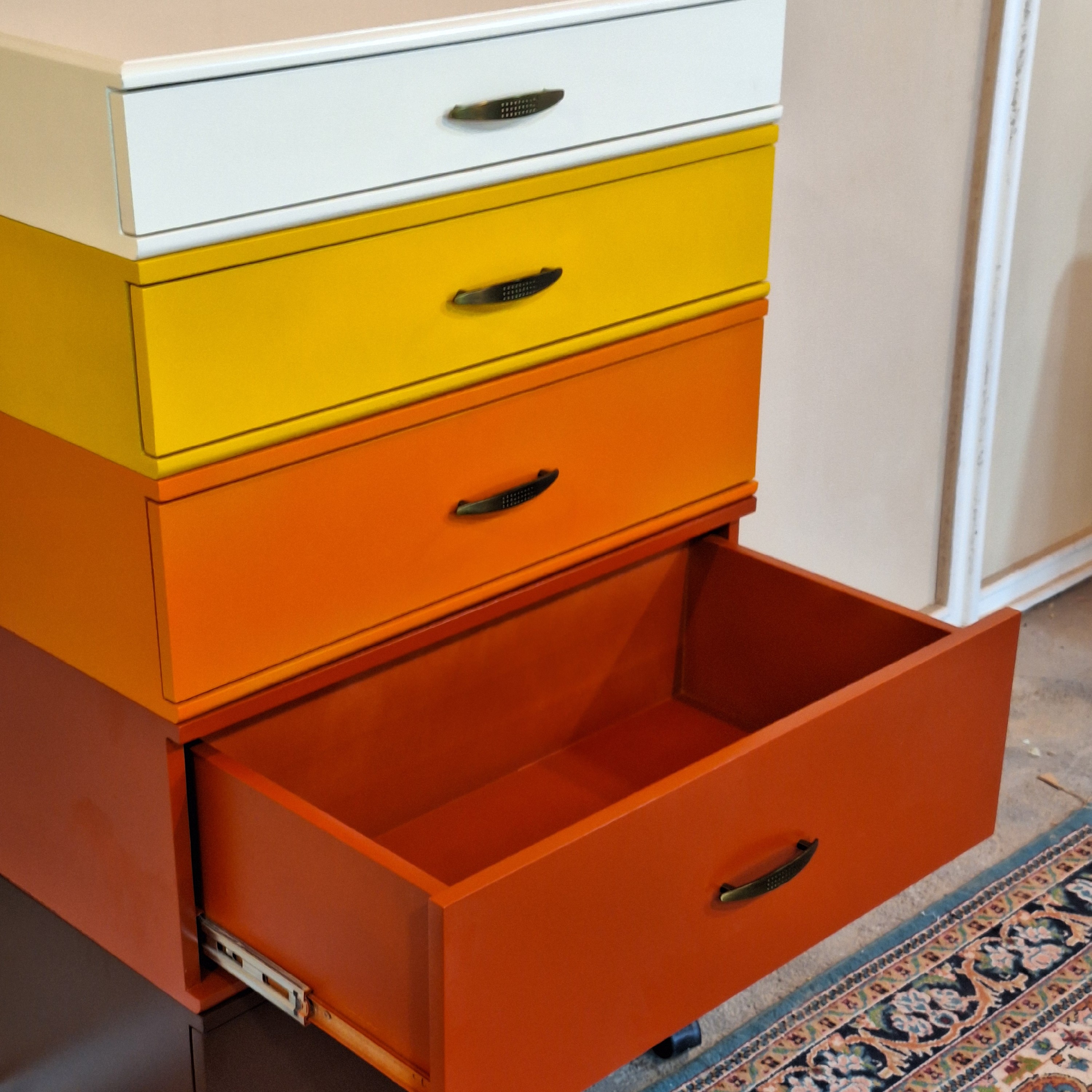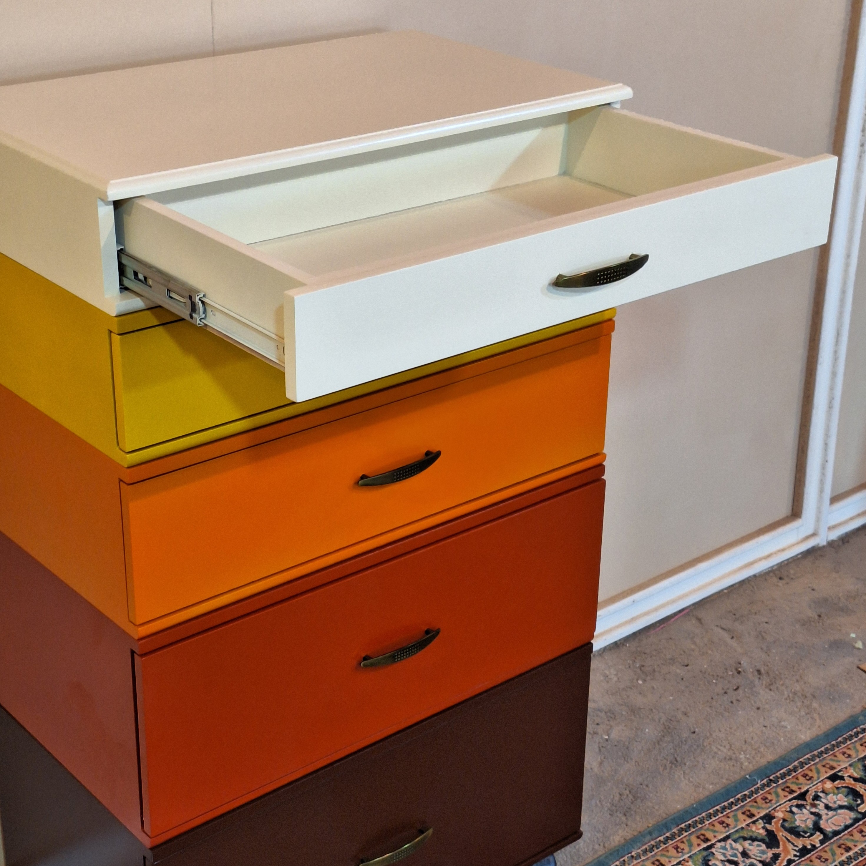 دراور لباس مدرن چند رنگ و 5 تیکه👔😍 هر کشوی این دراور لباس در یک رنگ طراحی شده و برای وسایل و لباس های ریز و درشتتون مناسبه🌱 زیر دراور چرخ داره برای جابه جایی راحت تر👌🏼 میتونیم هر کشو رو جدا یا به هم چسبیده طراحی کنیم. متریال 🪵 ام دی اف خام ،رنگ پوششی و پلی استر رنگبندی همه جوره دلخواه شماست🌈 ارسال به سراسر کشور داریم 🚛 هزینه ارسال به صورت و به عهده مشتری میباشد.