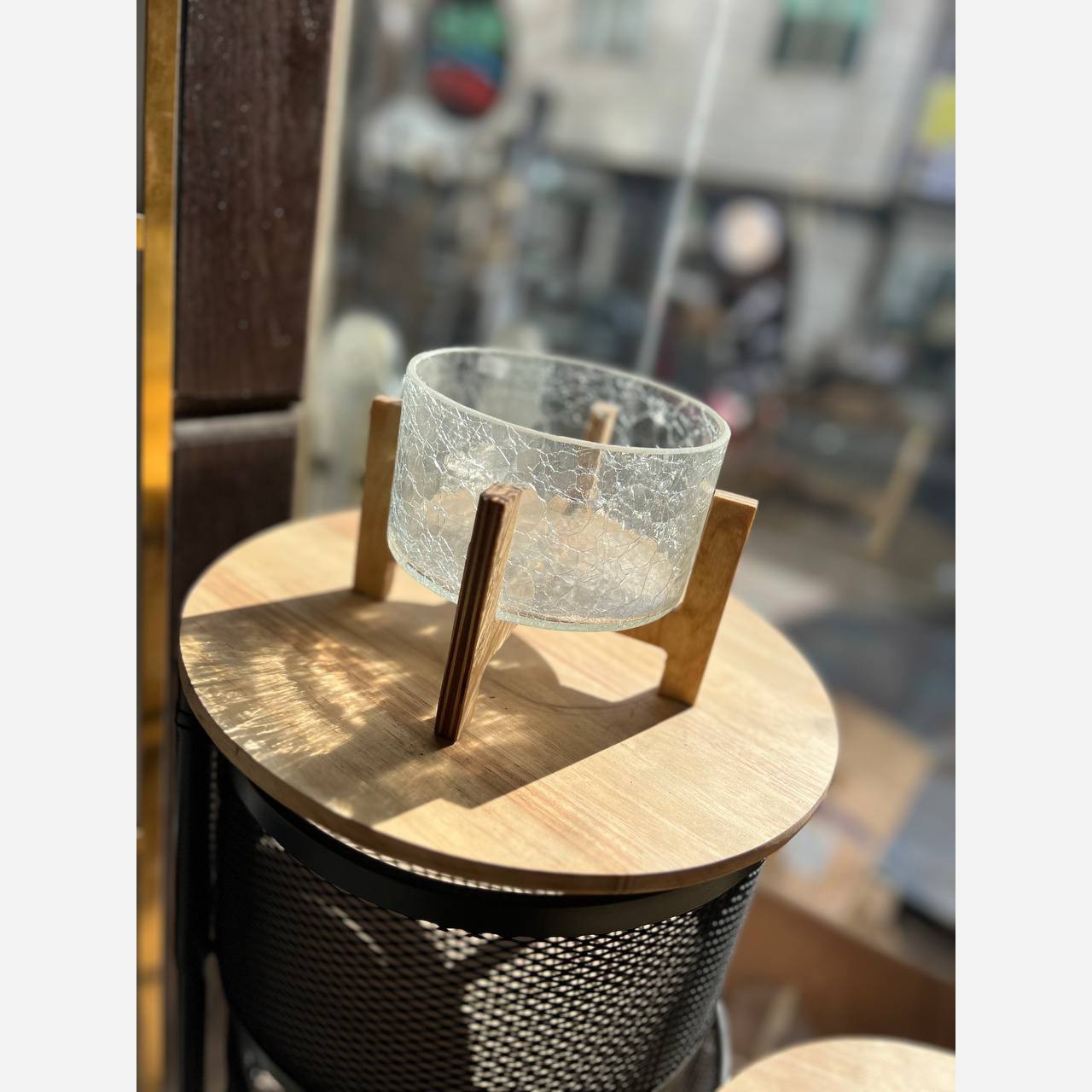 آجیل خوری آبگز پایه چوبی آجیل خوری پایه دار آبگز کاسه آجیل شیشه ترک آبگز مبلمونسرا مدل 265618