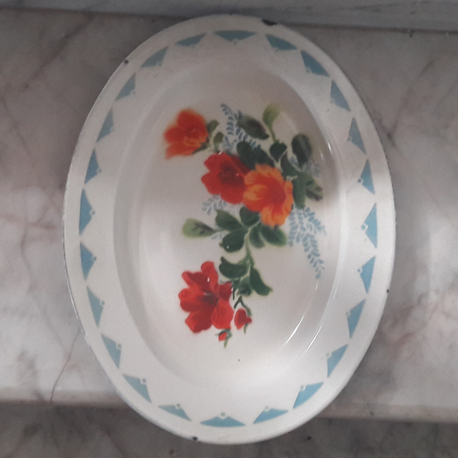 دیس پلویی چدن لعابی قدیمی بسیار زیبا و کیفیت در عکس ها مشخص می باشد