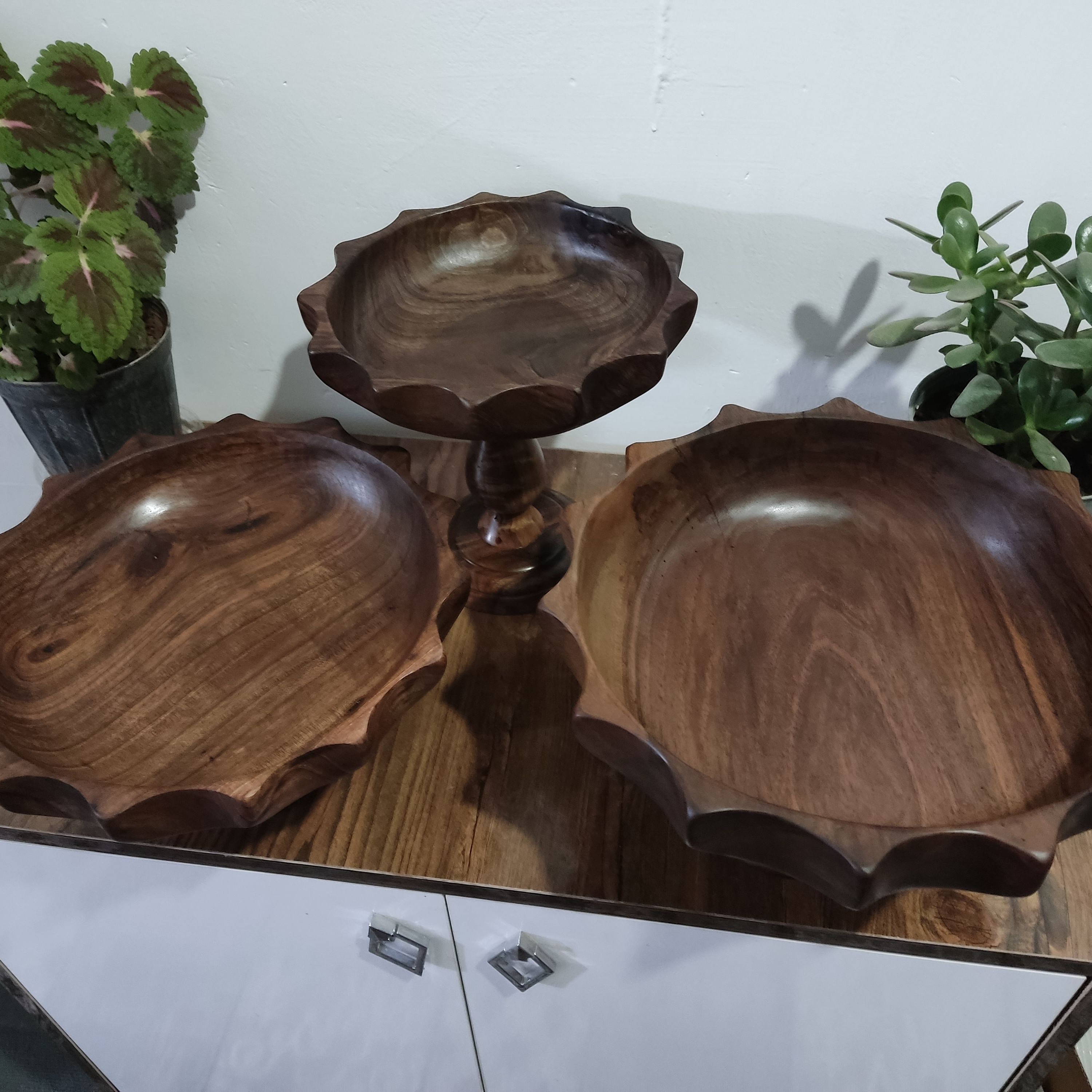 ست پذیرایی پایه دار،ظرف چوبی بزرگ،ظروف چوبی،میوه خوری چوبی،شیرینی خوری چوبی،ست چوبی،ظرف دفرمه بزرگ،سینی مزه، مبلمونسرا مدل 277043