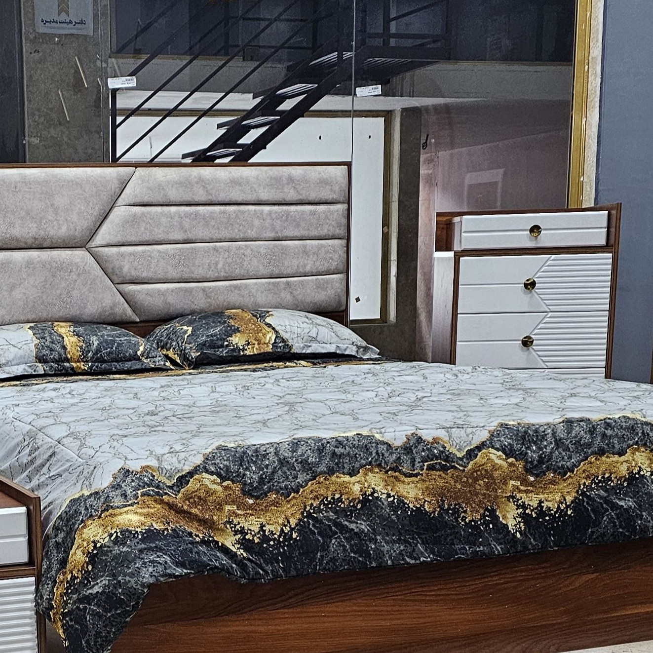 سرویس خواب شرکتی جنس نما ام دی آف بدنه ملامینه سرویس شامل تخت دونفره دوعدد پاتختی میزارایشی وصندلی رنگ بندی پارچه متنوع فایل وکمد هم ست داره فایل داخل عکس هست کرایه به عهده ی مشتری عزیزه