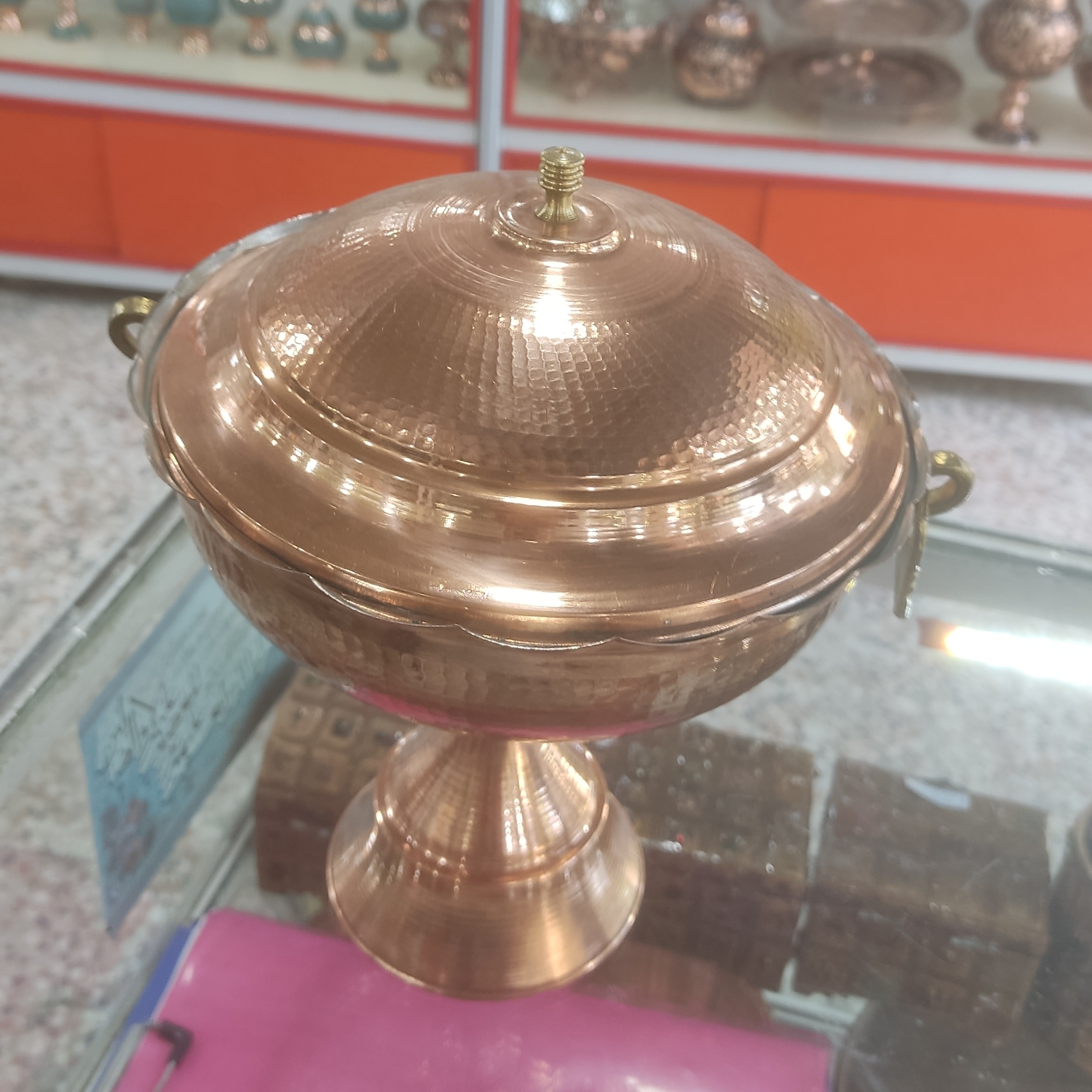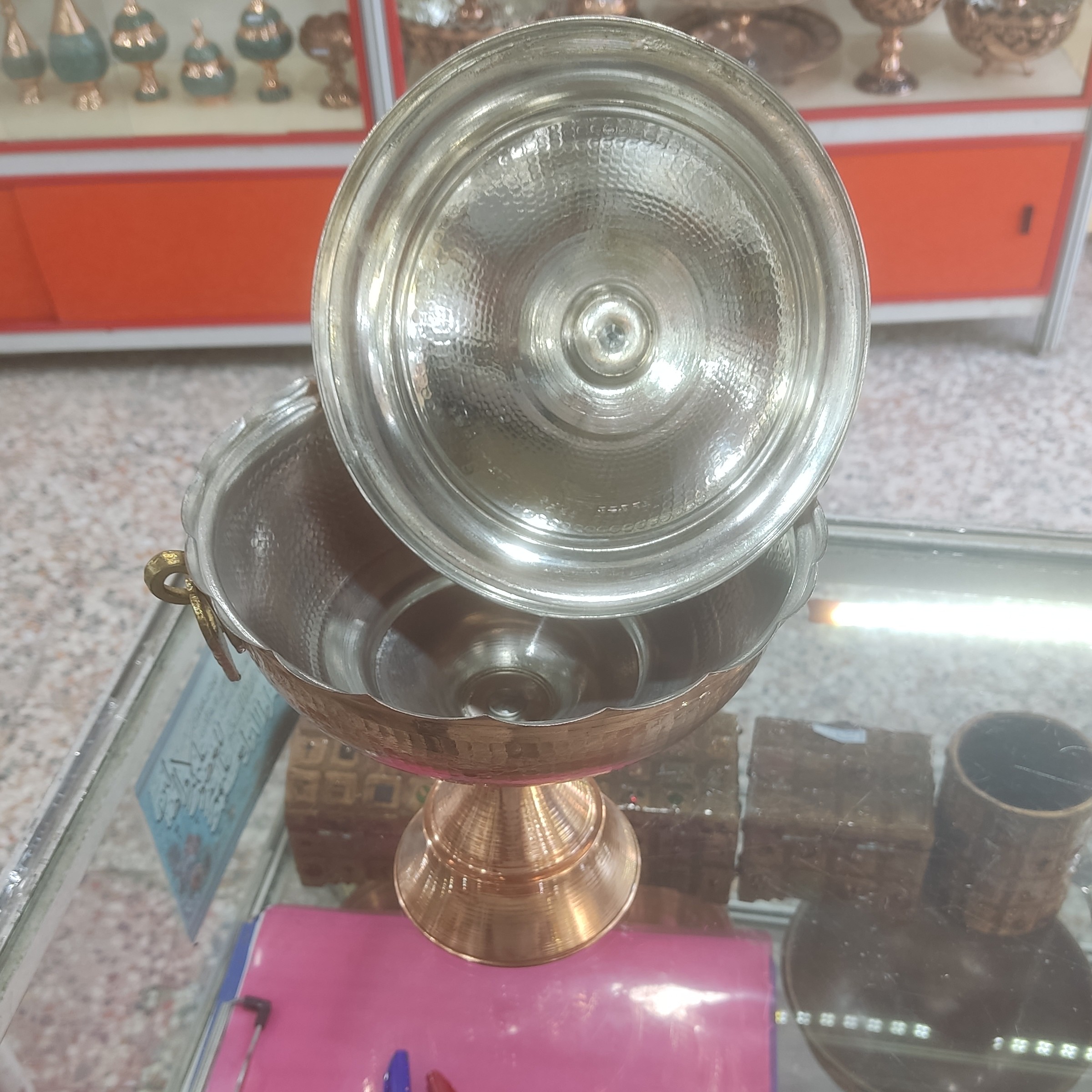 گز خوری مسی پایه بلند درب دار گوشواره دار جنس مرغوب درجه یک زنجان