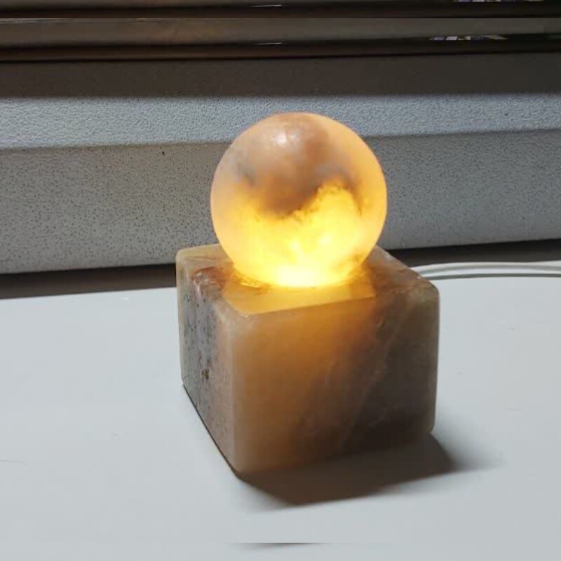آباژور سنگ نمک مدل گوی و کوبیک، چراغ خواب، با کابل کلیددار مبلمونسرا مدل 231569
