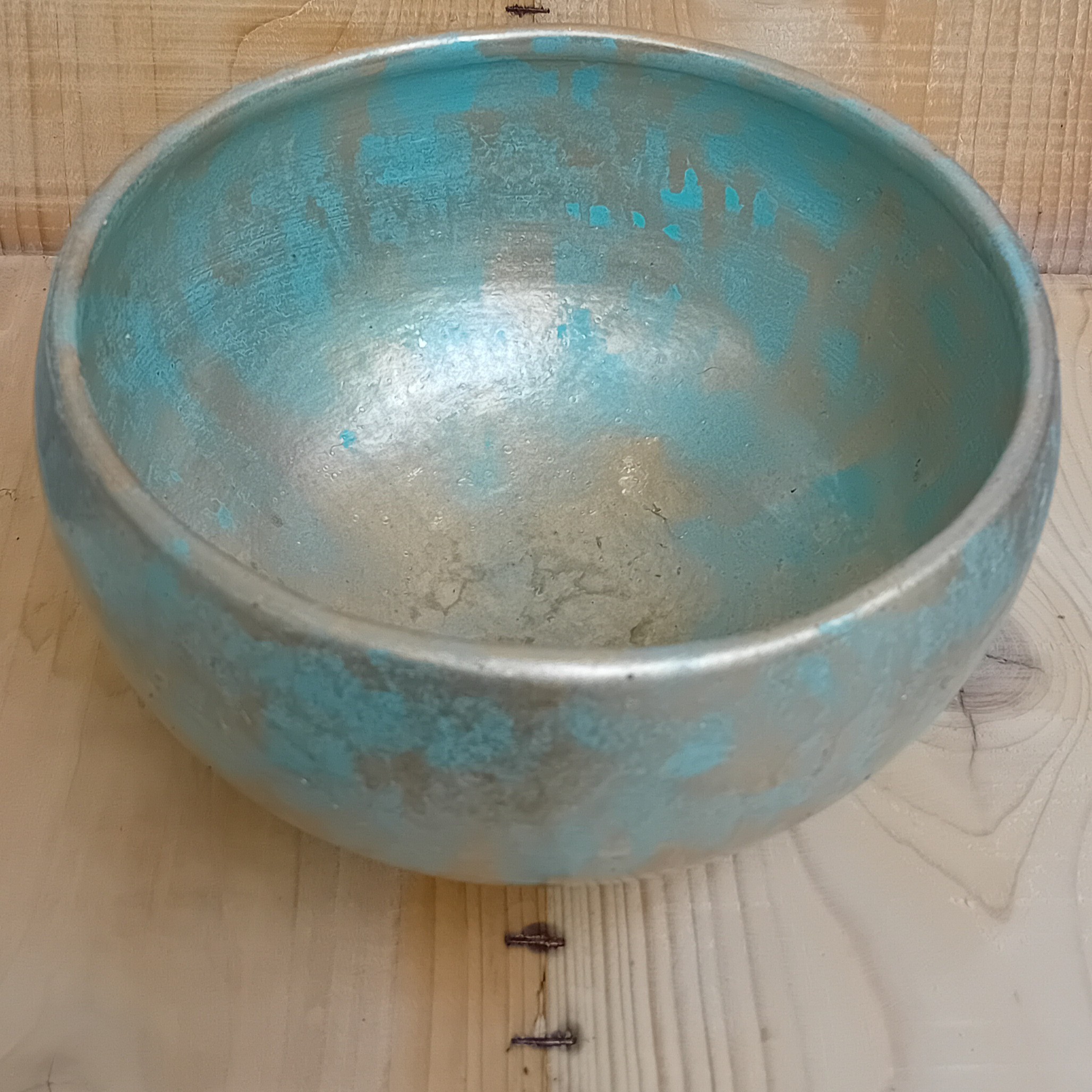 کاسه سفالی رنگ آمیزی شده طلای و سبز. بسیار جلوه زیبایی دارد مناسب دکر و آجیل و تخمه