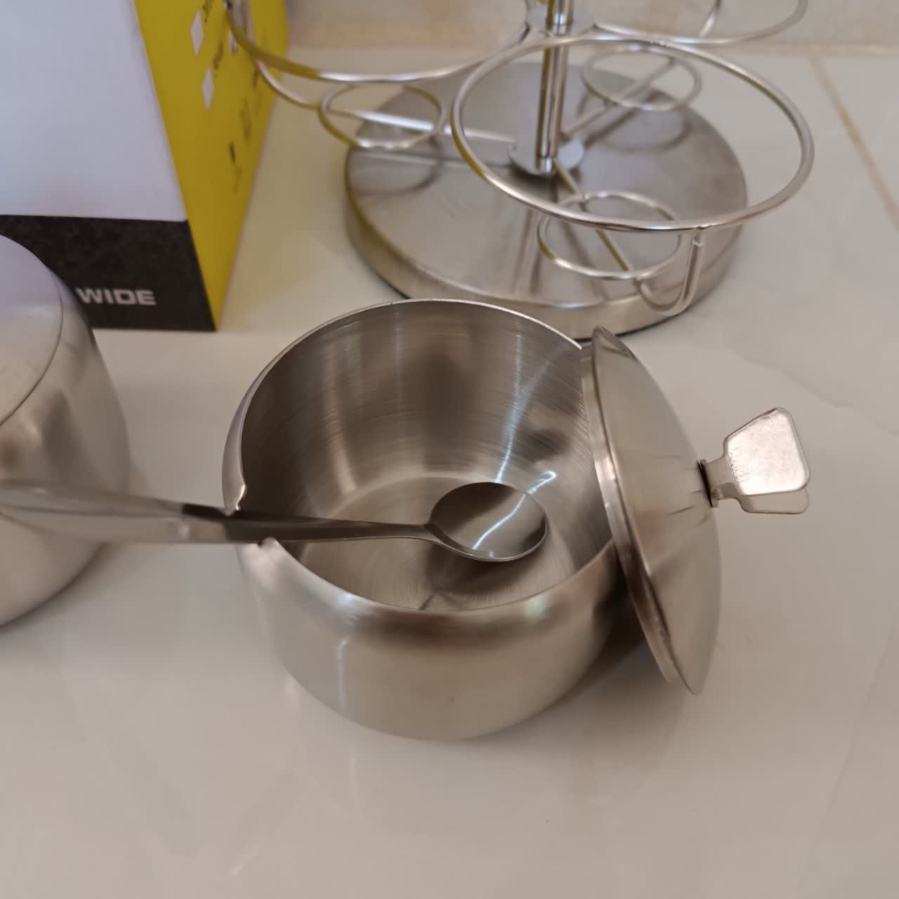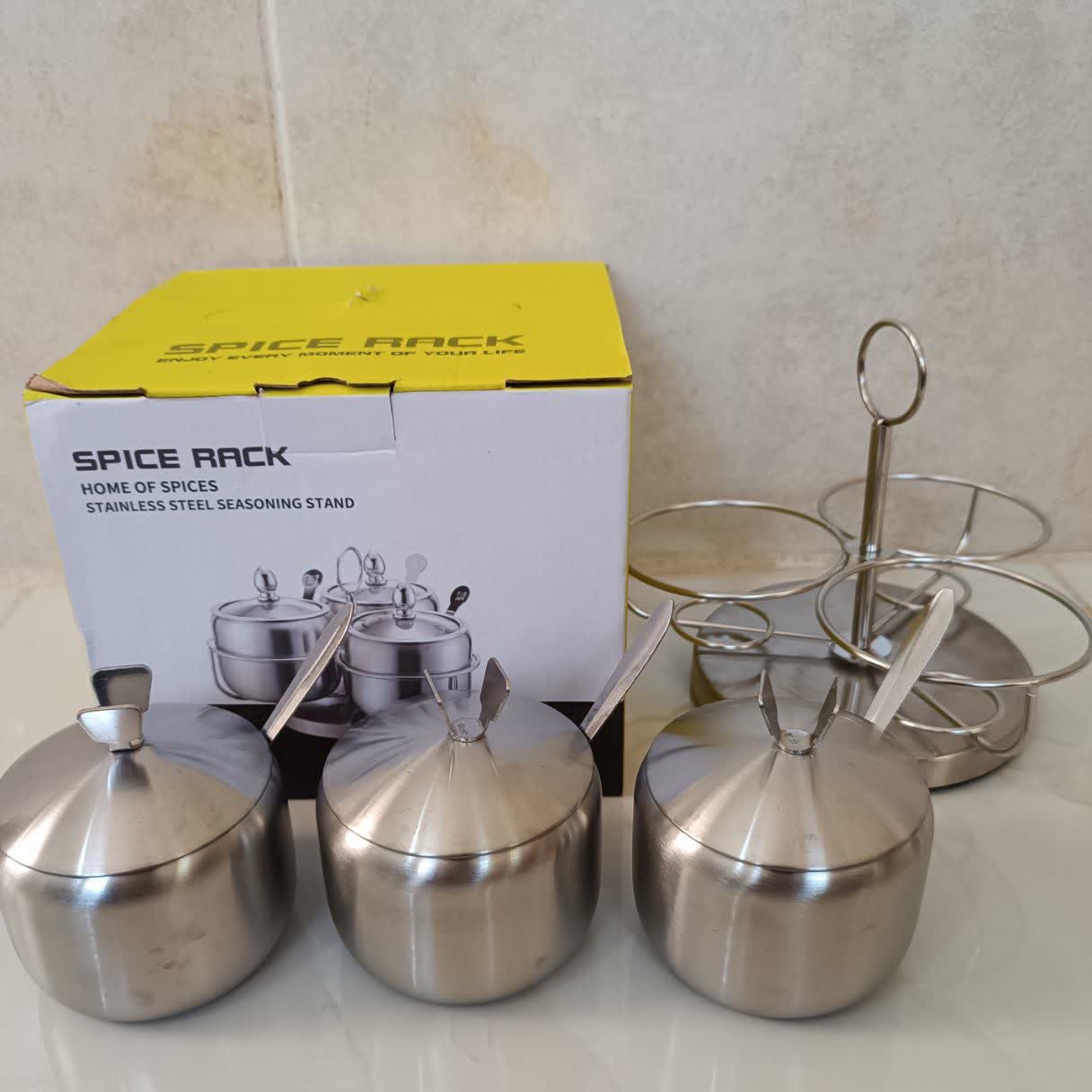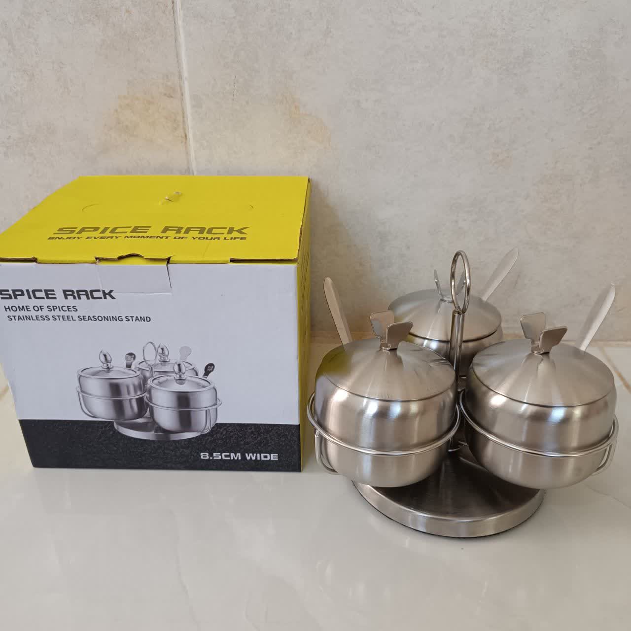 جنس : استیل ضد زنگ ارتفاع : 16 سانتی متر ارتفاع هر جا ادویه : 6.5سانتی متر قطر هر جا ادویه : 7/5 سانتی متر