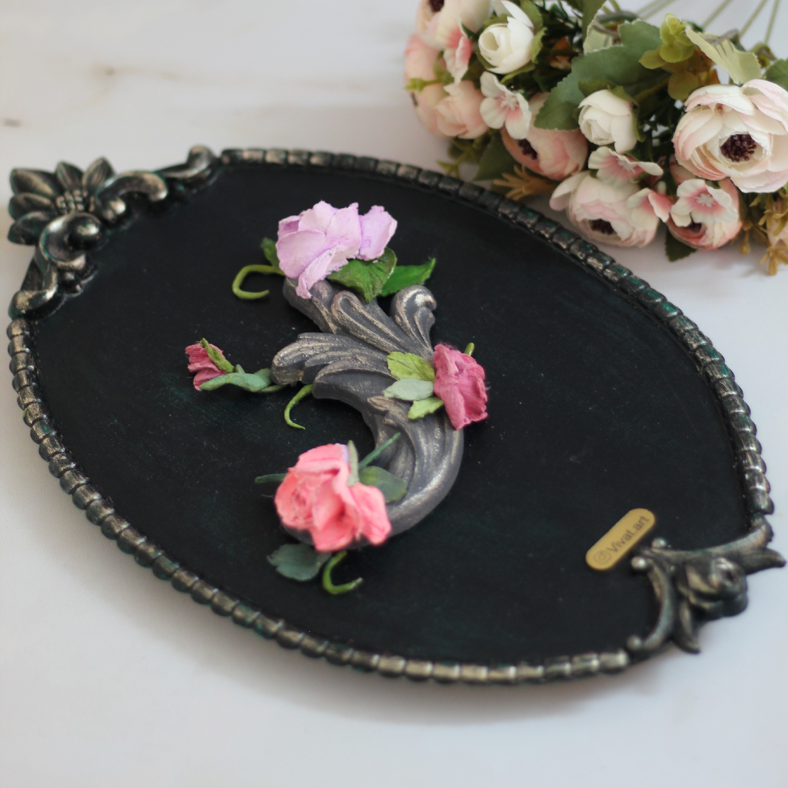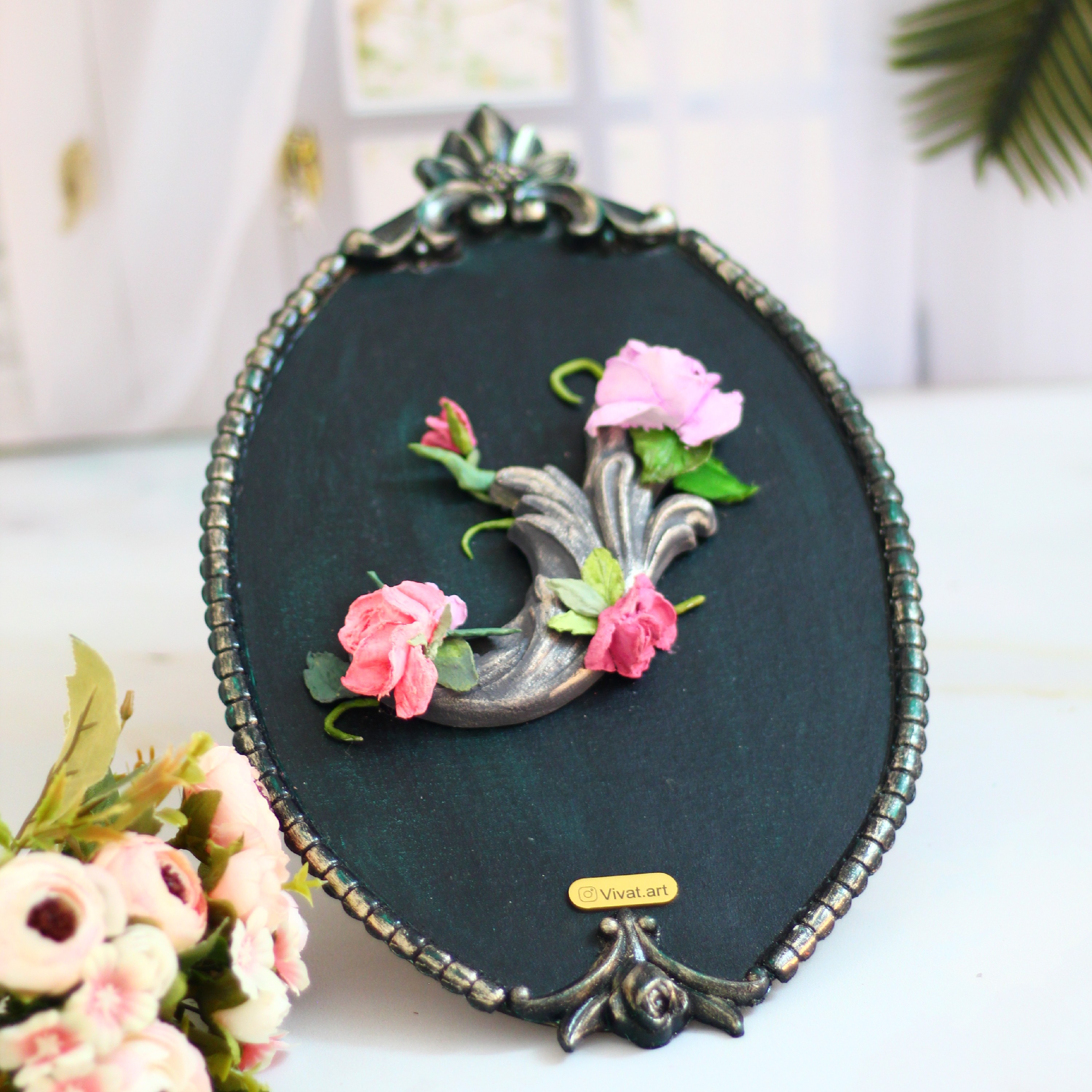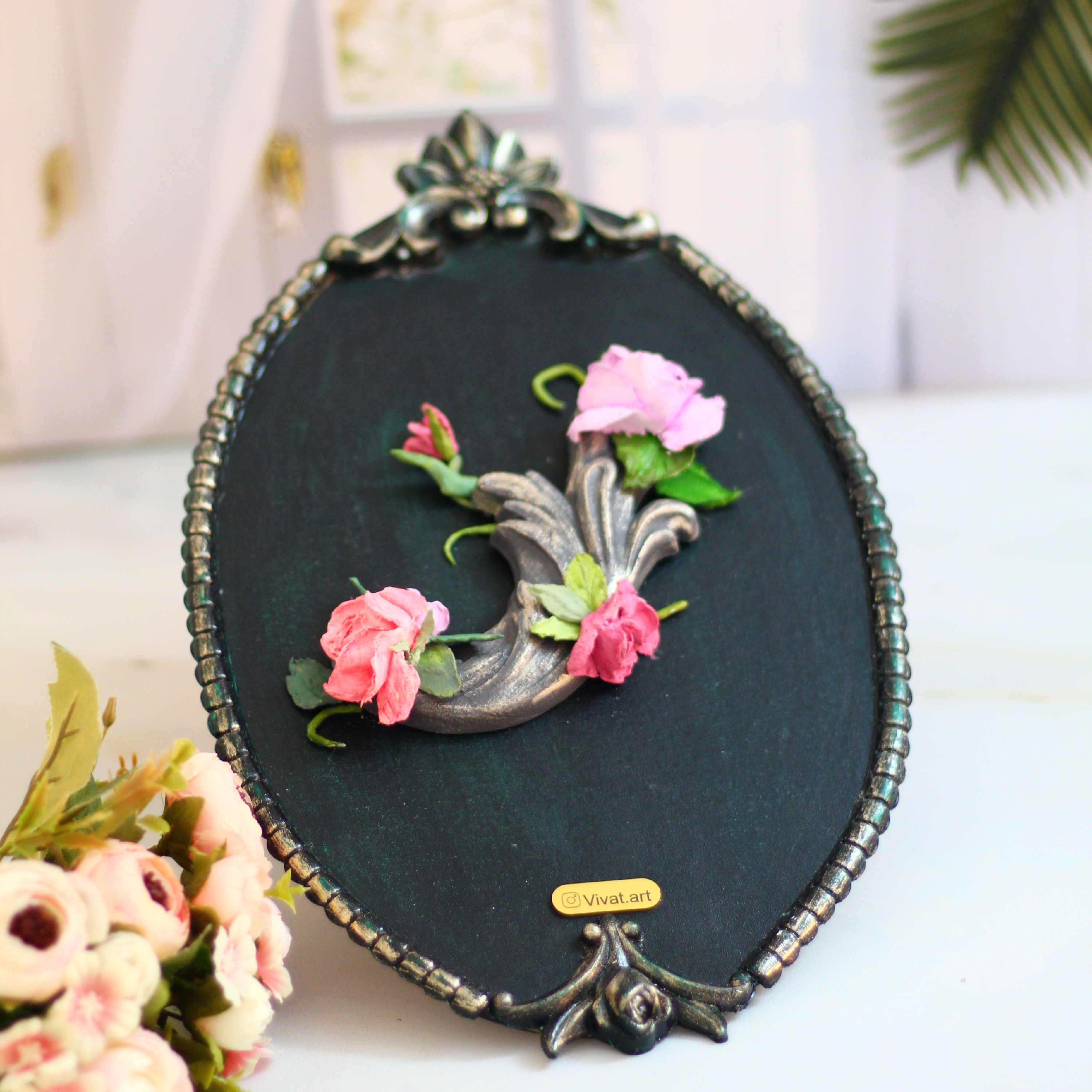 دیوارکوب چوبی کار شده با گل استاکو و موتیو مبلمونسرا مدل 260103