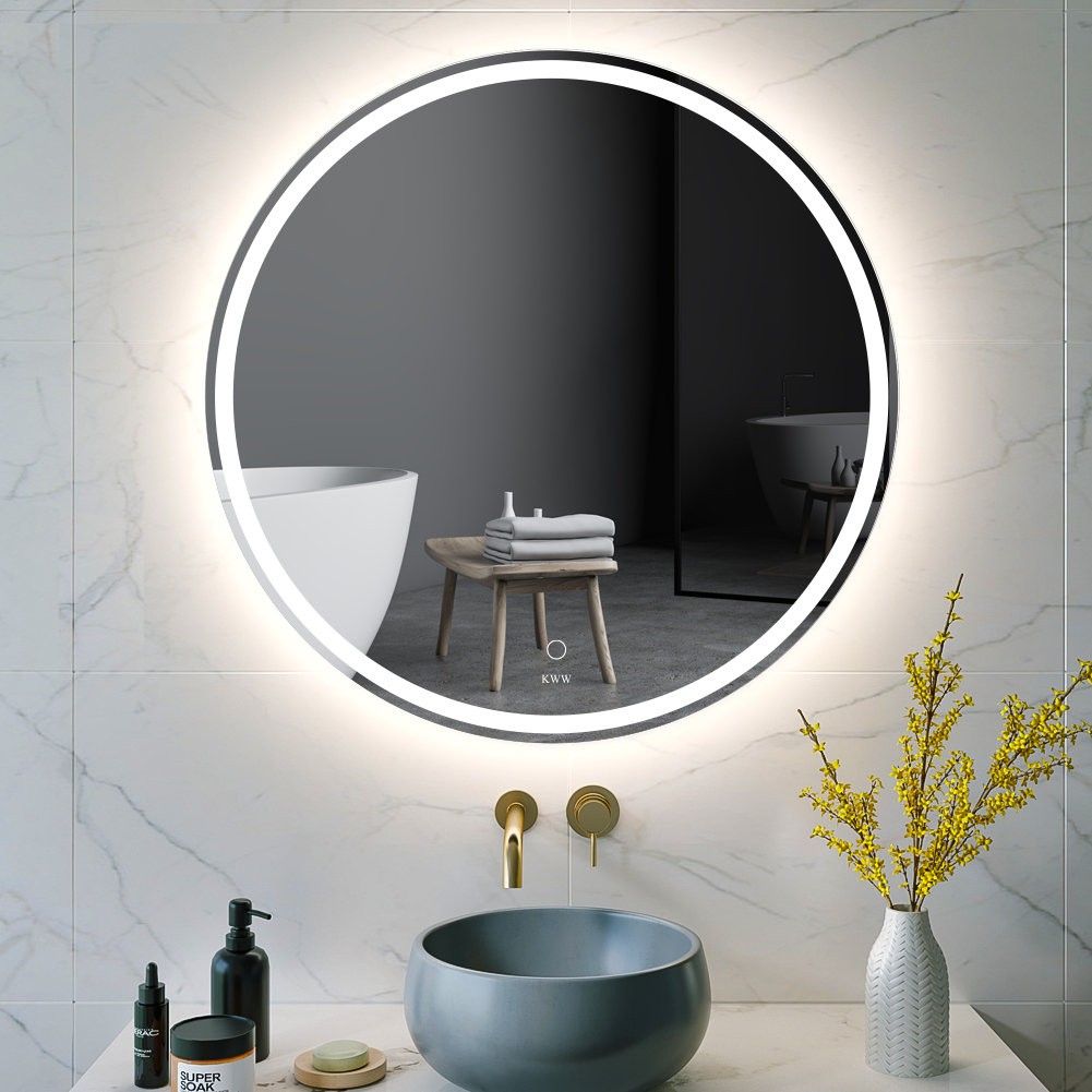 آینه اینلایت دایره با کلیدلمسی رینگ جیوه برداری مبلمونسرا مدل 262125