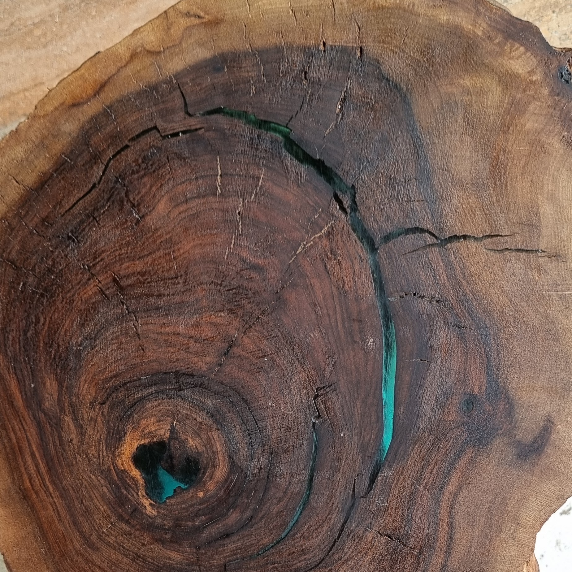 چوب گردو رزین ابی شفاف پایه فلزی پشکی طلایی