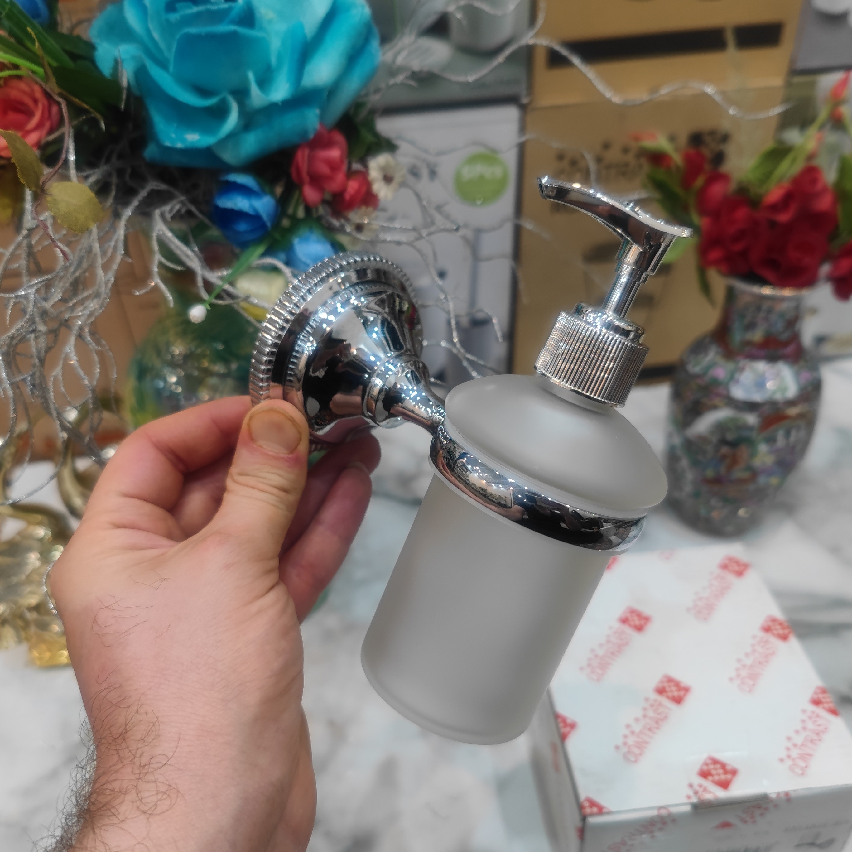 جای مایع دیواری وارداتی برند کنتراست نو آکبند بسیار زیبا و باکیفیت و جذاب رنگ بسیار زیبا و شکیل و پرطرفدار و جذاب کروم ساخته شده از استیل وبرنج و سرب آبکاری کروم به همراه یدک کریستال شفاف باکیفیت و شکیل و سرپمپ باکیفیت تضمین کیفیت ساخت عالی و مناسب ترین قیمت دارای کارتن و جعبه اختصاصی و باکیفیت محصول قابلیت استفاده در سرویس بهداشتی یا حمام یا آشپزخانه ارسال سریع به تمام نقاط کشور برای خریداران عزیز
