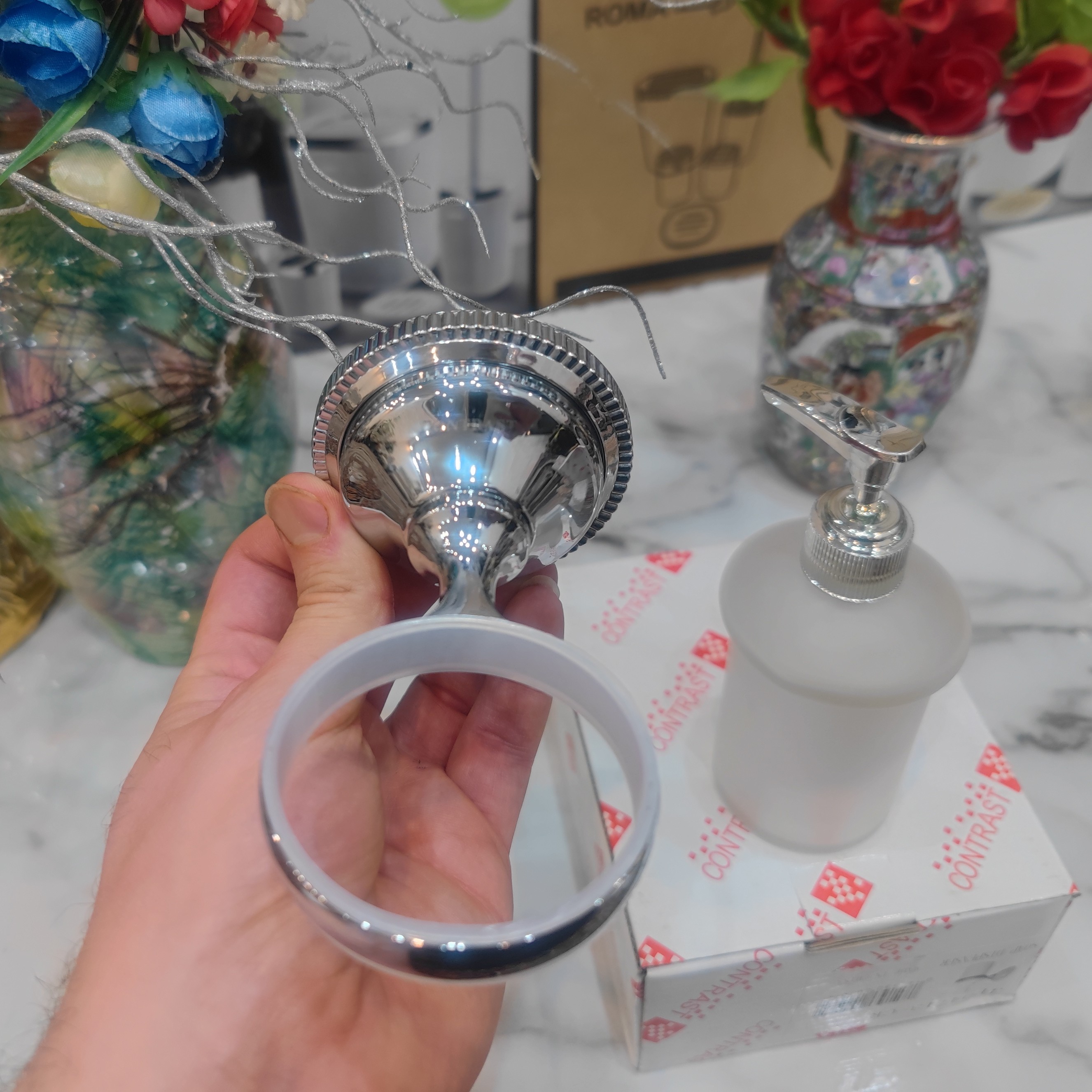 جای مایع دیواری وارداتی برند کنتراست رنگ کروم نو آکبند و بسیار زیبا و شکیل و جذاب و پرطرفدار