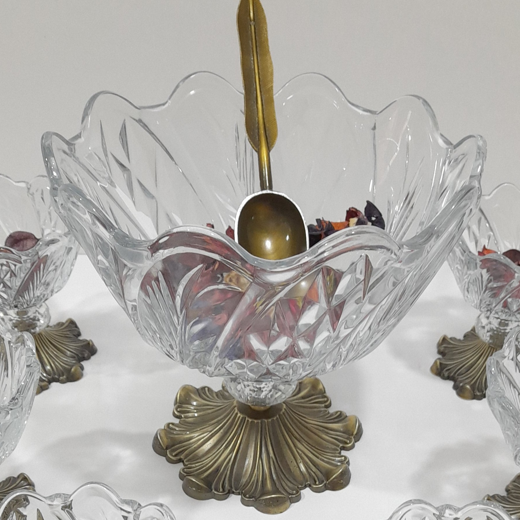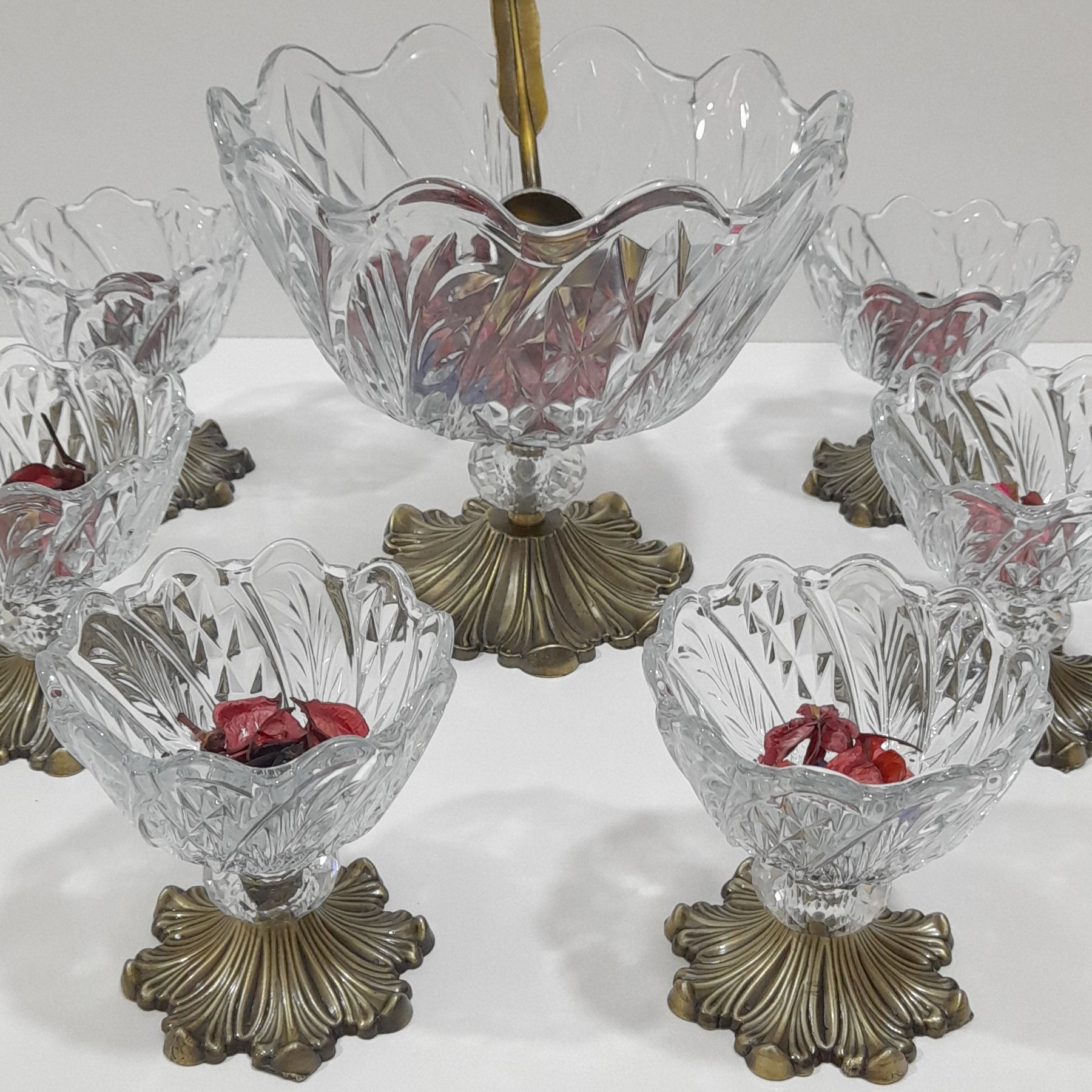 اجیلخوری ، ظرف آجیل و شش کاسه کریستال iwaki کشور چین شش کاسه کوچک بسیار زیبا پایه زنبق انتیک یک عدد بزرگ و شش عدد کوچک ثبات رنگ و کیفیت بالا گوی کریستال مناسب جهت پذیرایی جهیزیه و هدیه