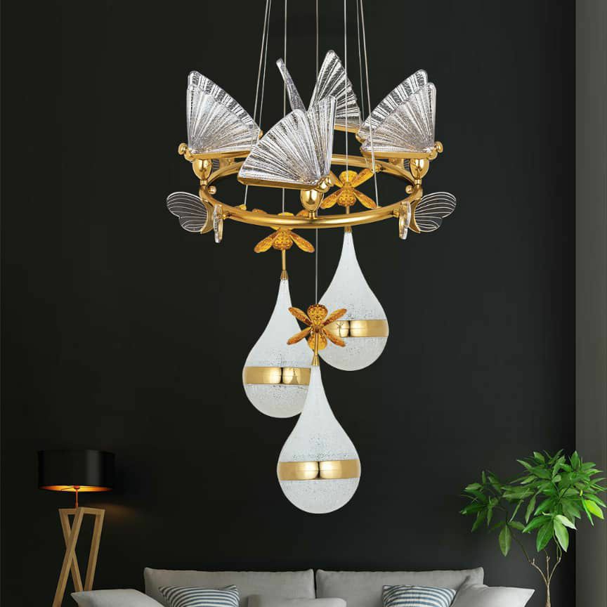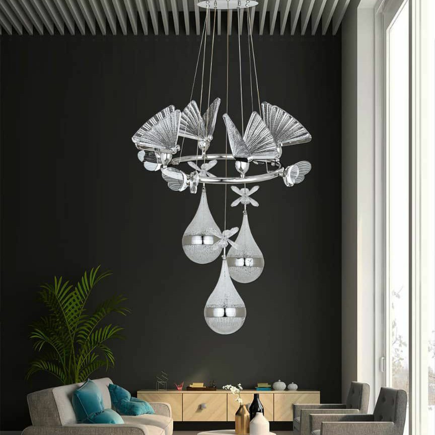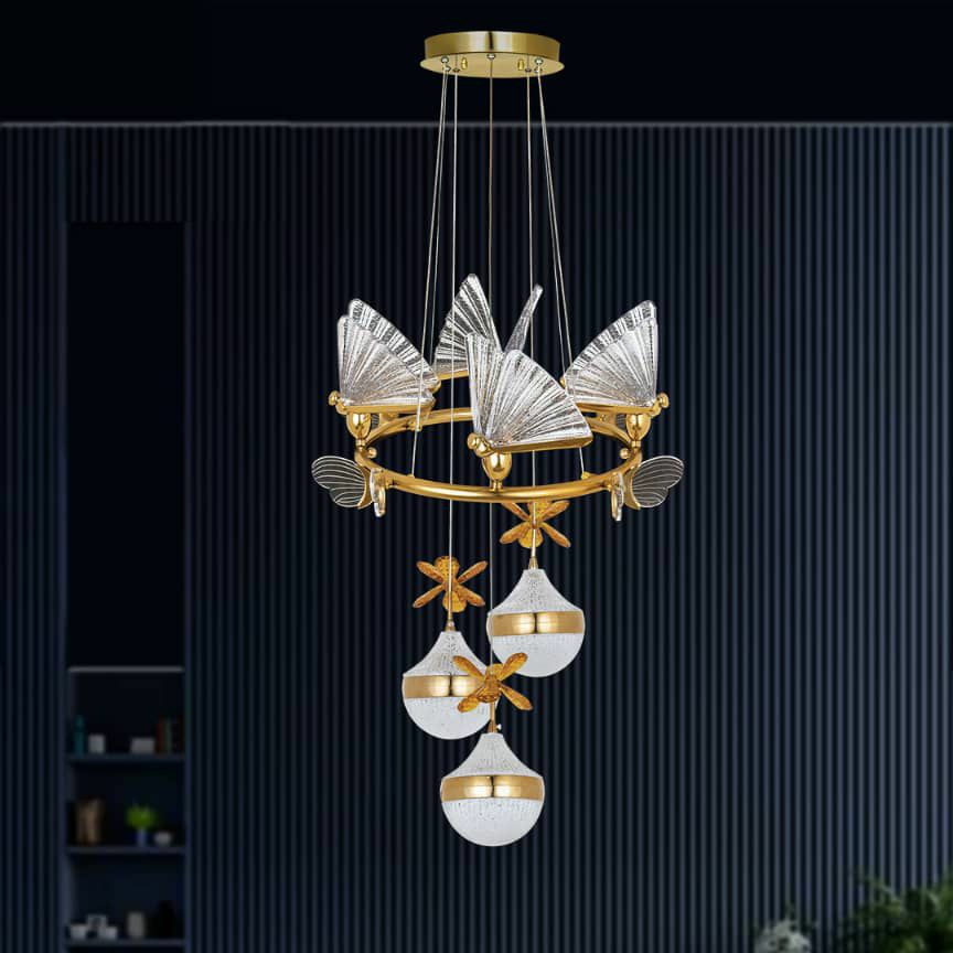لوستر آویز اس ام دی پروانه ایی محصول در دورنگ طلایی و نقره ایی مبلمونسرا مدل 245145