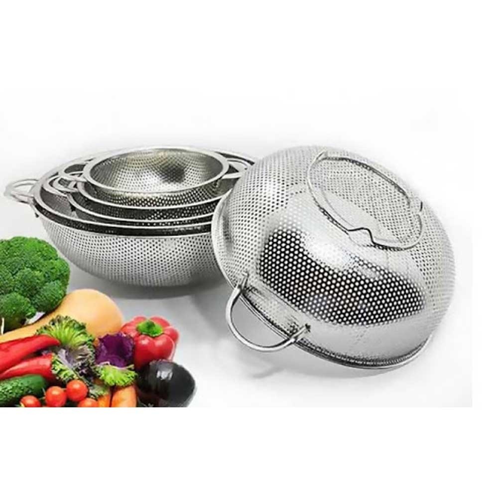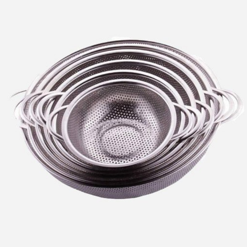ست آبکش استیل 6 پارچه پانچی آبکش و سبد لزومی ترین وسایل سازماندهی در هر آشپزخانه ای می باشد. آبکش های مدل های مختلف در ابعاد متفاوتی دارند. شما میتوانید با خریداری یک ست آبکش ، خود را از سایز های موردنیاز آبکش ها بی نیاز کنید. ست آبکش استیل 6 پارچه پانچی ، محصولی کامل از سری آبکش های با کیفیت مناسب از استیل نگیر می باشد. این محصول ساخت کشور چین می باشد. ابعاد آبکش های این ست به ترتیب به صورت زیر می باشد: آبکش استیل پانچی ابعاد سایز 1 : قطر دهانه 31 – ارتفاع 11 سانتی متر ابعاد سایز 2: قطر دهانه 28 – ارتفاع 10 سانتی متر ابعاد سایز 3: قطر دهانه 25 – ارتفاع 9 سانتی متر ابعاد سایز 4: قطر دهانه 23 – ارتفاع 8 سانتی متر ابعاد سایز 5: قطر دهانه 19 – ارتفاع 7 سانتی متر ابعاد سایز 6 : قطر دهانه 17 – ارتفاع 6 سانتی متر