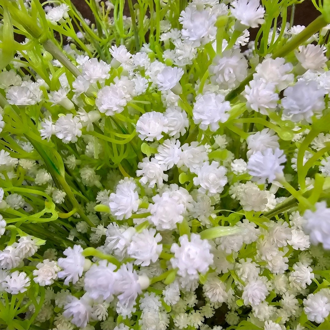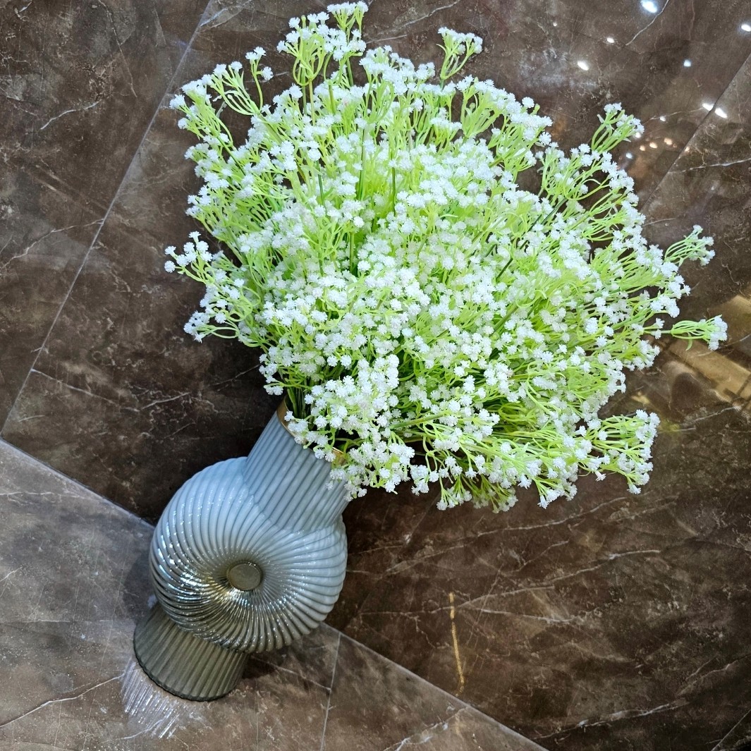 شاخه گل عروس مصنوعی پنج بازوی شاخه بلند عالیجناب بدلیل ارتفاع مناسب شاخه ، مناسب تمامی گلدانها از قبیل رومیزی و کنار سالنی می باشد،بنا به سلیقه عزیزان در چیدمان مورد نظر می توان ارتفاع ساقه را با سیم چین کوتاه و یا خم کرد تا ابعاد لازم را تنظیم کنید ؛ گل عروس براستی هدیهای برای زیباتر شدن دسته گلها و گلدانهای رومیزی است. اگر درفضای مجازی فعال باشید یا دسته گلهای جدیدی که در بازارها موجود است را دیده باشید، حتما با گل عروس آشنا شدهاید. یکی از کاربردیترین روش های مصرف گل عروس، استفاده در دسته گلهای مختلف ، باکسهای گل،گلدانهای رومیزی و همچنین برای دیزاین عکس برداری های تبلیغاتی آنلاین شاپ ها مانندعکاسی ازبسیار مناسب می باشد، گل عروس سفید یا ژپیسو فیلا علاوه بر این که خودش ظاهر زیبایی دارد باعث زیبا تر دیده شدن گلها نیز میشود. نام دیگر گل عروس ژیپسوفیلا است. که ترکیبی از دو کلمه که ریشه این دو کلمه یونانی است ، بخش اول آن یعنی Gypsos به معنی گچ و بخش آخر آن به معنی معشوق است. در زبان انگلیسی گل عروس به نام و نماد دیگری هم شناخته میشود که به آن baby’sbreathمیگویند.