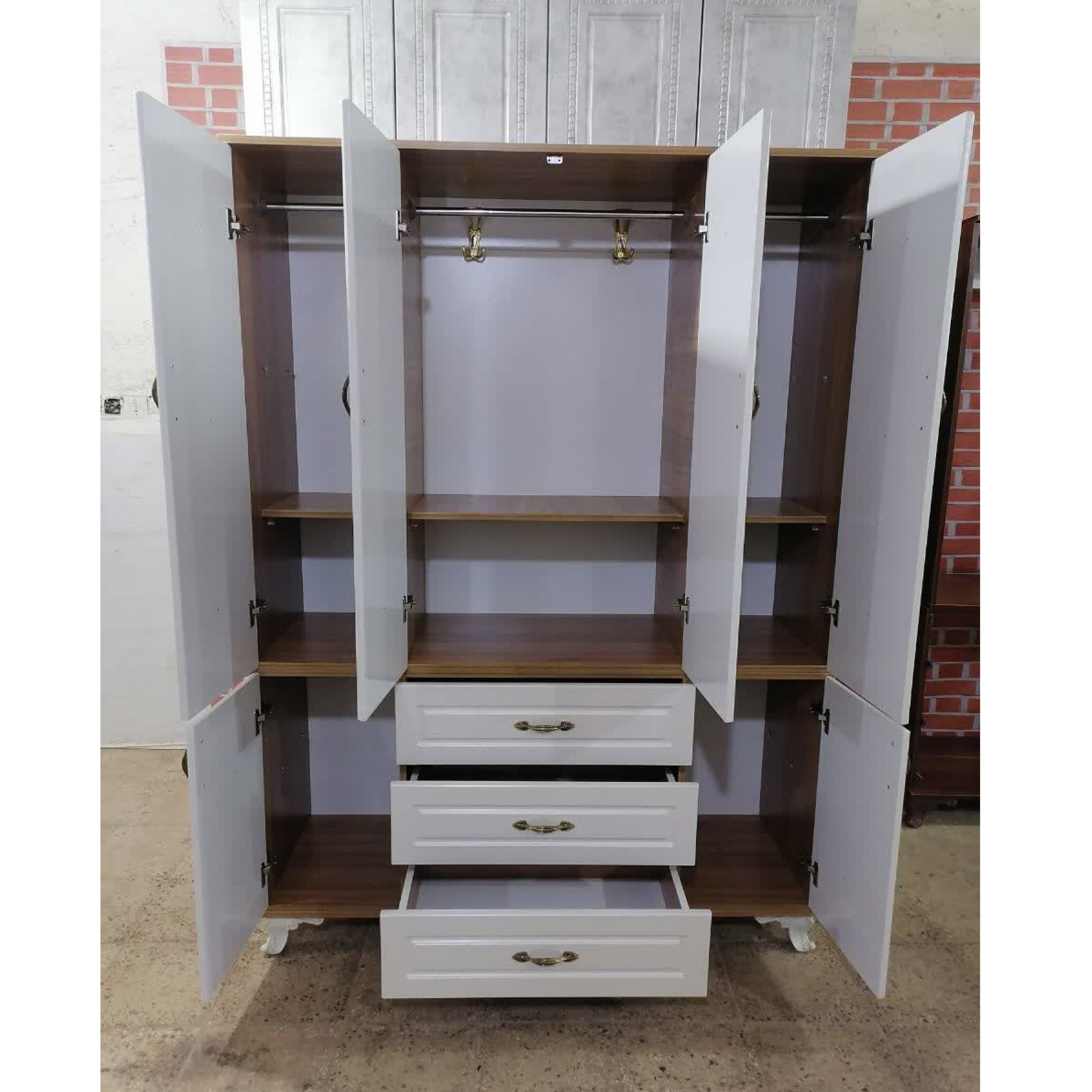 کمد لباس طرح کادری4 درب عرض 140 ،نما وکیوم MDF،دستگیره زیتونی،6 کشو،ارسال با باربری و هزینه مبلمونسرا مدل 230291