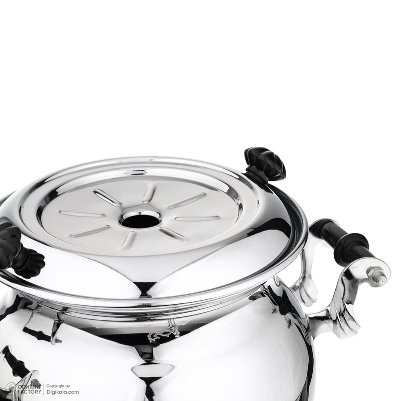 بیش از 75 سال تجربه درخشان اولین تولید کننده شیکترین و مرغوبترین سماورهای یکپارچه گازی ترموکوپلدار با مهر استاندارد در طرحها، رنگها و اندازههای متفاوت برای سلیقههای مختلف که بدون آب هرگز نمی سوزد. جنس کلیه محصولات از ورق آلیاژ برنج میباشد که با پوشش نیکل و کرم آبکاری شدهاند. ورق برنجی برخلاف ورق استیل تنها آلیاژی است که قادر به جذب املاح و مواد زائد آب است و ضامن نوشیدن آبی زلال و صاف و بدون املاح مضر میباشد. سماور سهکاره با طراحی بدون کوره، باعث جلوگیری از آسیب دیدن کابینتهای شما میشود. این سه کارهها قابل استفاده به عنوان روگازی، سماور کامل و شعله به صورت جداگانه هستند.
