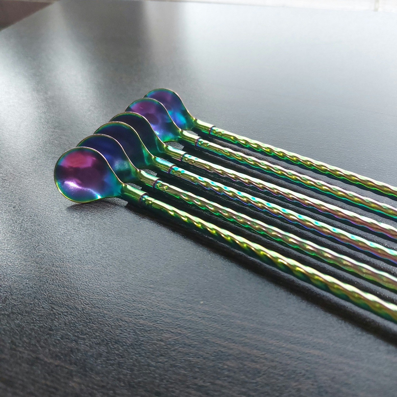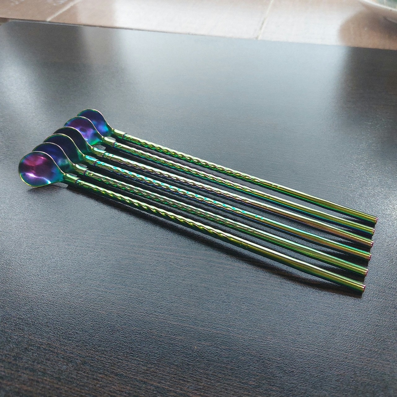 نی شربت خوری استیل قاشق دار طرح پیچکی رنگین کمانی مبلمونسرا مدل 277146