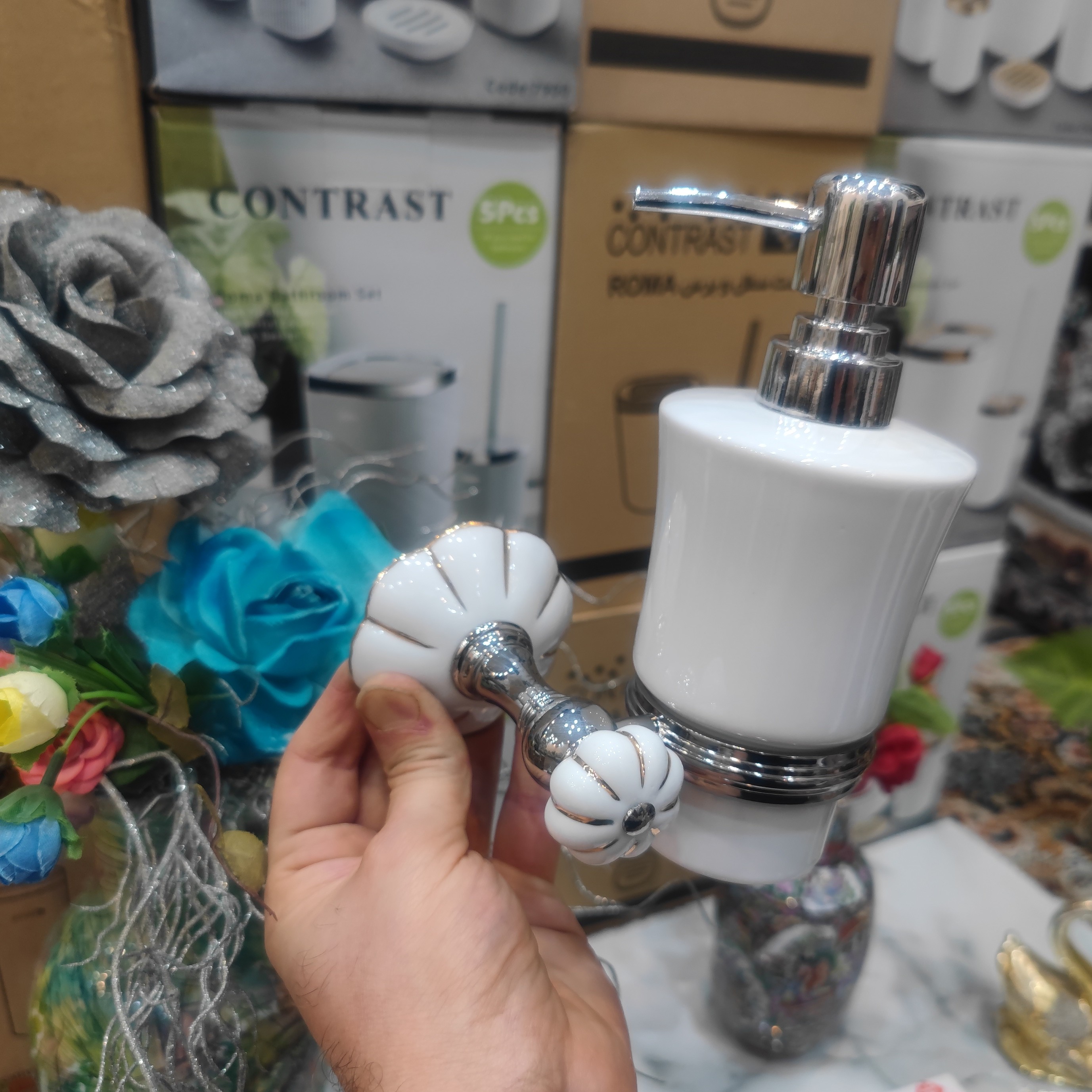 جای مایع دیواری وارداتی برند کنتراست نو آکبند بسیار زیبا و باکیفیت و بی نظیر و خاص رنگ بسیار زیبا و شکیل و پرطرفدار سفید کروم پایه ساخته شده از استیل و برنج و سرامیک آبکاری کروم و جنس مخزن سرامیک باکیفیت عالی و شکیل و سرپمپ باکیفیت عالی تضمین کیفیت ساخت عالی و مناسب ترین قیمت دارای کارتن و جعبه اختصاصی و باکیفیت محصول قابلیت استفاده در سرویس بهداشتی یا حمام یا آشپزخانه یا محل کار ارسال سریع به تمام نقاط کشور برای خریداران عزیز