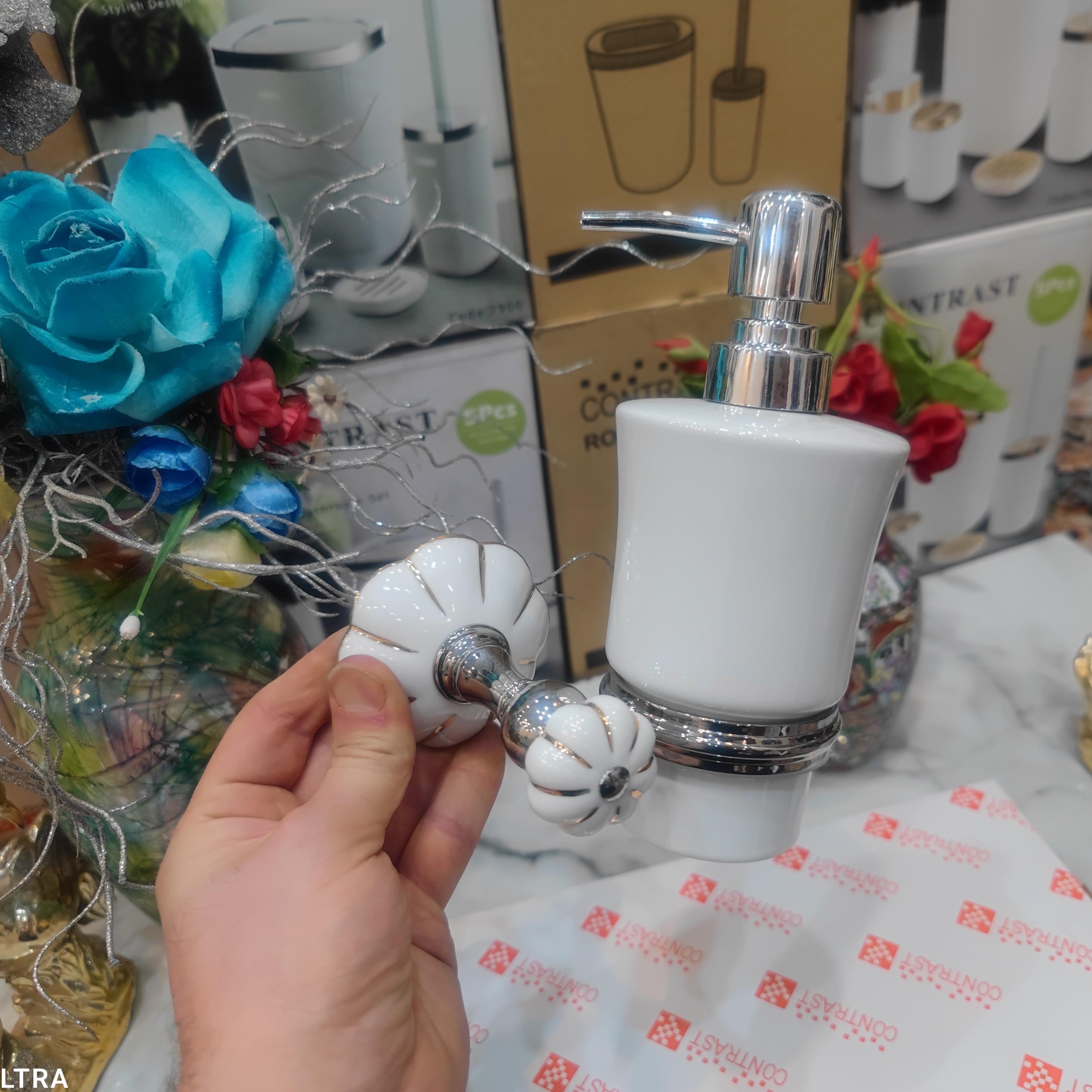 جای مایع دیواری وارداتی برند کنتراست رنگ جذاب و پرطرفدار سفید کروم نو آکبند و بسیار زیبا و شکیل و بی نظیر