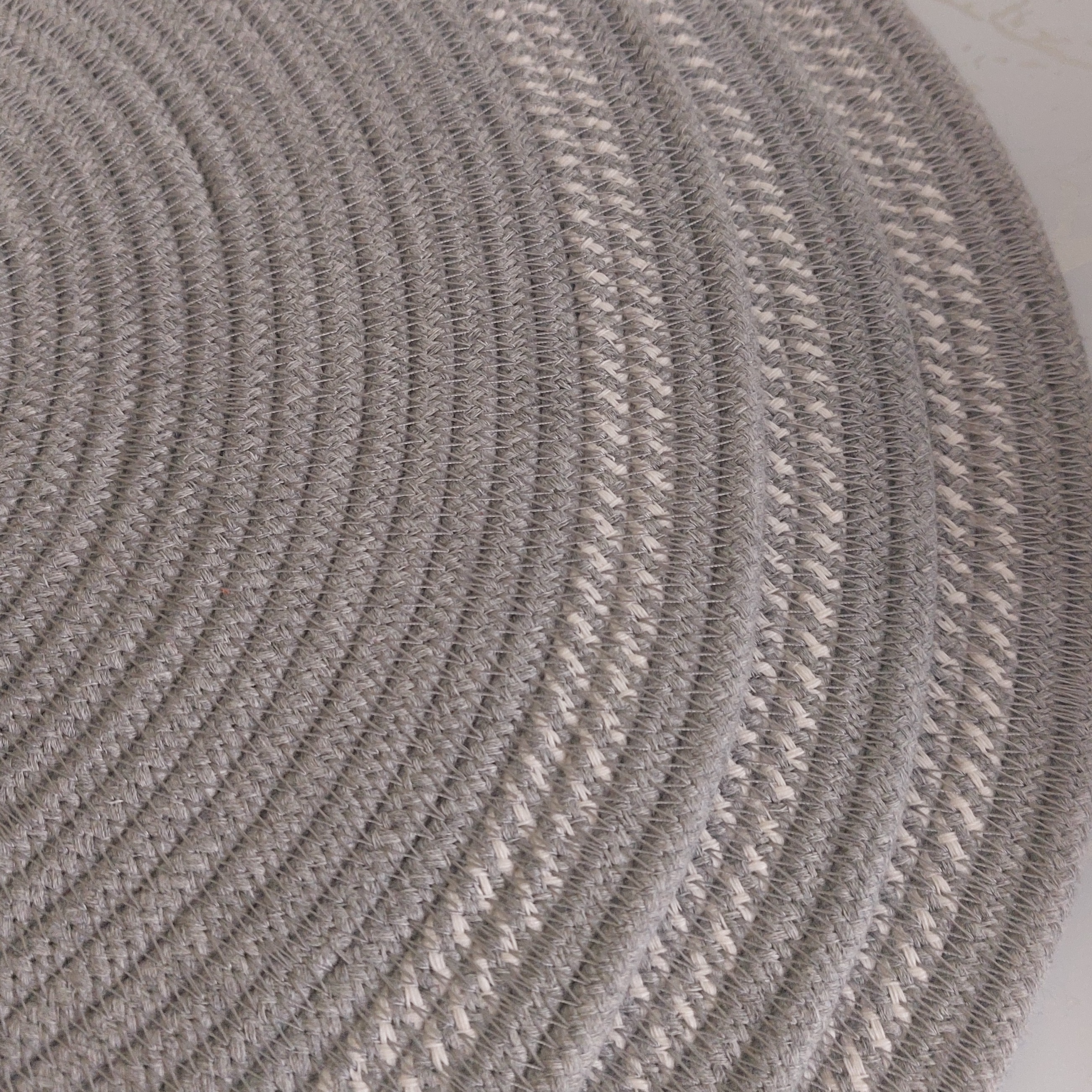 زیربشقابی قیطانی نخ پنبه طوسی رنگ مناسب پذیرایی کردن که بعنوان رانر هم استفاده کردبهقطر35سانت مبلمونسرا مدل 299372