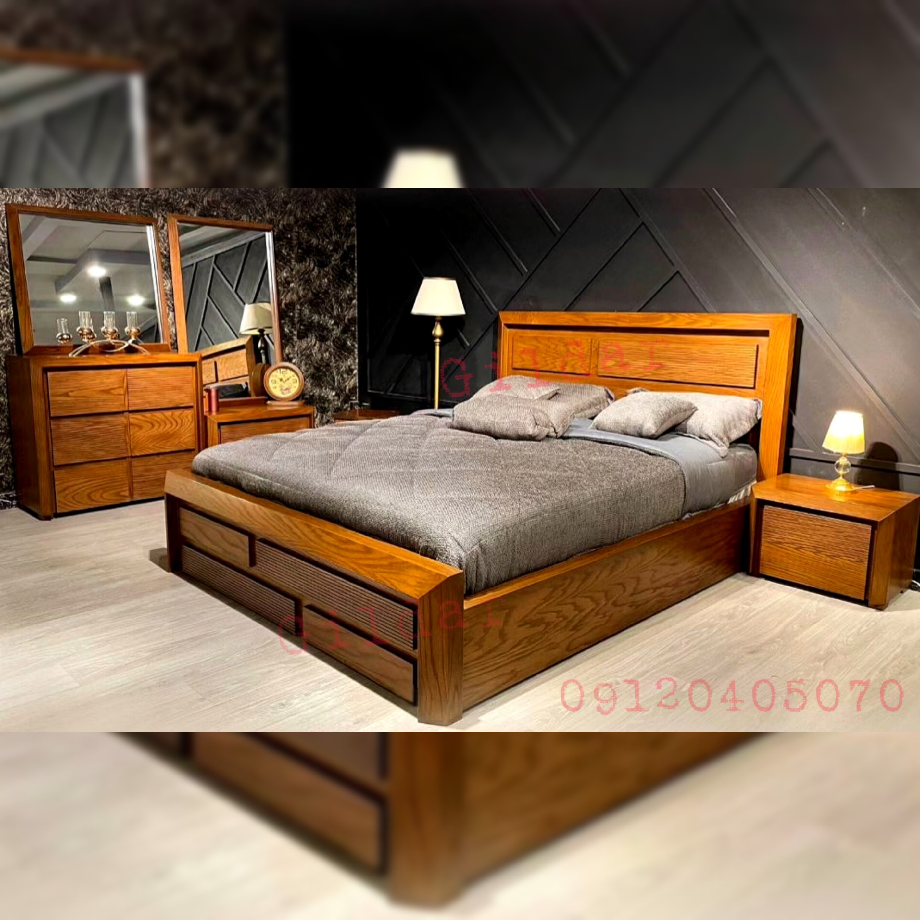 سرویس تخت خواب دونفره بلوط مبلمونسرا مدل 226609