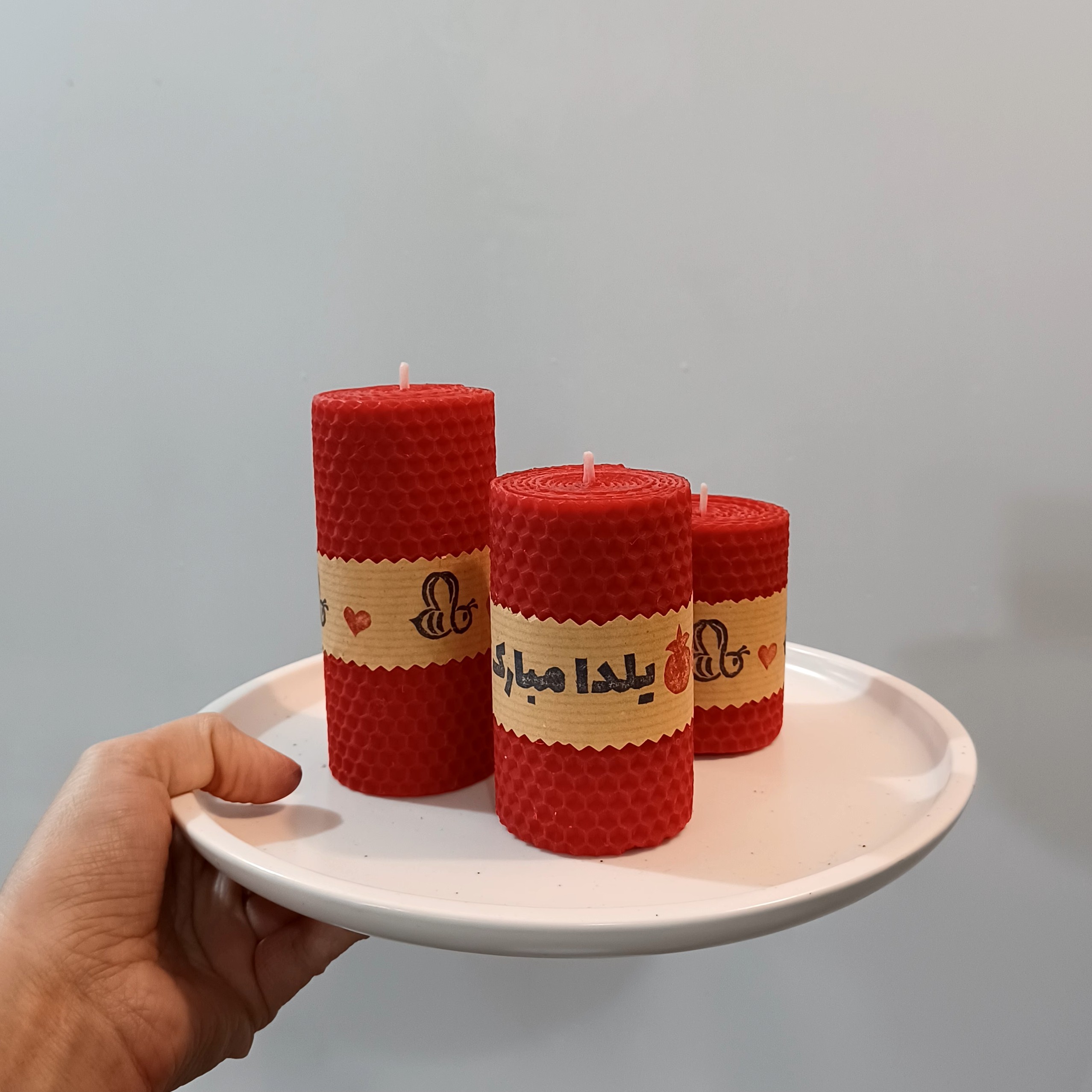 شمع قرمز یلدایی موم عسل ست شمع استوانه قرمز شمع استوانه ای قرمز مبلمونسرا مدل 280900